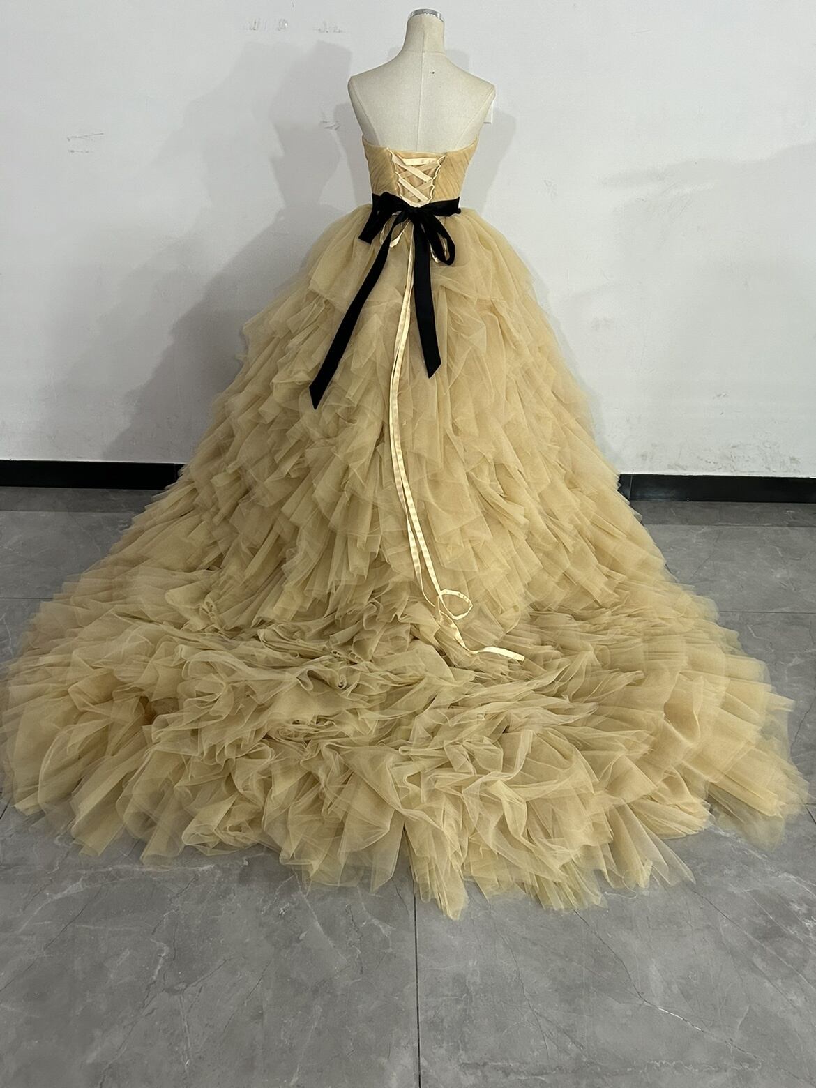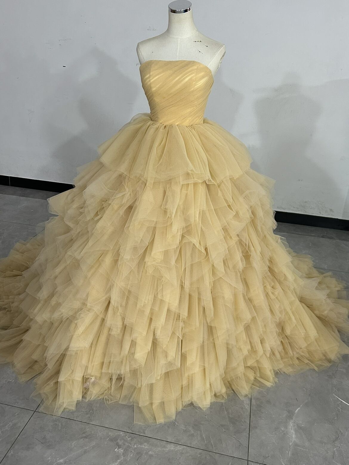 ベアトップ カラードレス 韓国風ドレス チュールドレス もこもこフリルドレス ボリューミー 前撮り