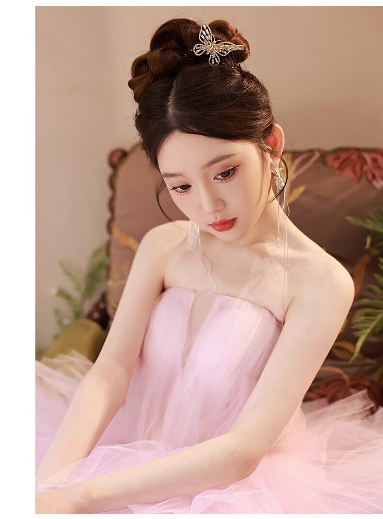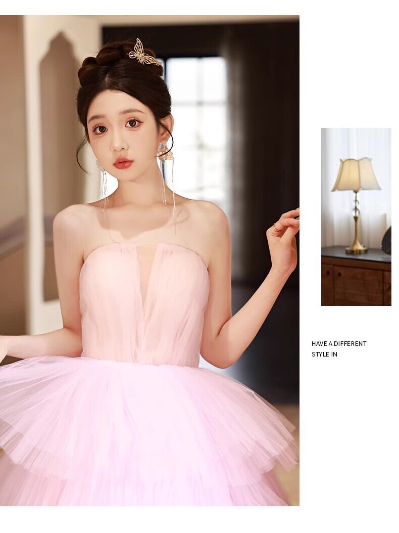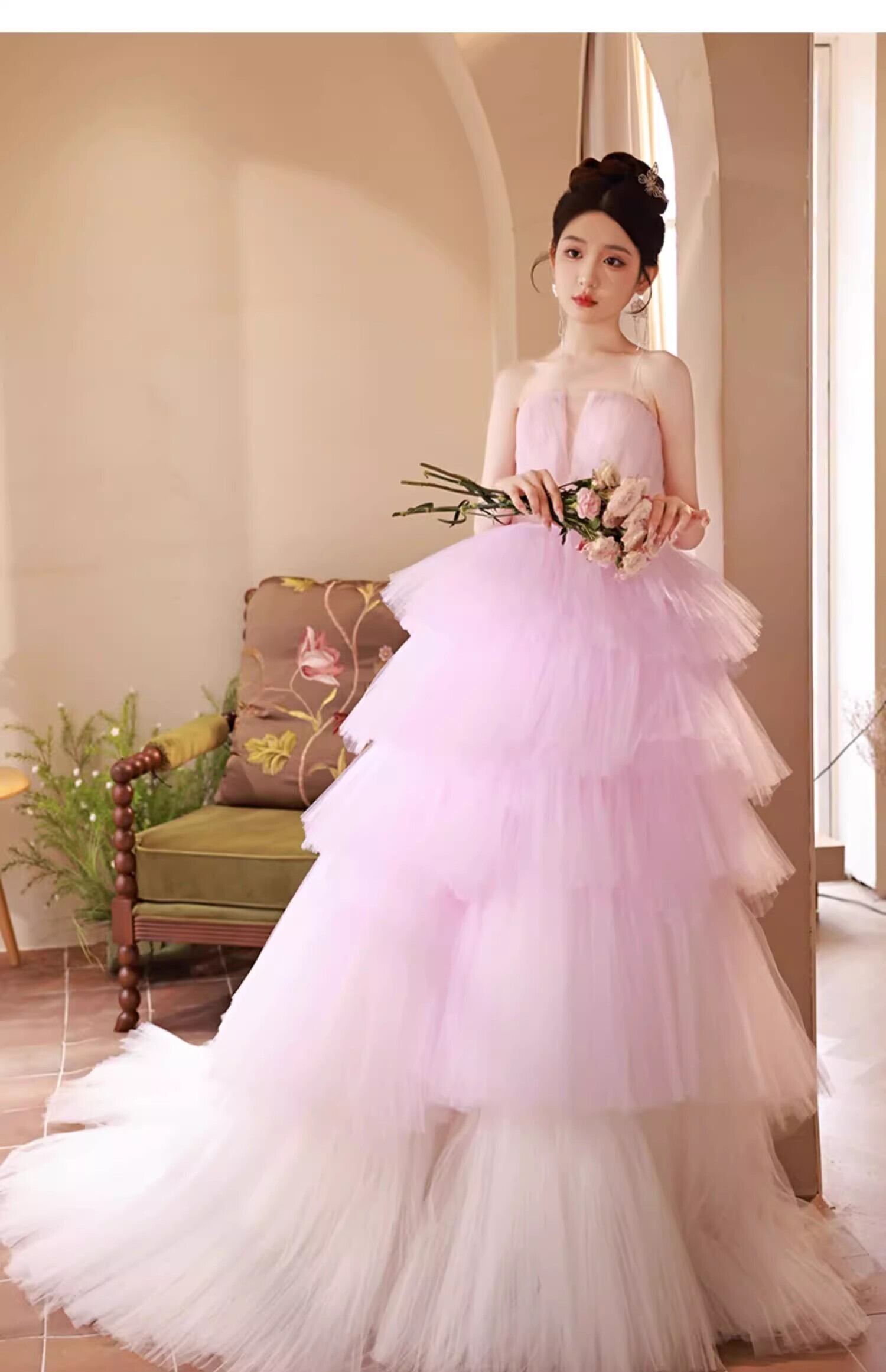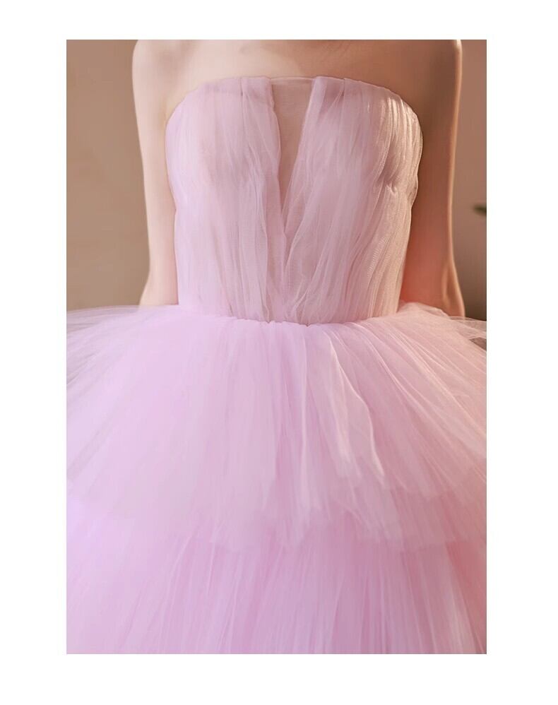 ベアトップ ピンク カラードレス 韓国風ドレス チュールドレス もこもこフリルドレス ボリューミー 前撮り