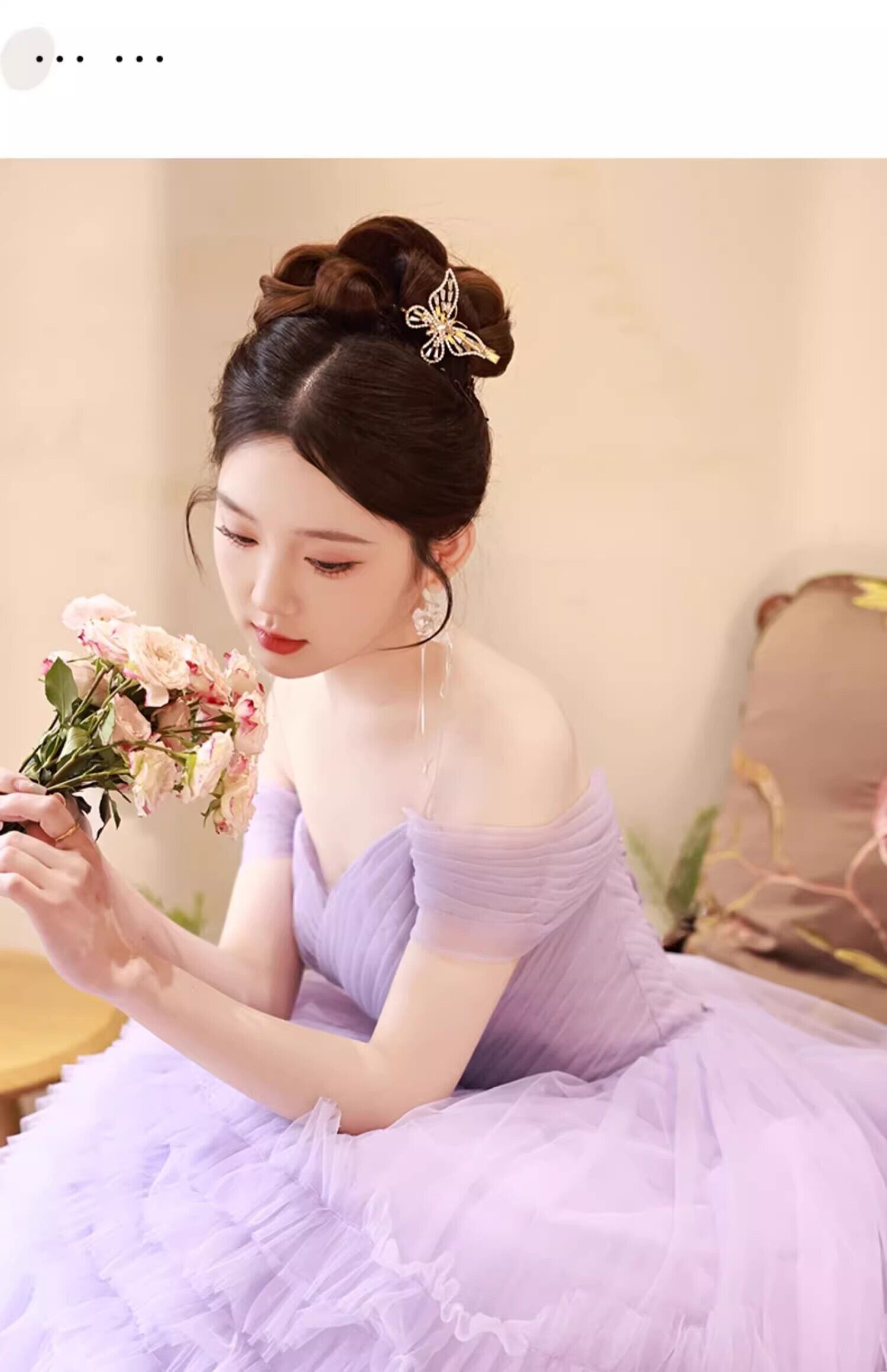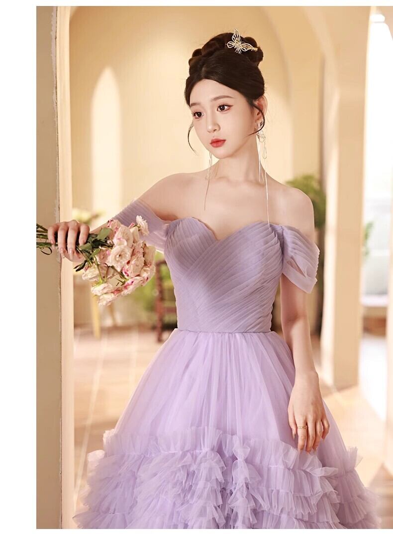 紫 カラードレス チュールドレス もこもこフリルドレス ボリューミー 柔らかく重ねたチュールスカート前撮り