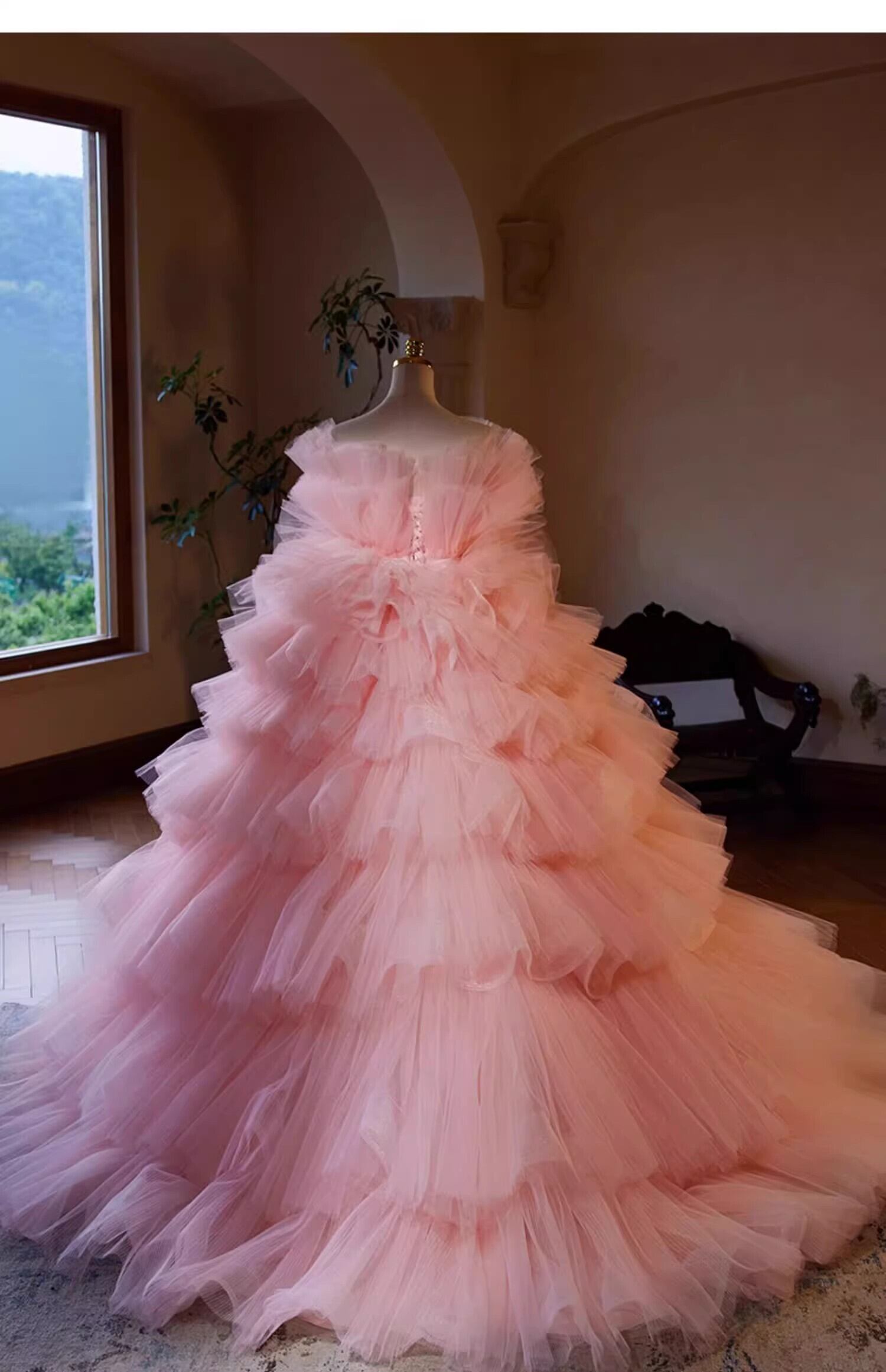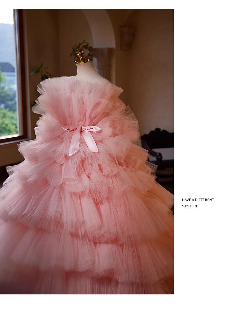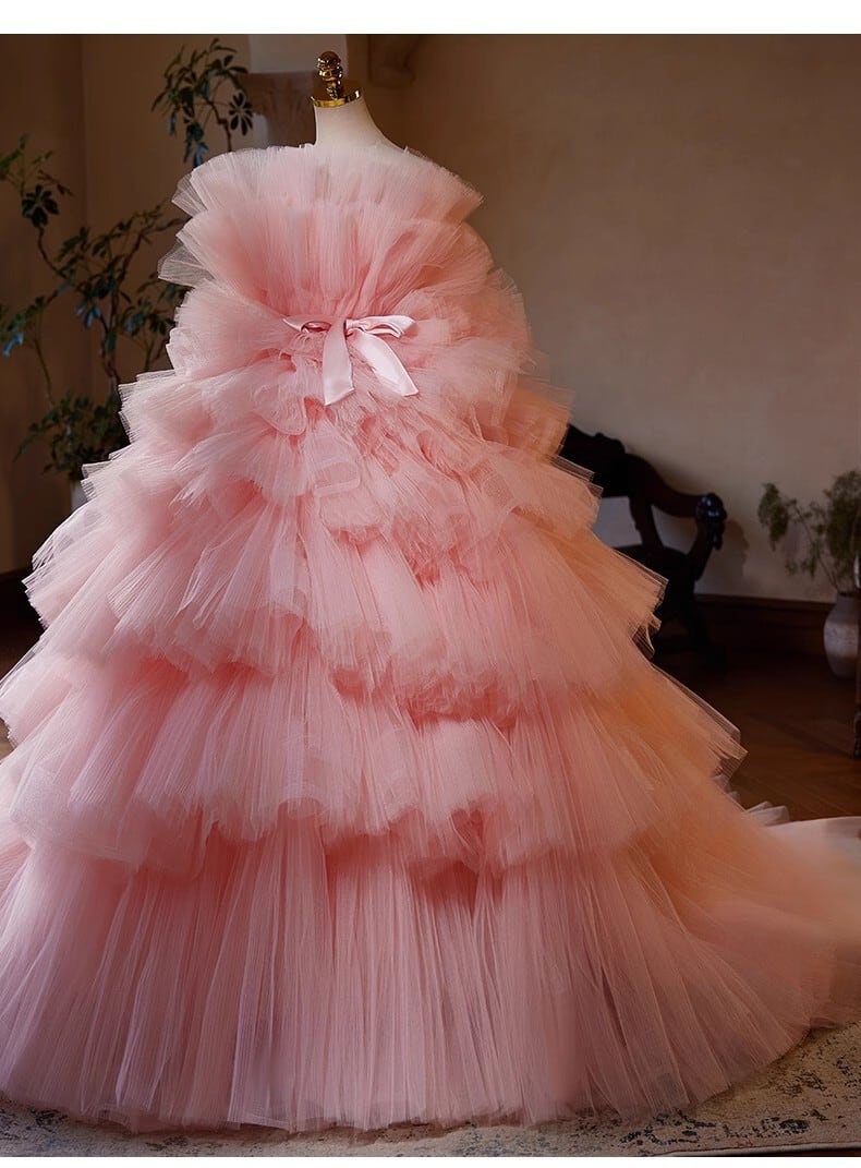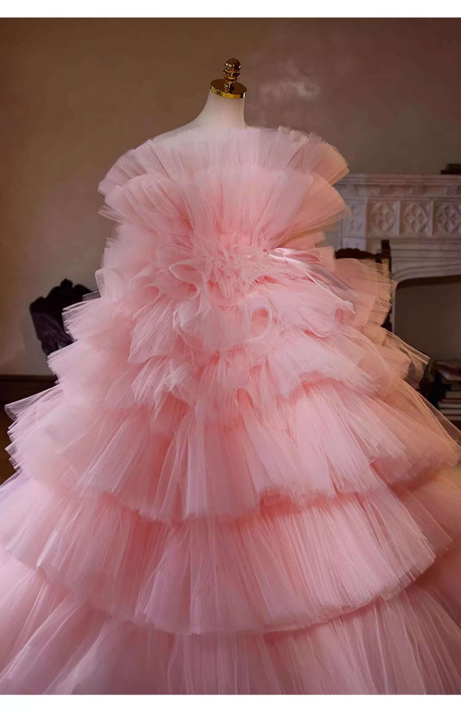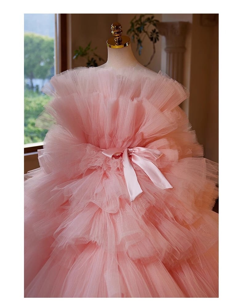 ベアトップ ピンク カラードレス 韓国風ドレス チュールドレス もこもこフリルドレス ボリューミー 前撮り