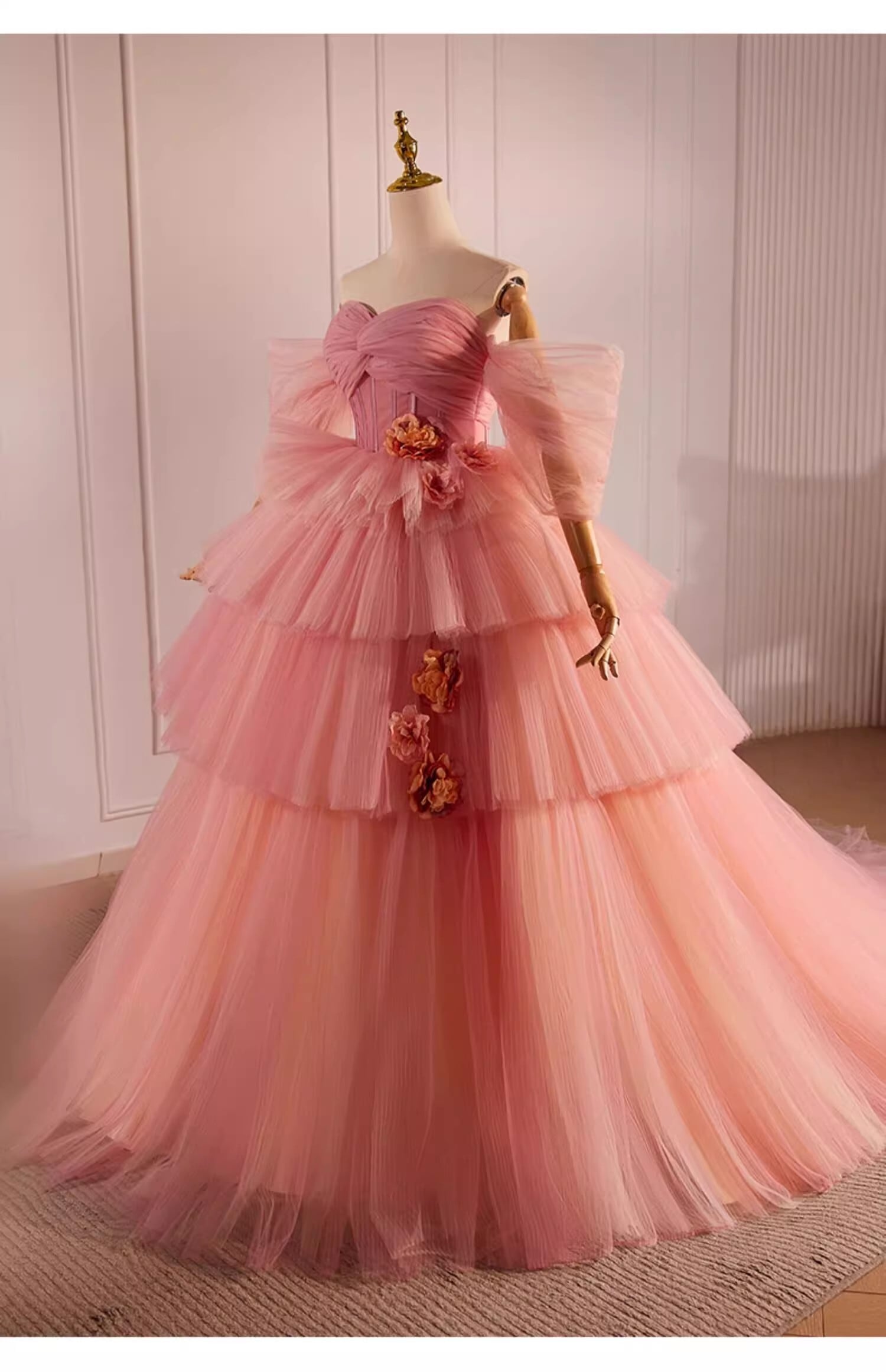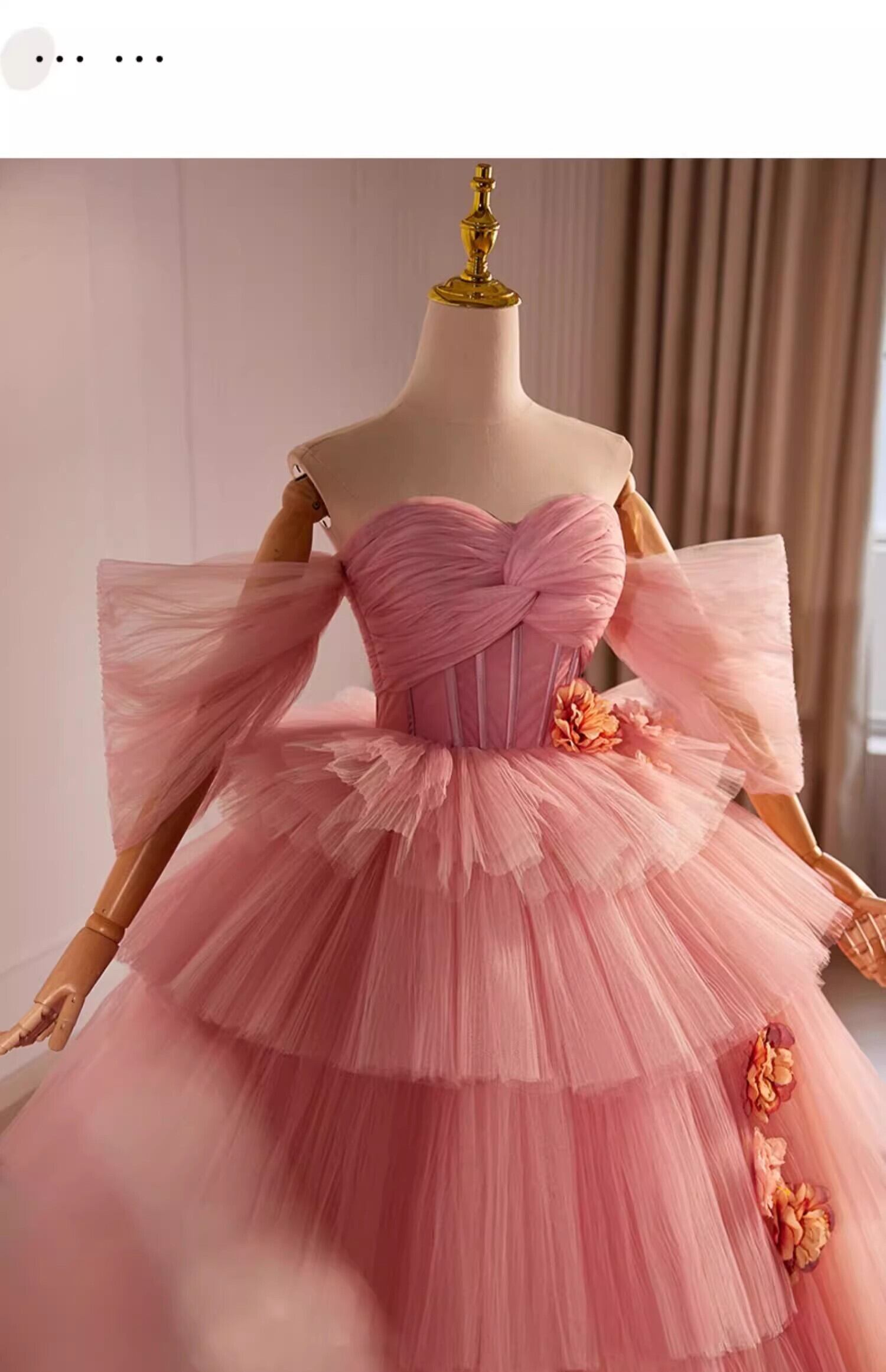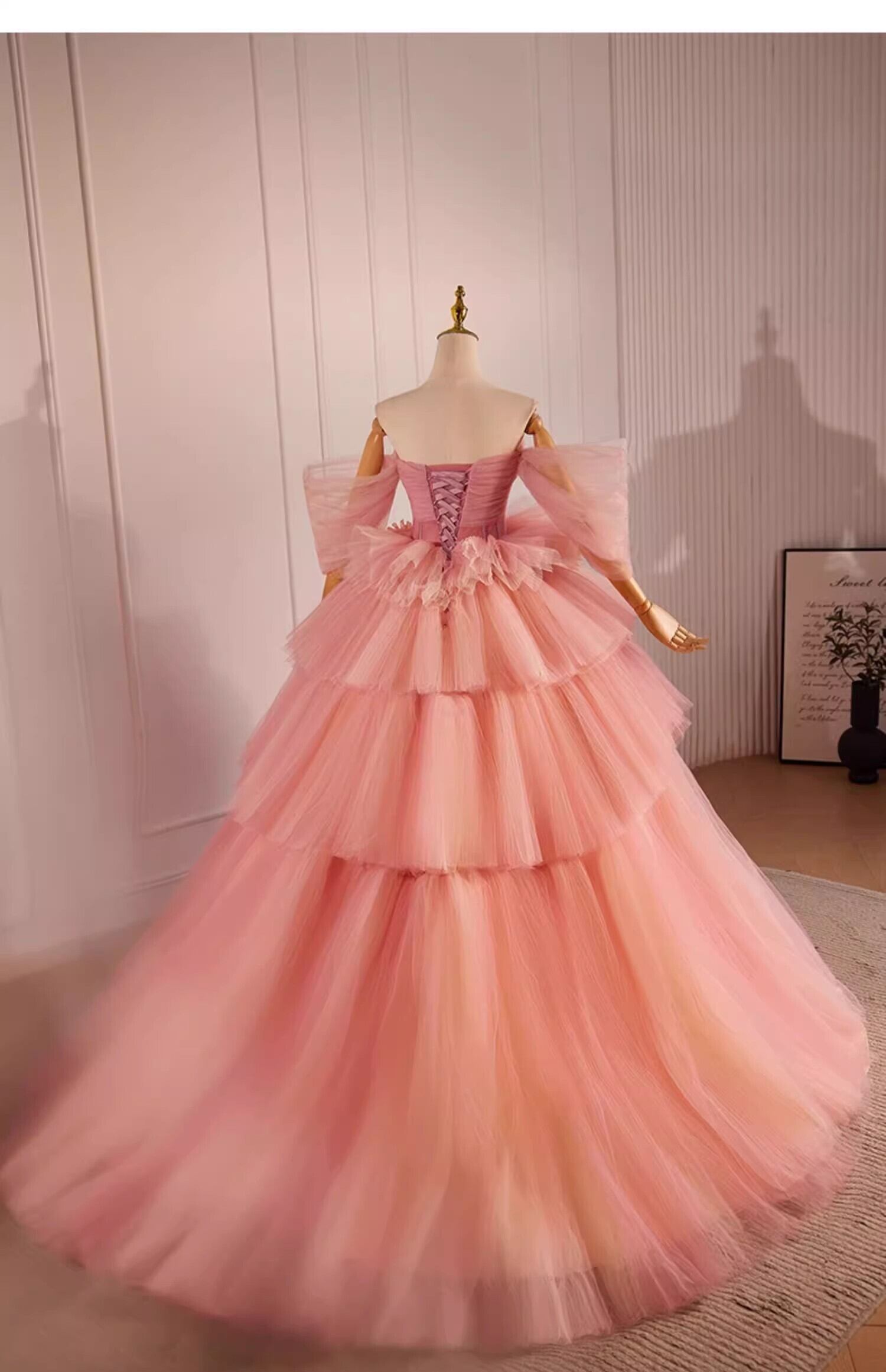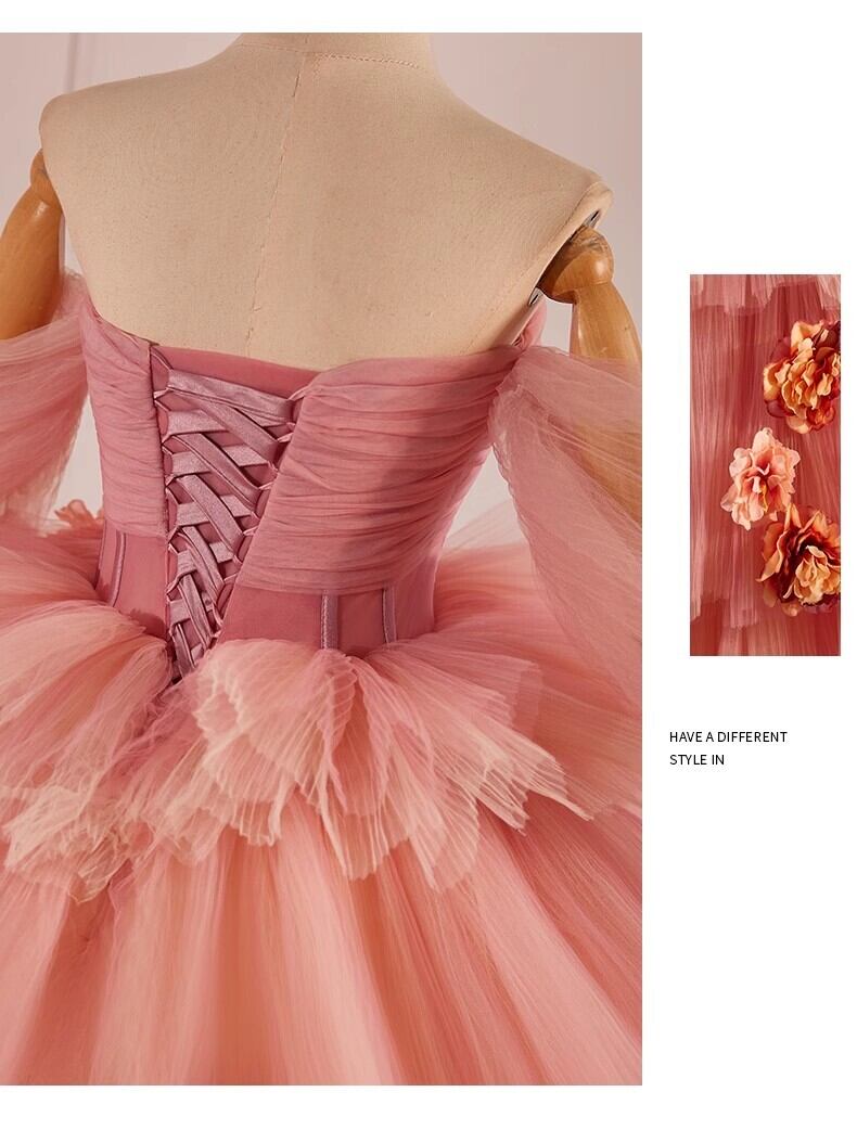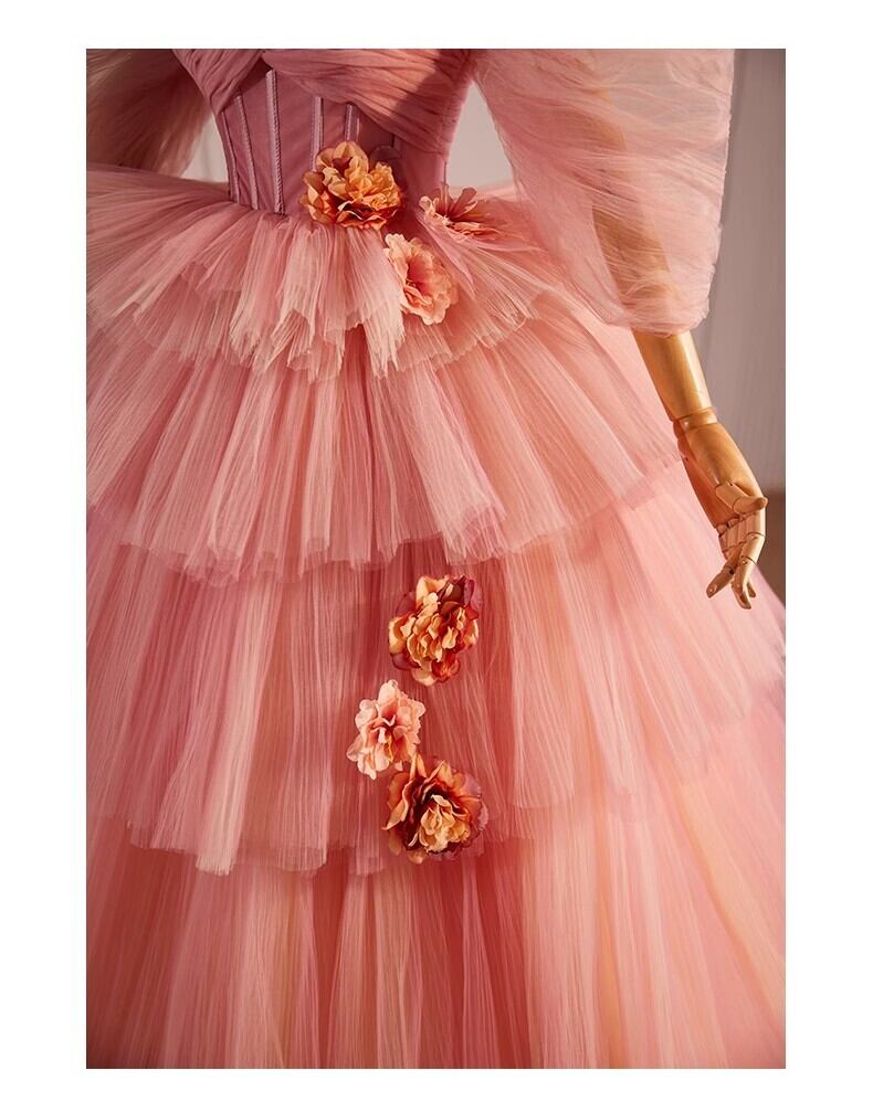 ピンク ベアトップ カラードレ チュールドレス もこもこフリルドレス ボリューミー柔らかく重ねたチュールスカート 前撮り