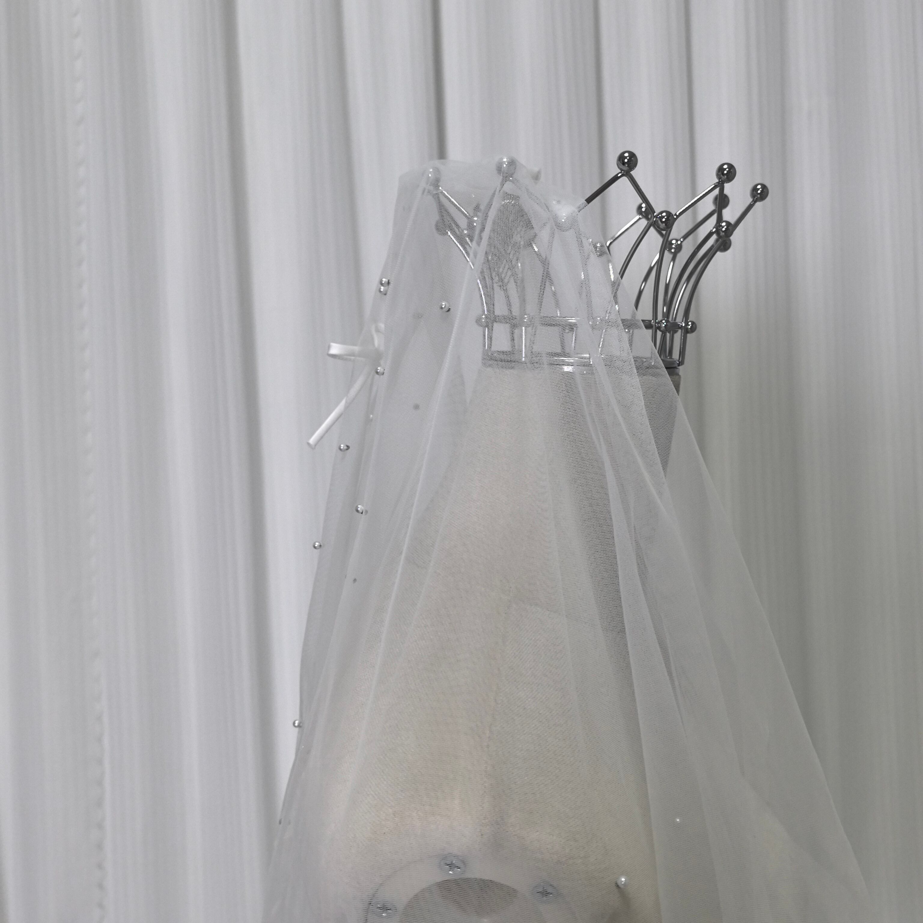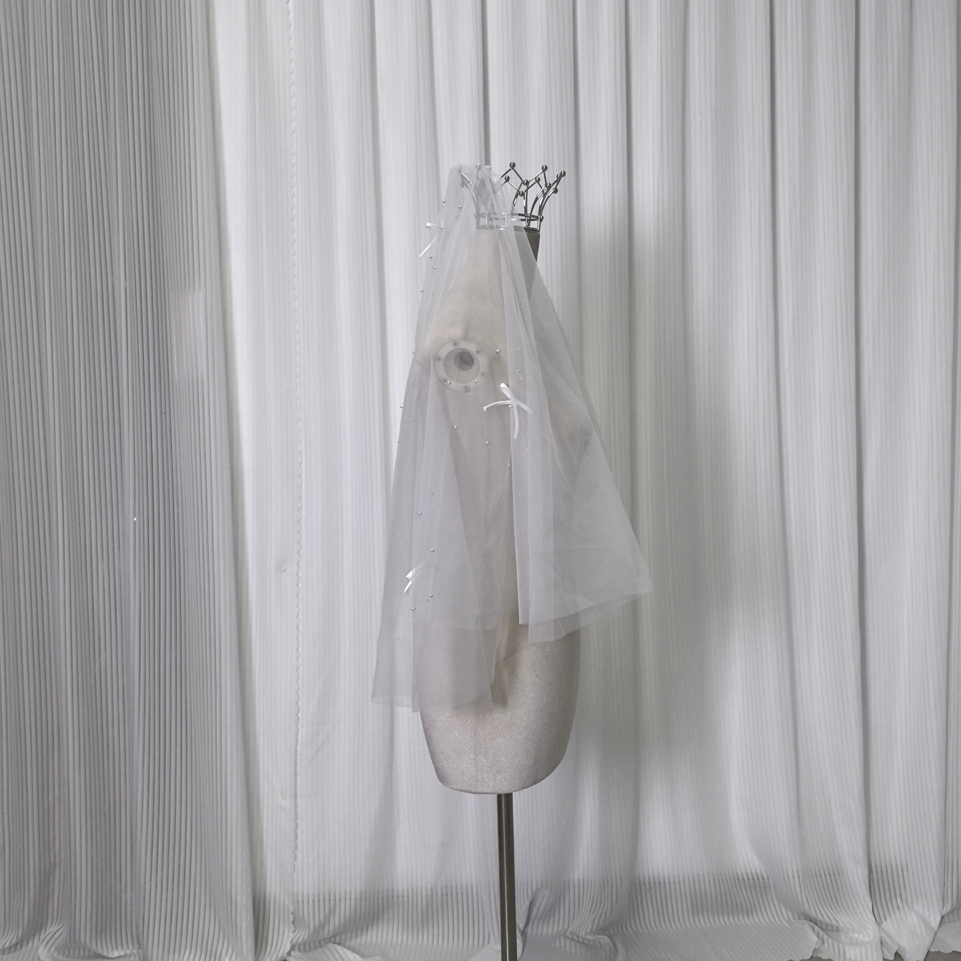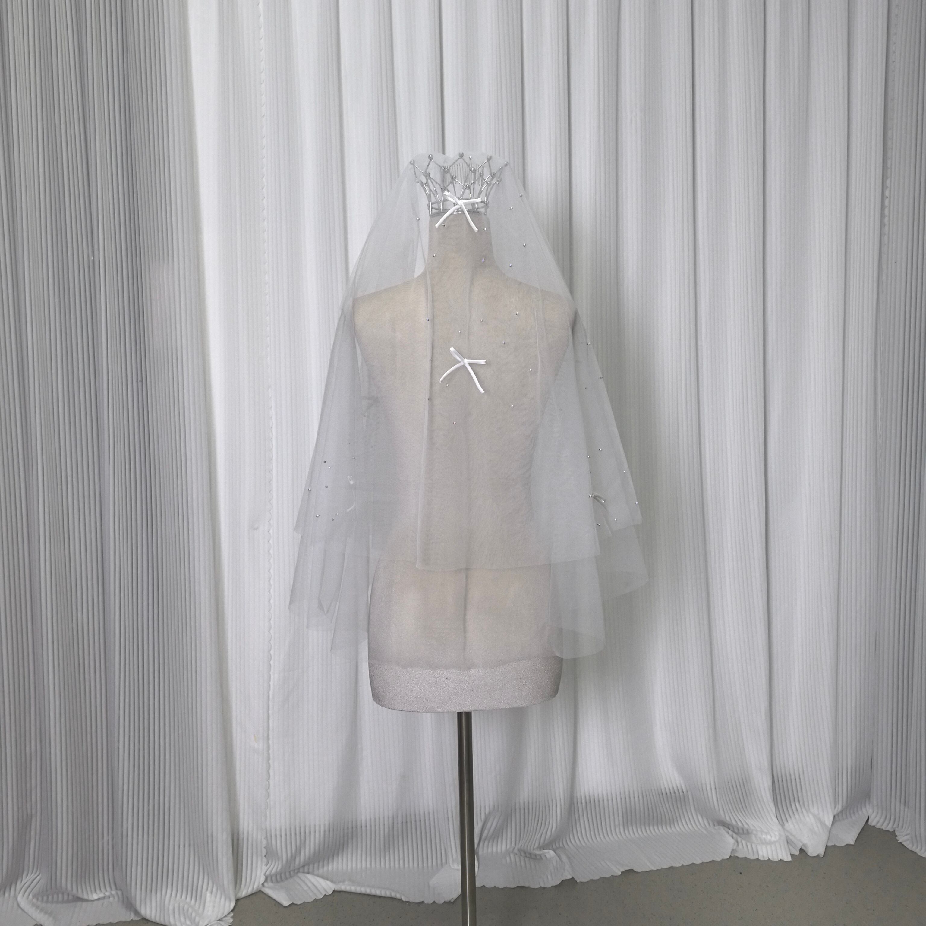 送料無料! レース付きウエディングドレスベール パール リボン  ショートベール 花嫁 結婚式 挙式 ウェディング
