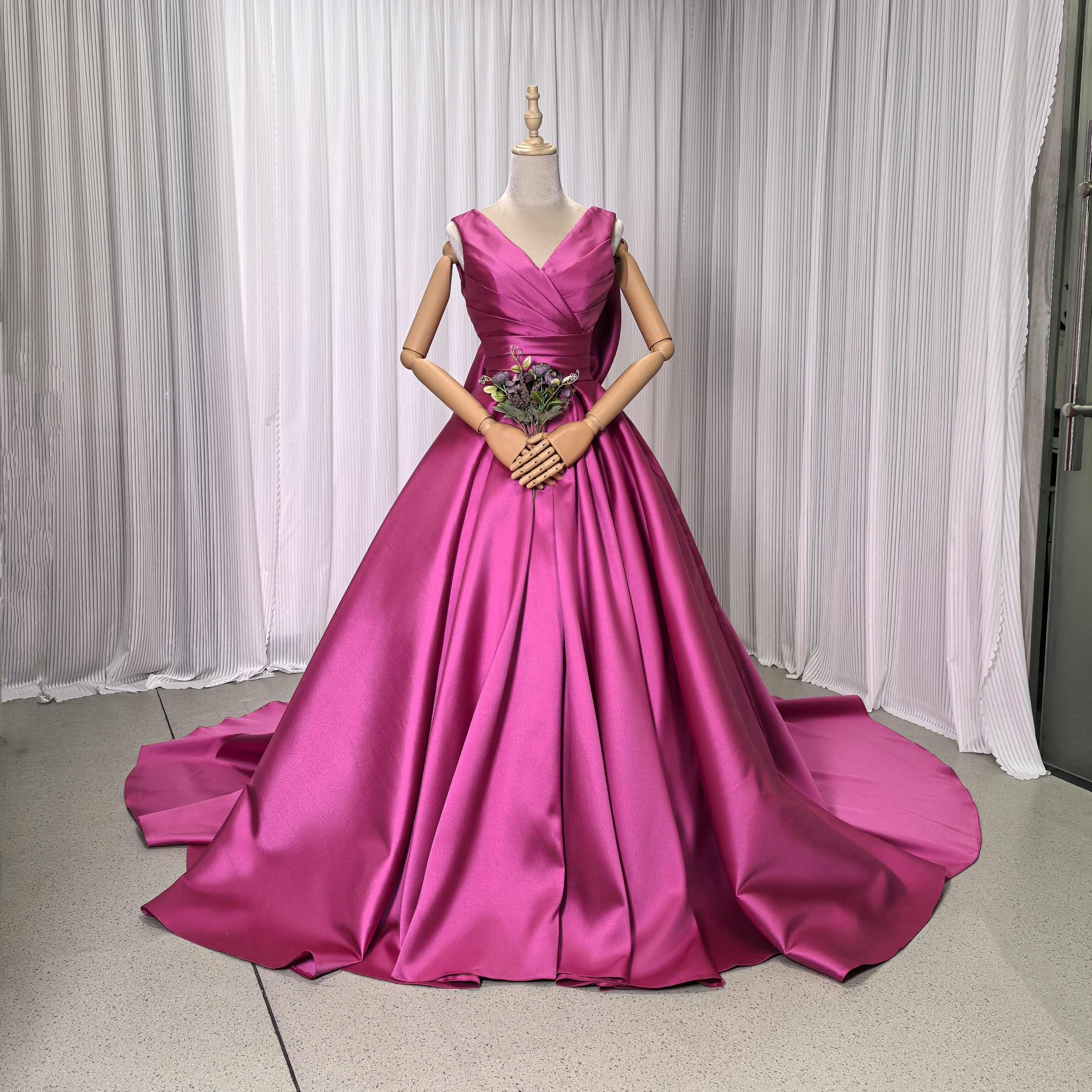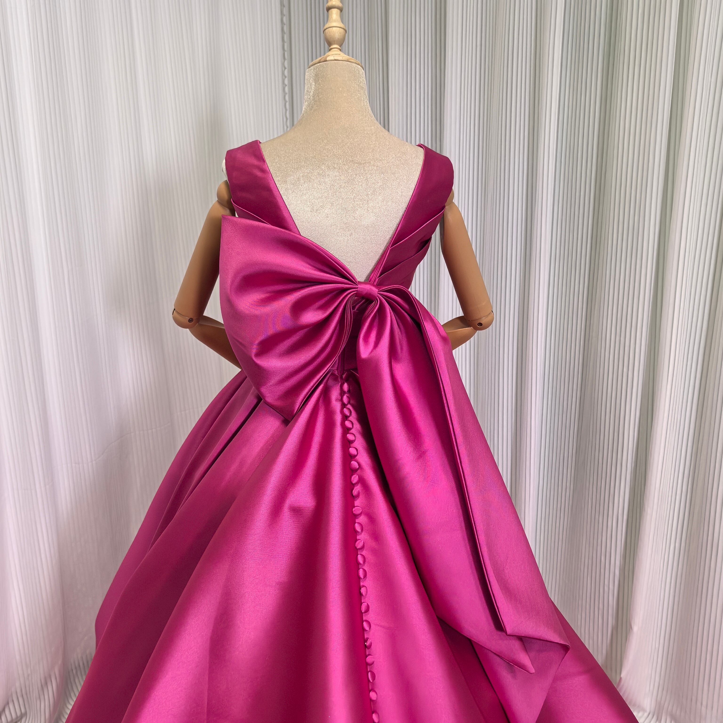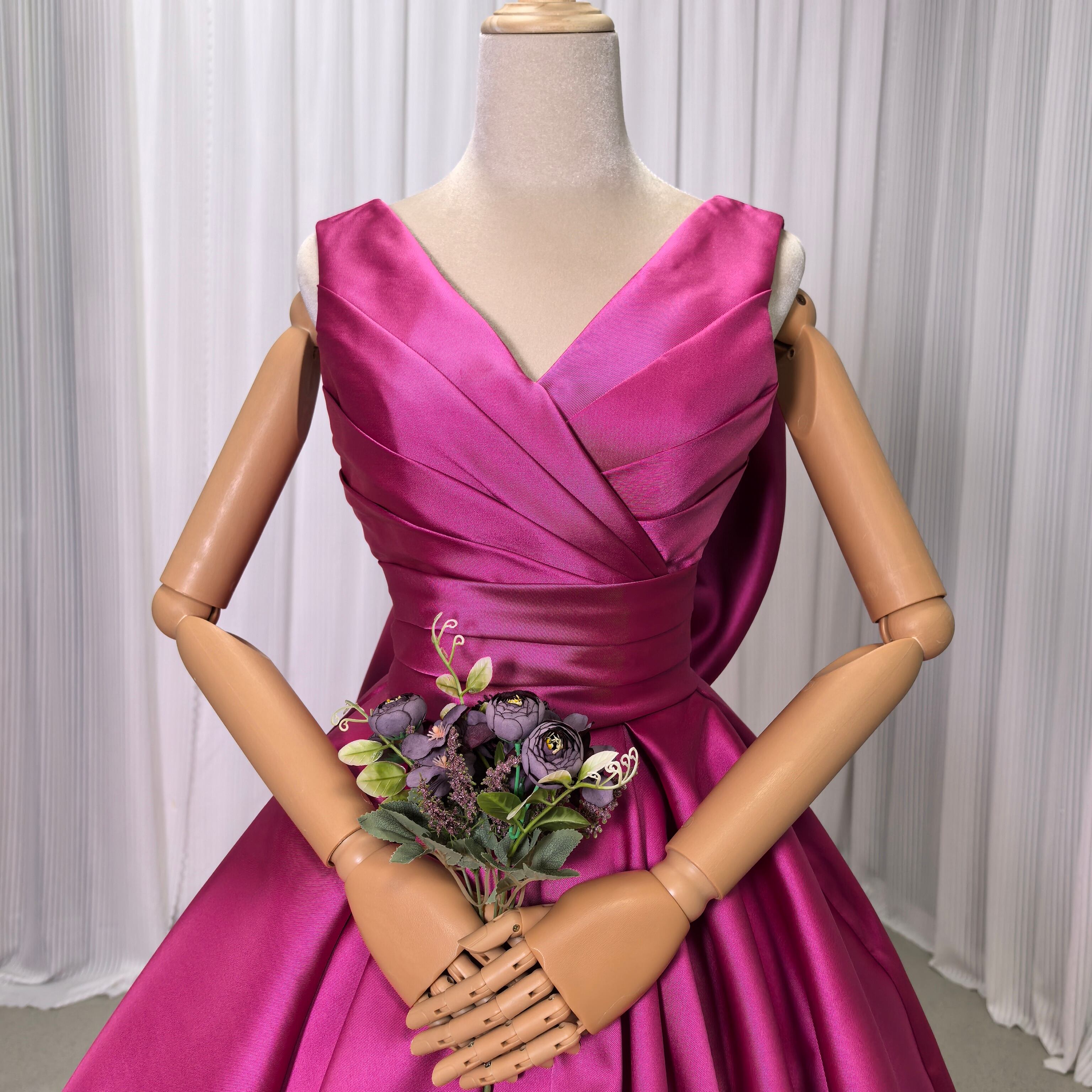 人気上昇!高級 ビビッドピンク 光沢感を抑えた重厚感のあるミカドサテン ミカドサテン カラードレス ふっくら柔らかなバックリボン