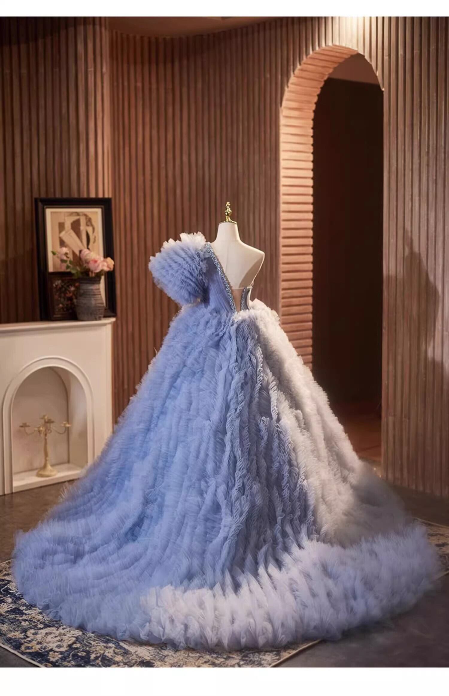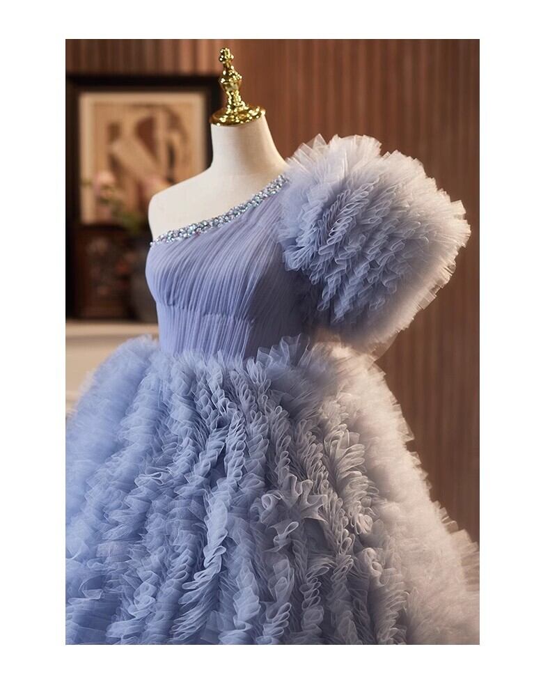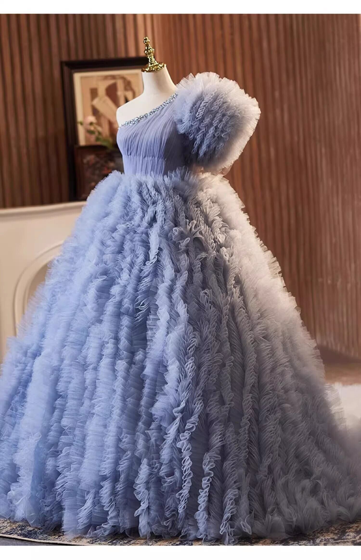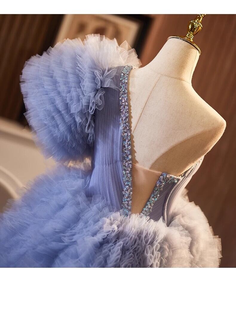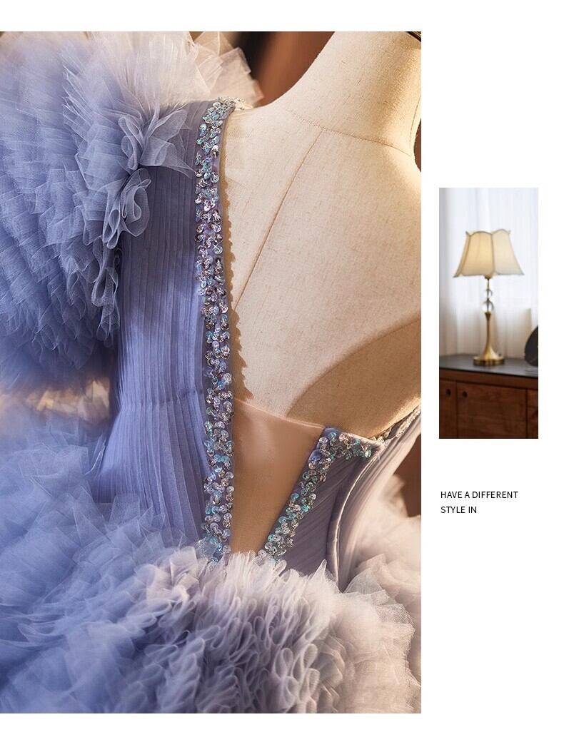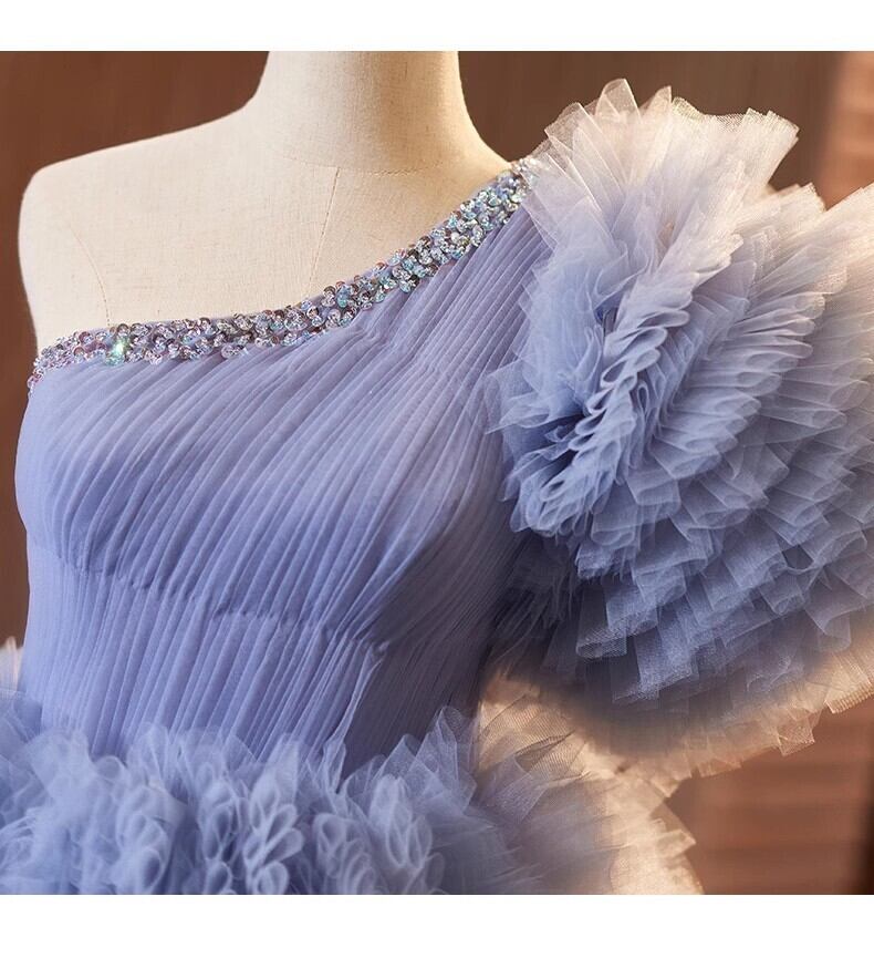 紫青カラードレス チュールドレス もこもこフリルドレス ボリューミー 柔らかく重ねたチュールスカート前撮り