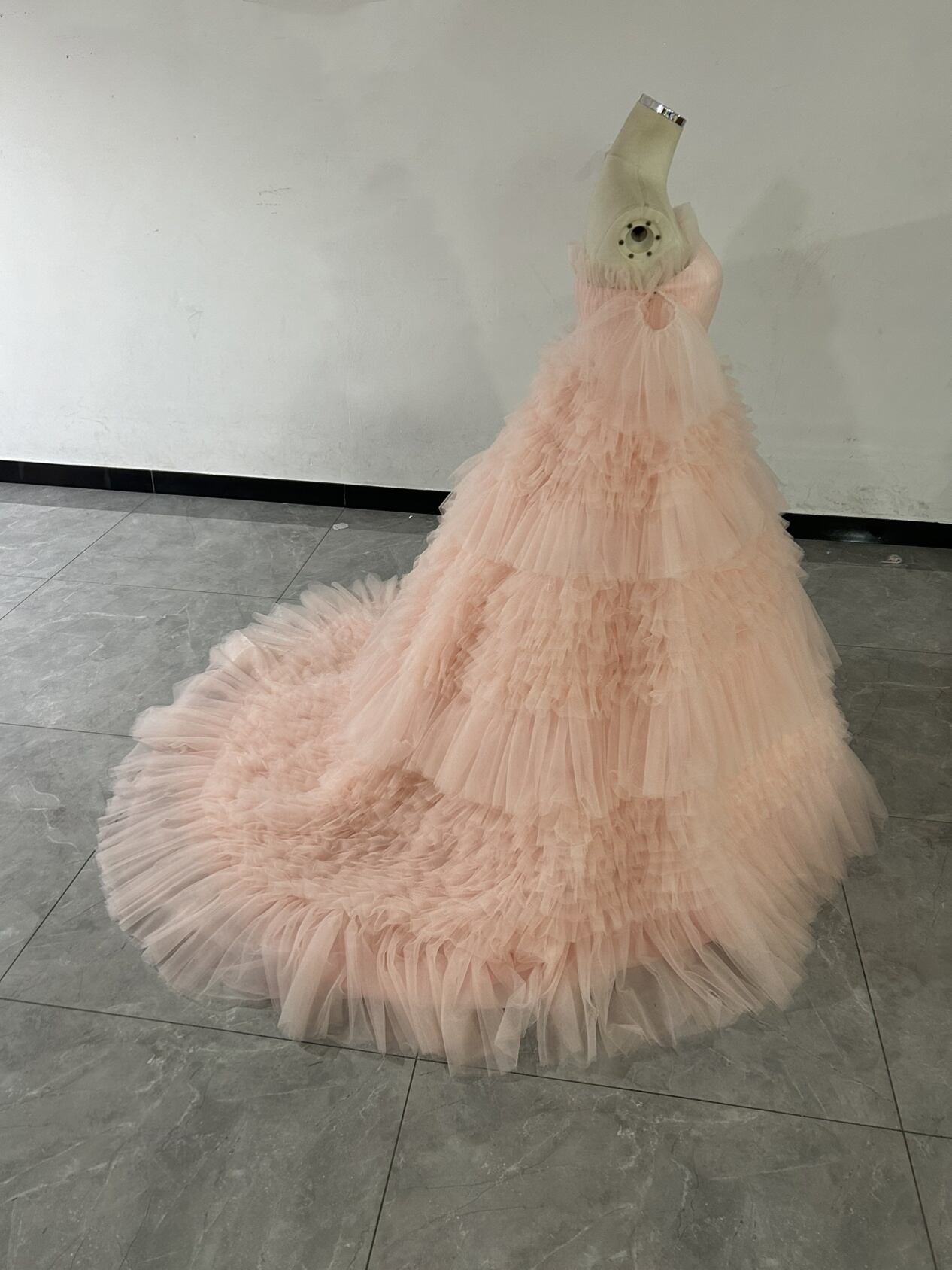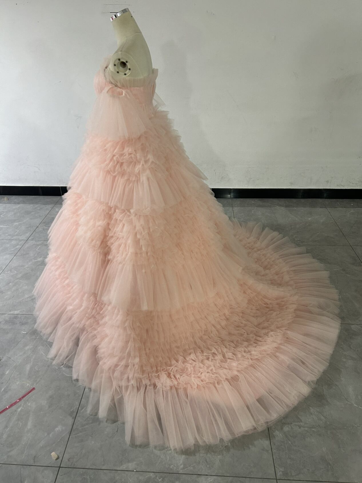 ベアトップ ピンク カラードレス 韓国風ドレス チュールドレス もこもこフリルドレス ボリューミー 前撮り