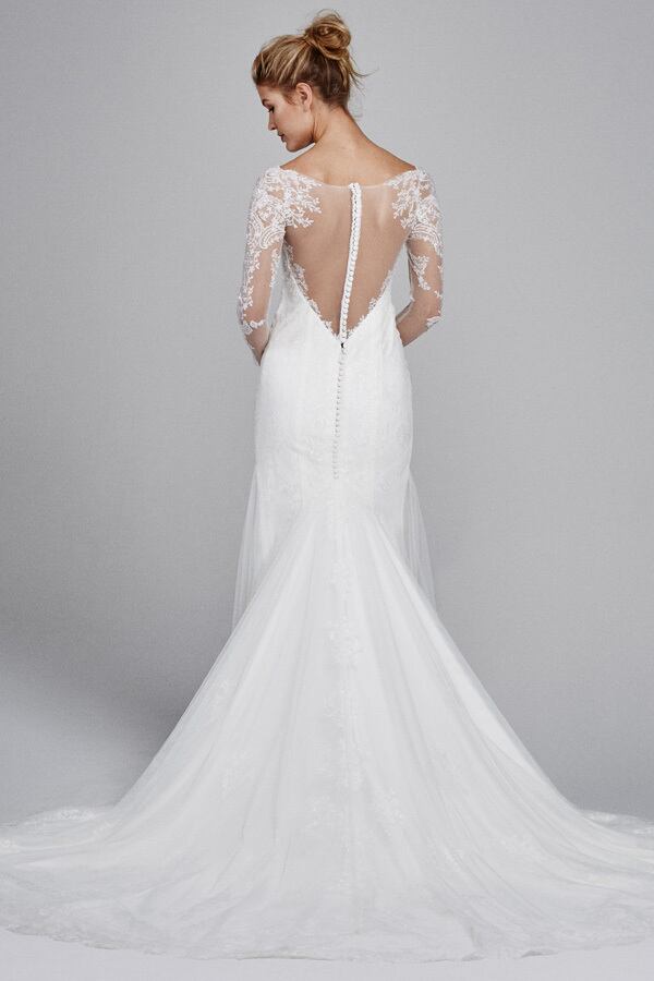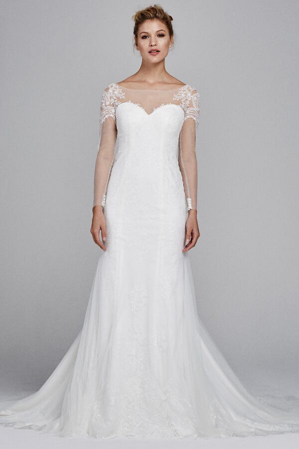 美品!シースルーロングスリーブ 枝花刺繍 ウエディングドレス 繊細レース マーメイドドレス 美しいボディライン スレンダーライン