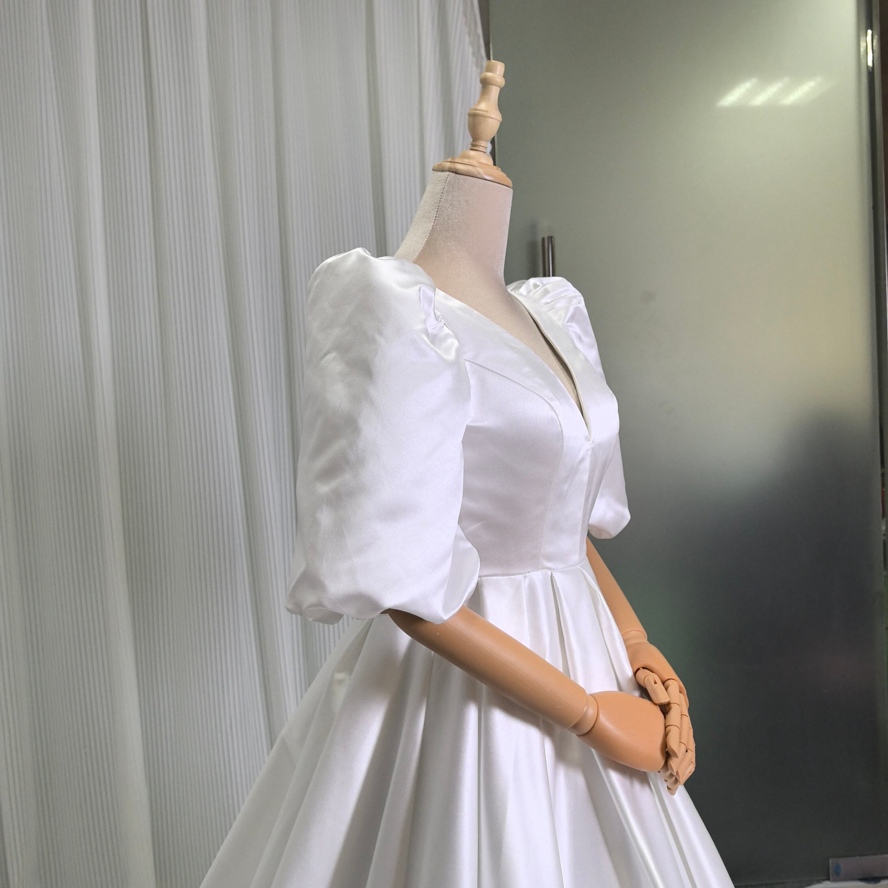 上品!Vネック セクシー ウエディングドレス リボン ふっくら柔らかなバックリボン パーティードレス エレガントプリンセスライン