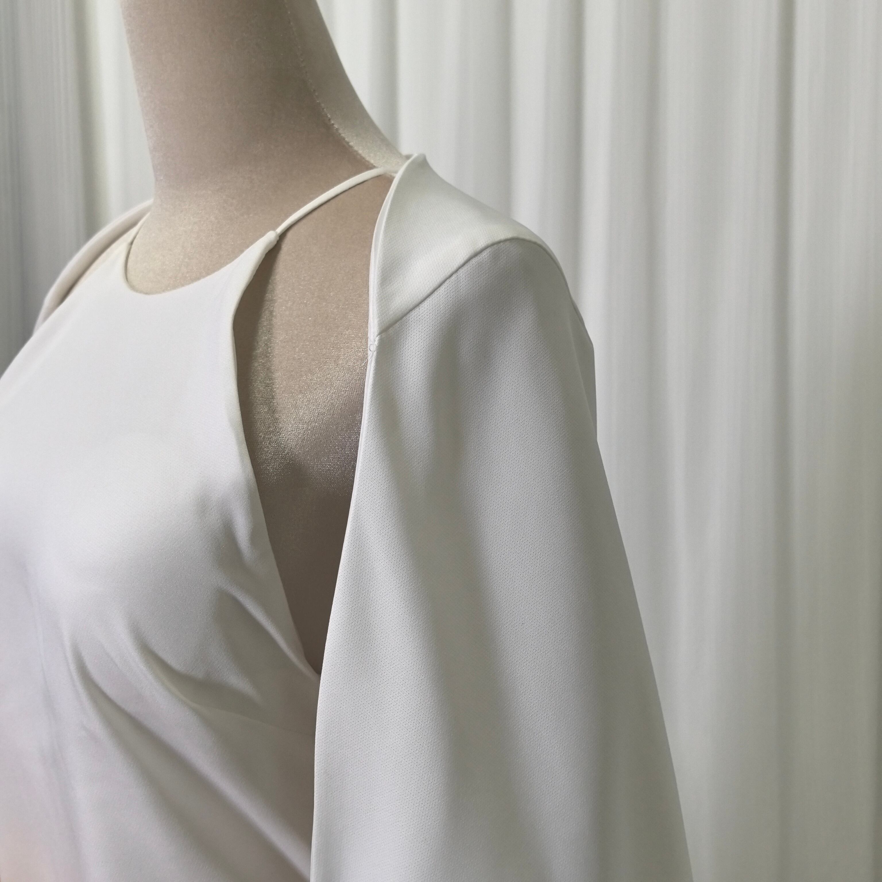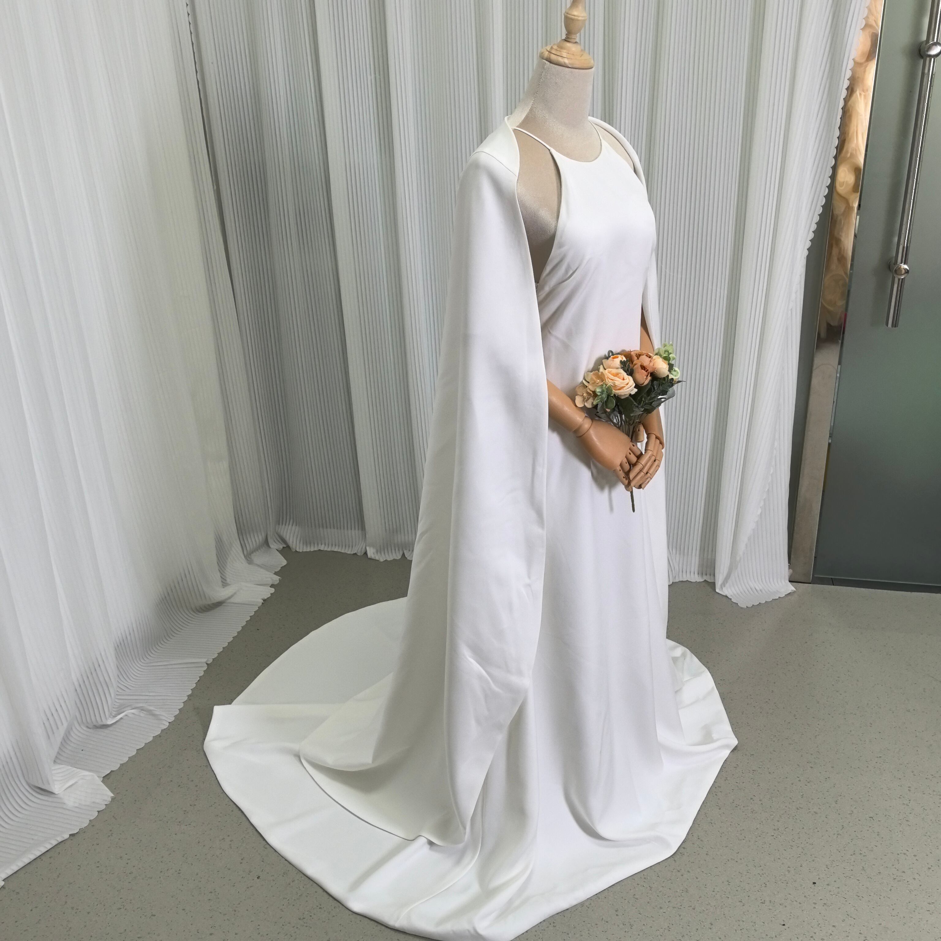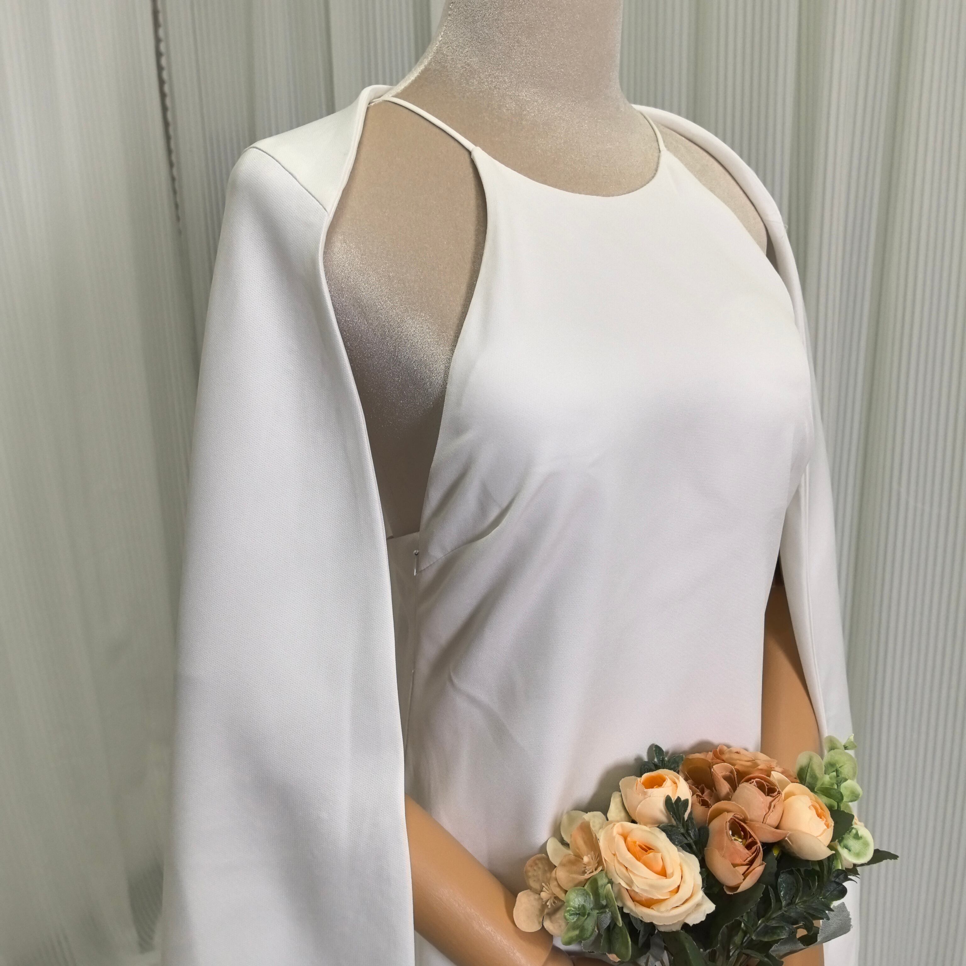 人気上昇!ホルターネック オフホワイト ウエディングドレス + エレガント ポンチョ 結婚式/前撮り