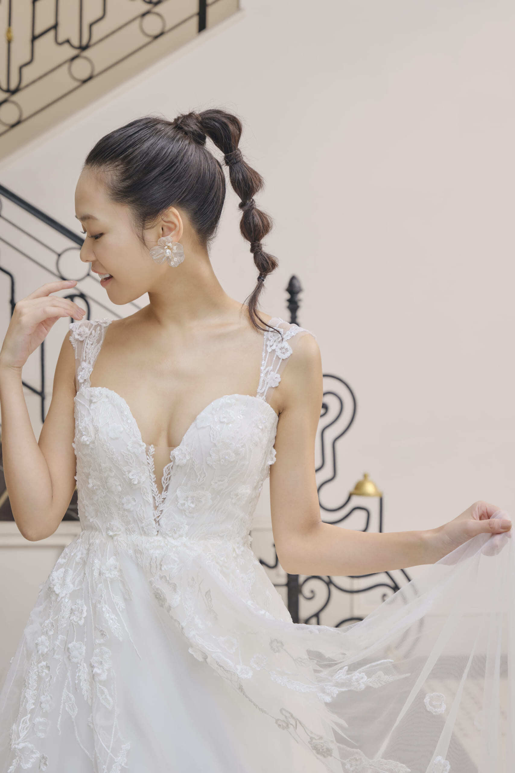 美品!ソフトチュール キャミソールドレス 繊細レース ウエディングドレス マーメードライン 細見えシルエット エンパイアライン 美しいボディライン クルミボタン | David1021k Dress(ダヴィドレス)