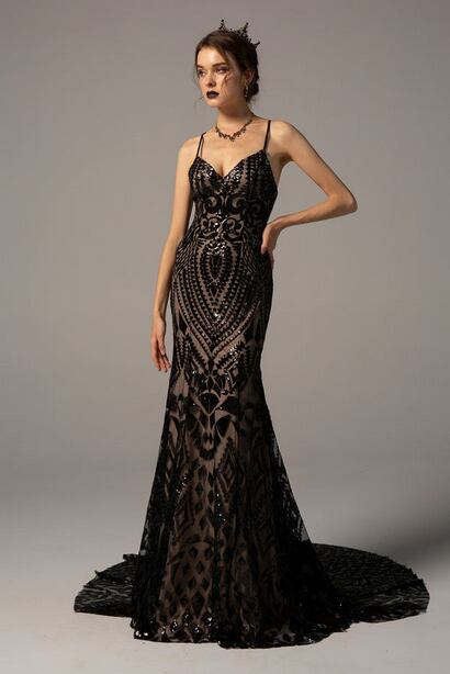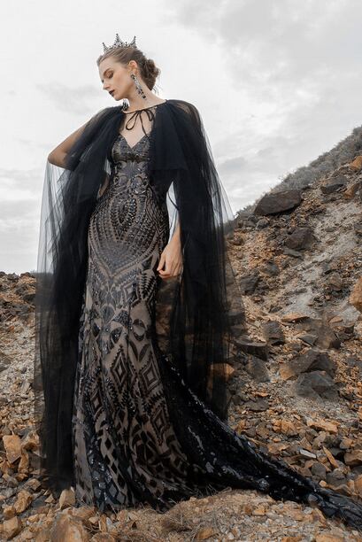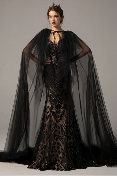 高品質!チュールスオーダードレス ロングマント ブラックカラードレス パーティードレス ソフトマーメイドライン イブニングドレス