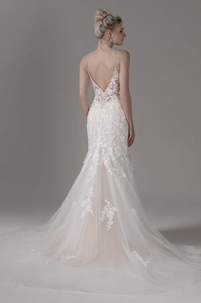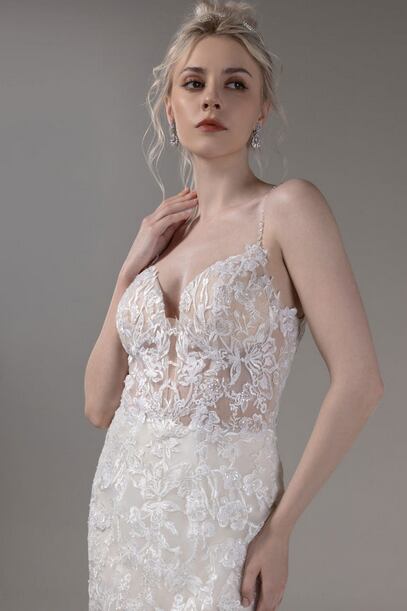 美品!マーメードスタイル アイボリー色 花モチーフ刺繡 ウエディングドレス キャミソール エンパイアライン 背中見せ/バックレス