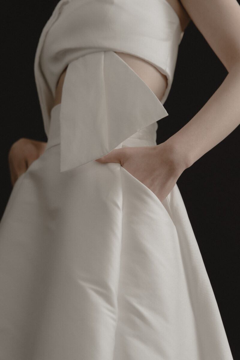美品!ハイウエストなセパレートスタイル ユニークなパーティードレス 気品溢れるウエディングドレス クレープ生地 美しいシルエット