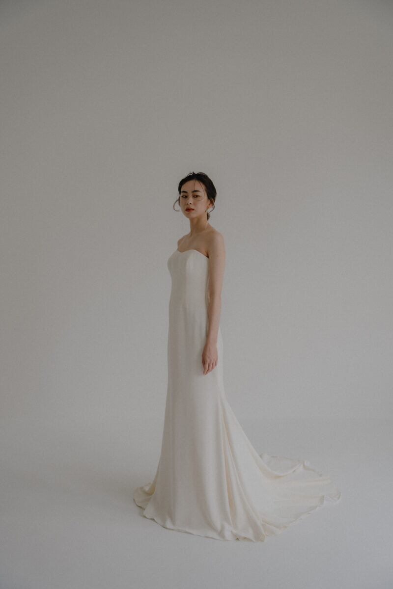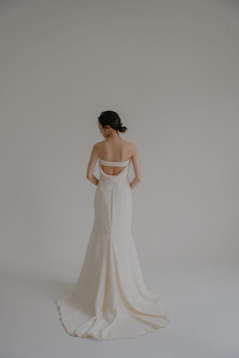 美品!個性的なバックスタイル モード感あふれるパーティードレス シンプルなウエディングドレス クレープ生地 マーメイドドレス 綺麗なシルエット