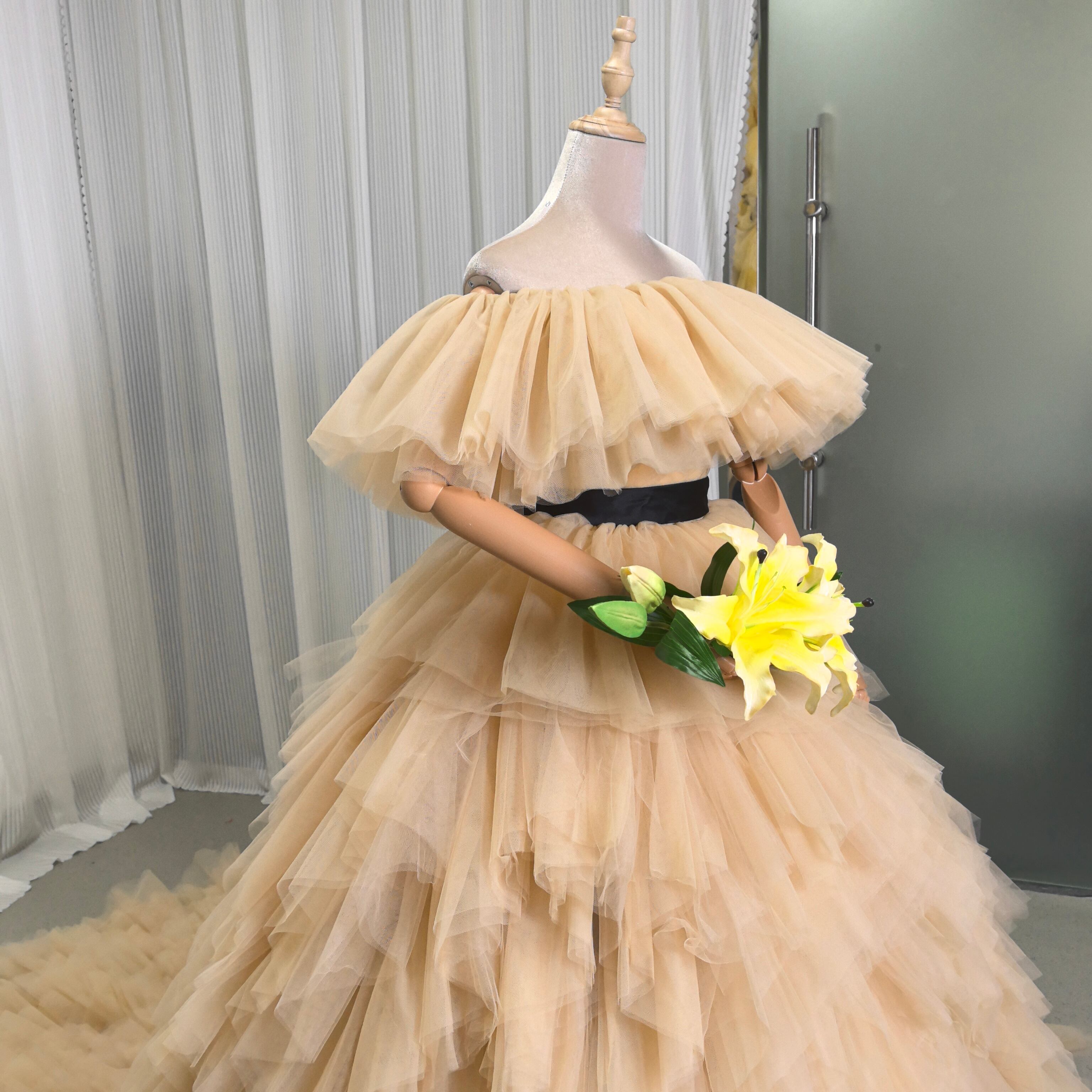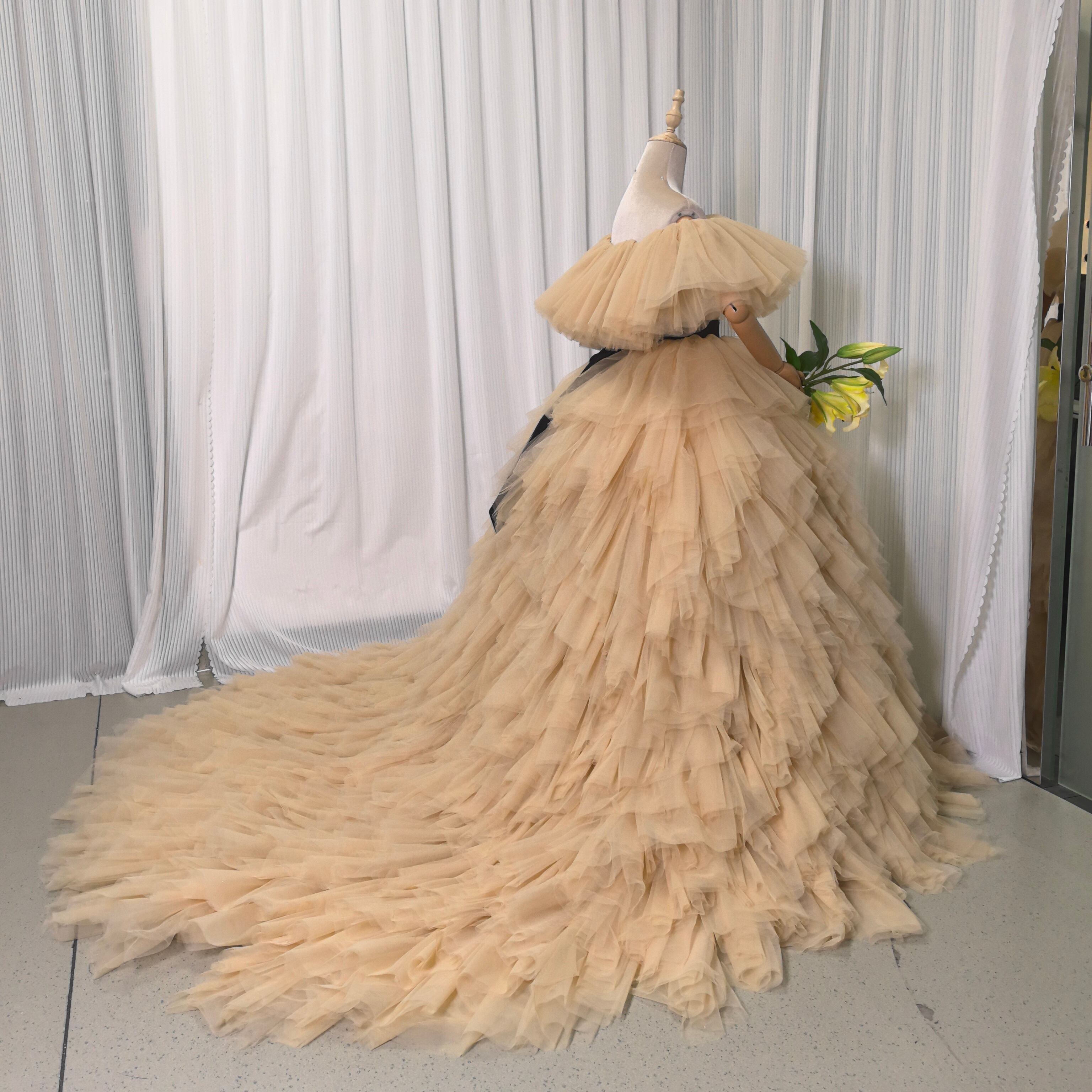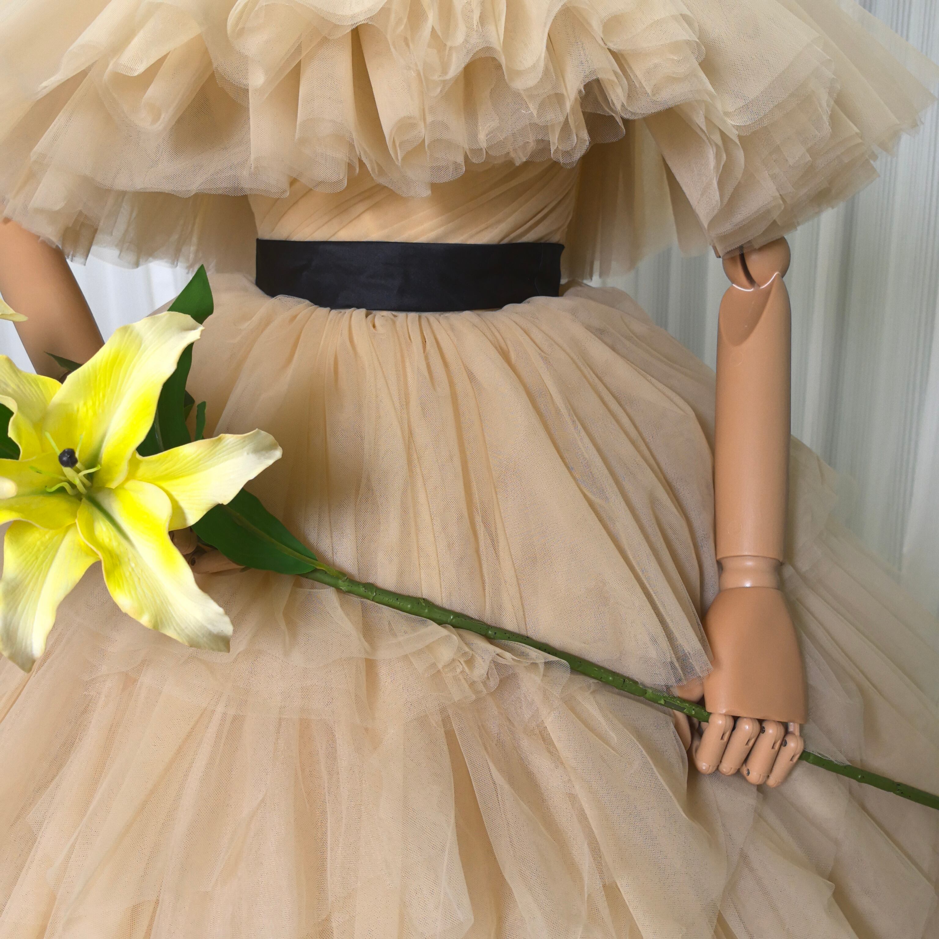 3wayクリームイエローカラードレス オフショルダー 韓国風ドレス チュール もこもこフリルドレス ボリューミー 前撮り