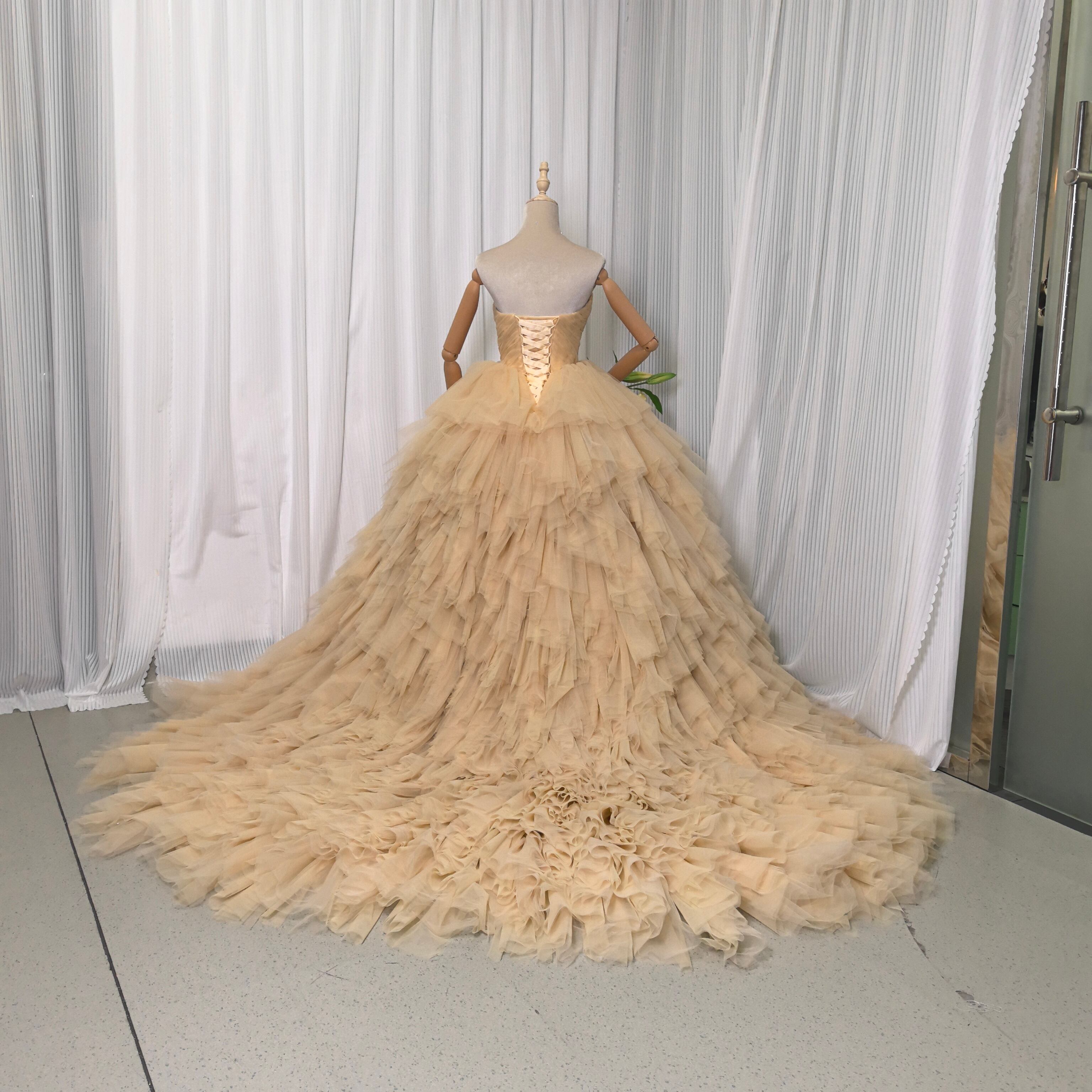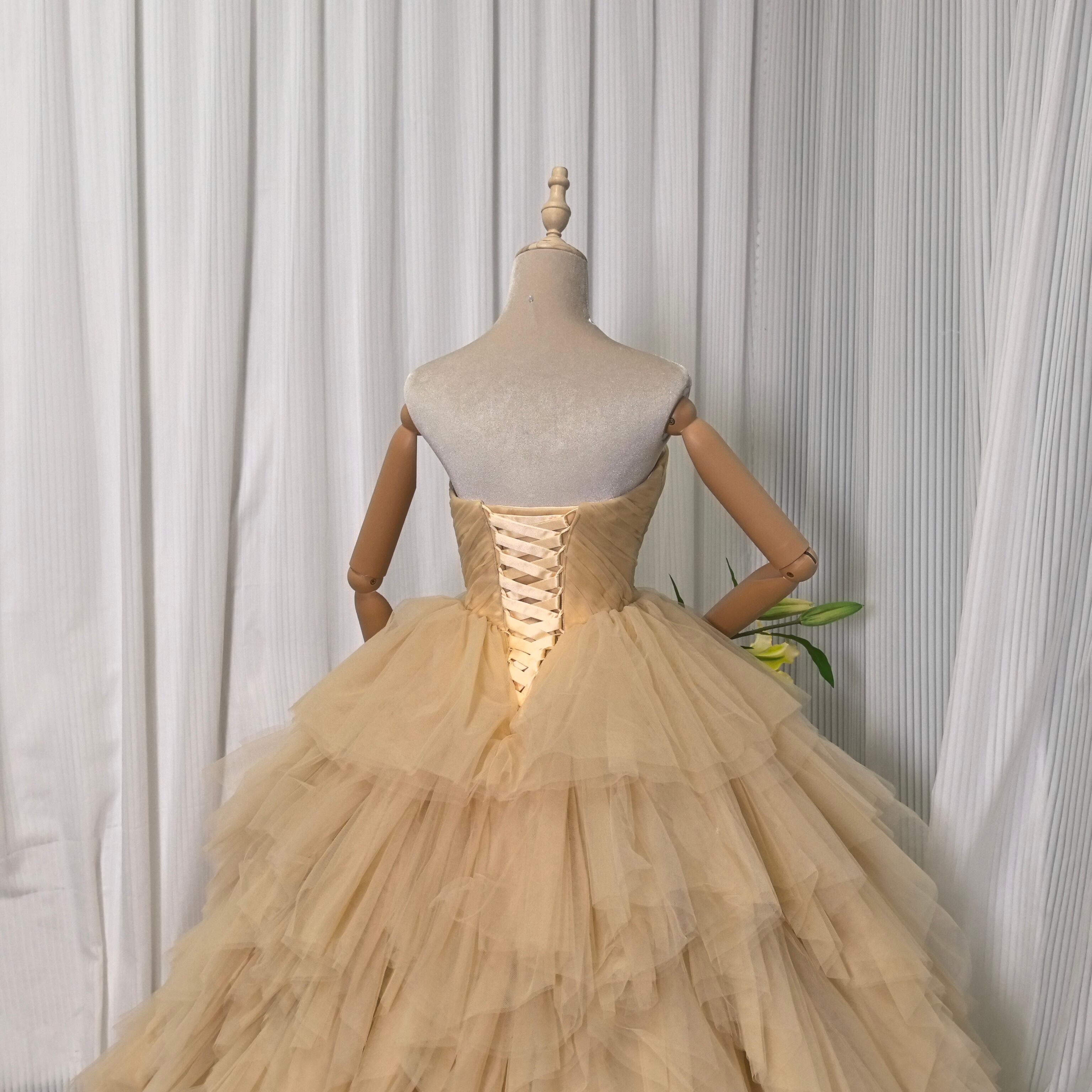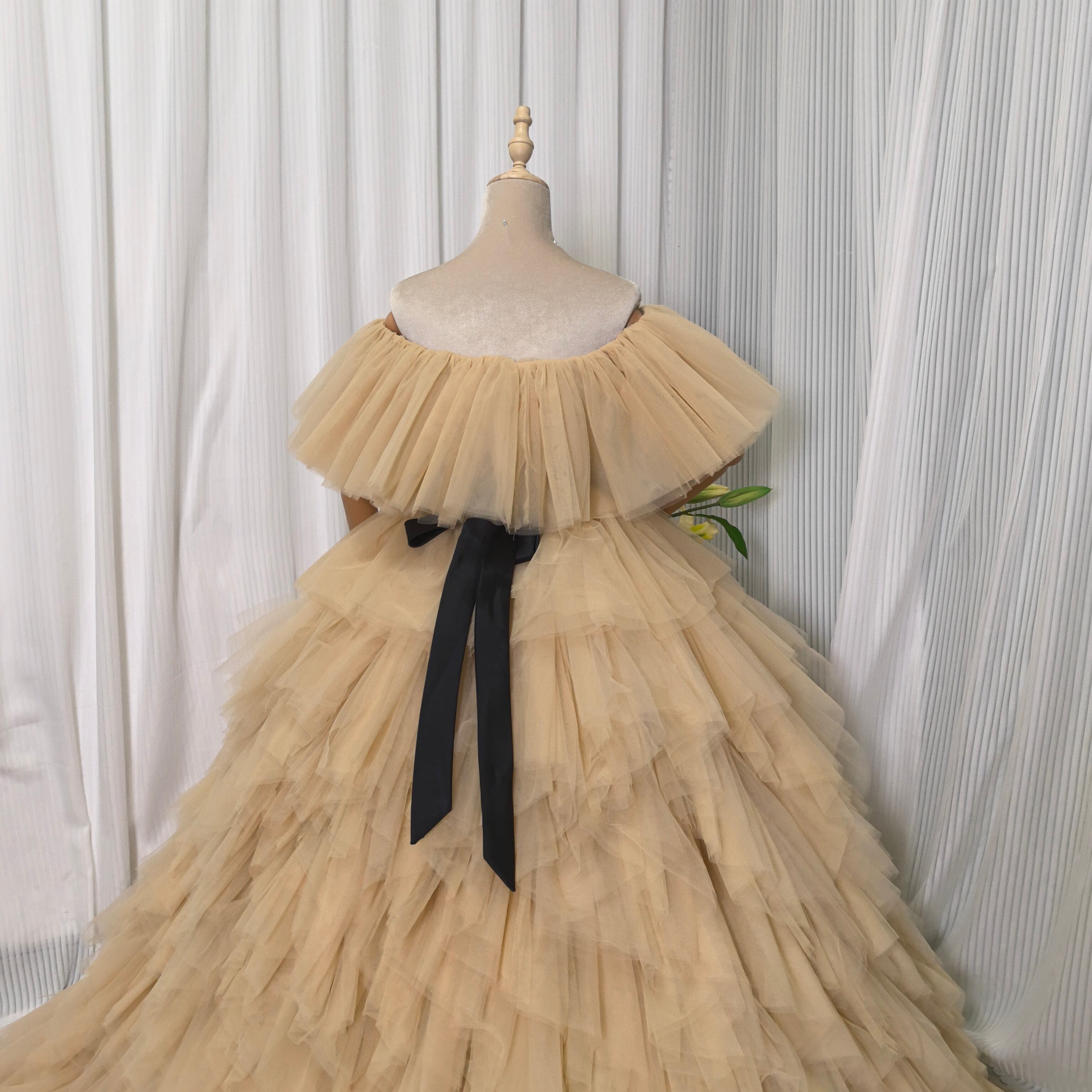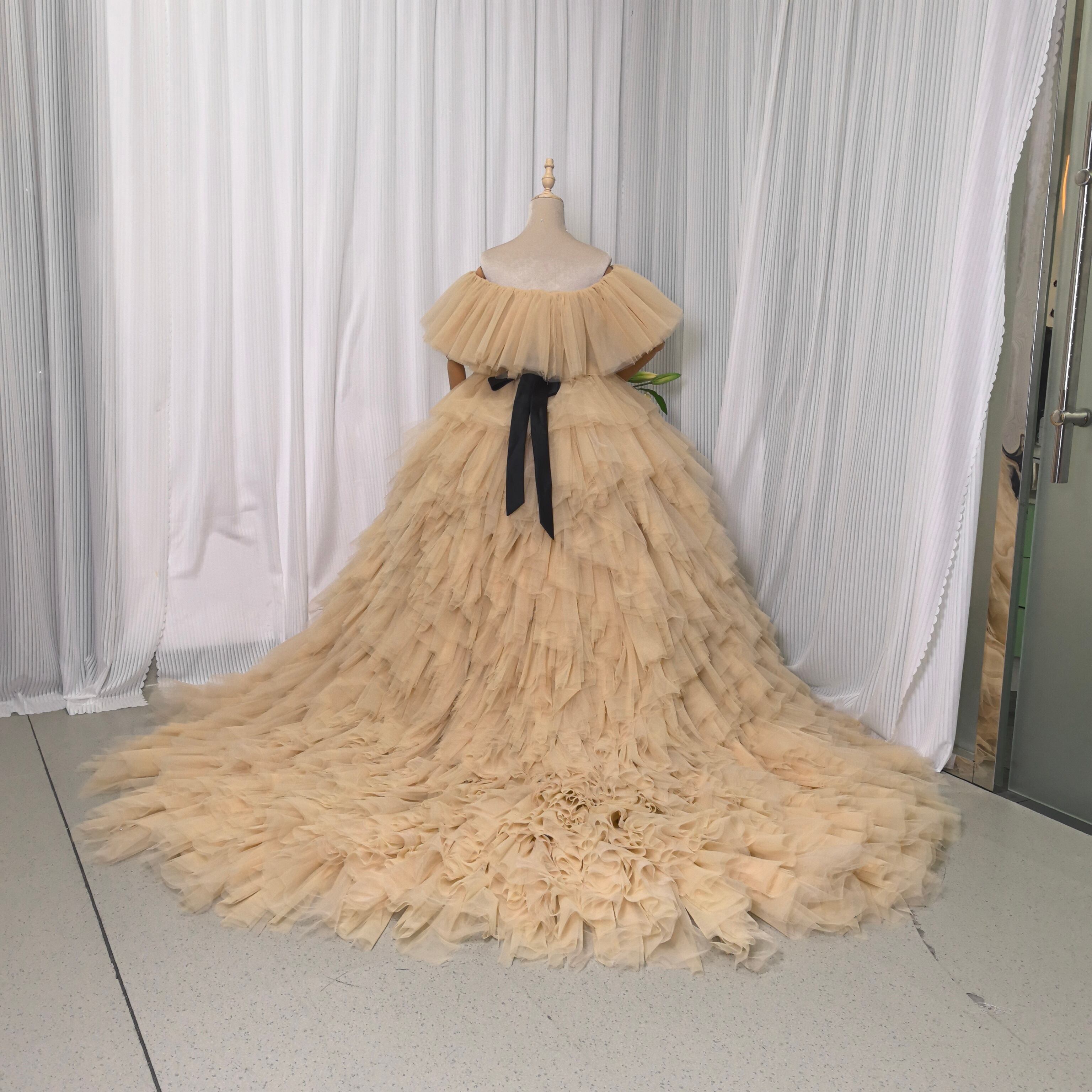 3wayクリームイエローカラードレス オフショルダー 韓国風ドレス チュール もこもこフリルドレス ボリューミー 前撮り
