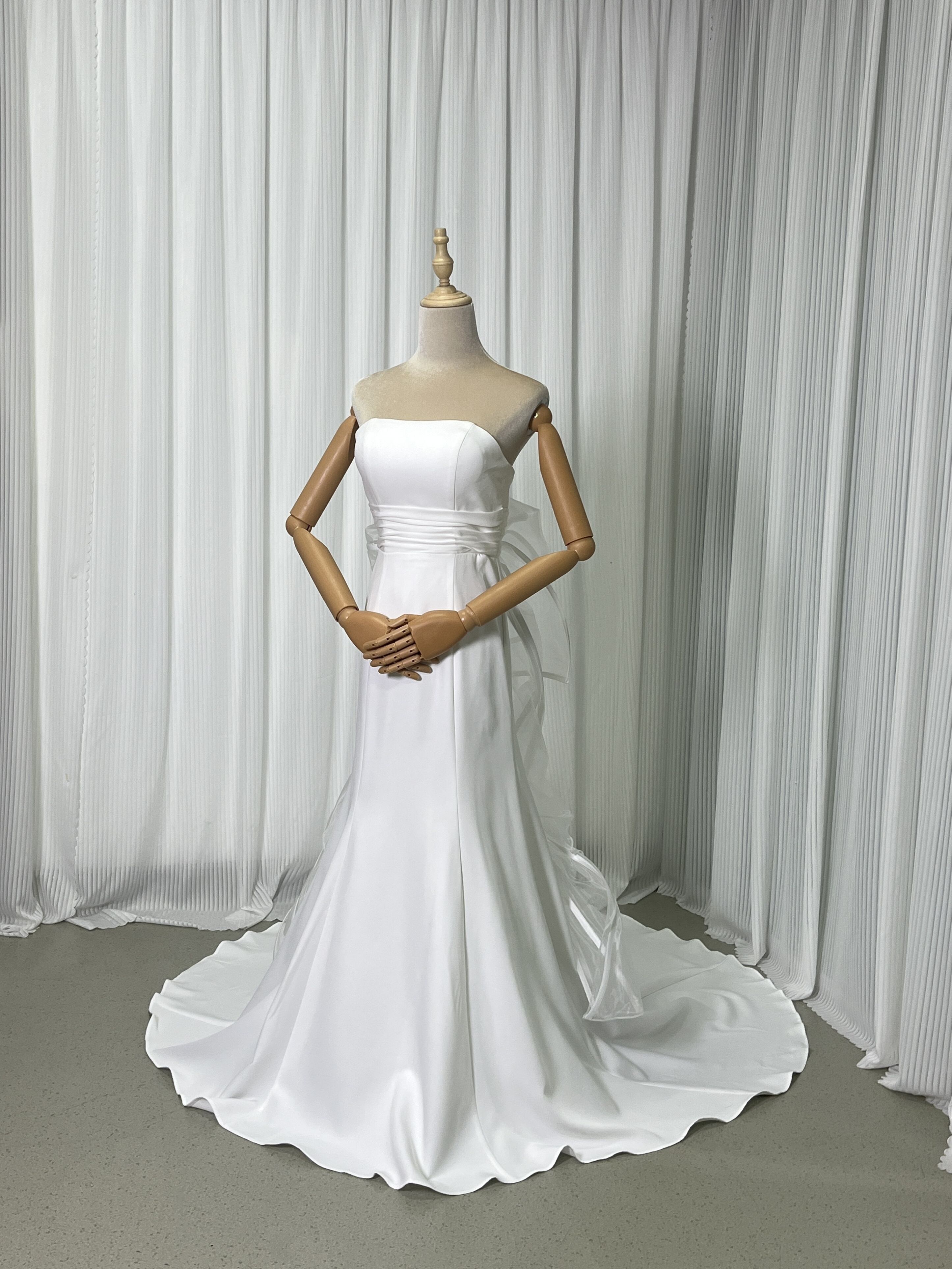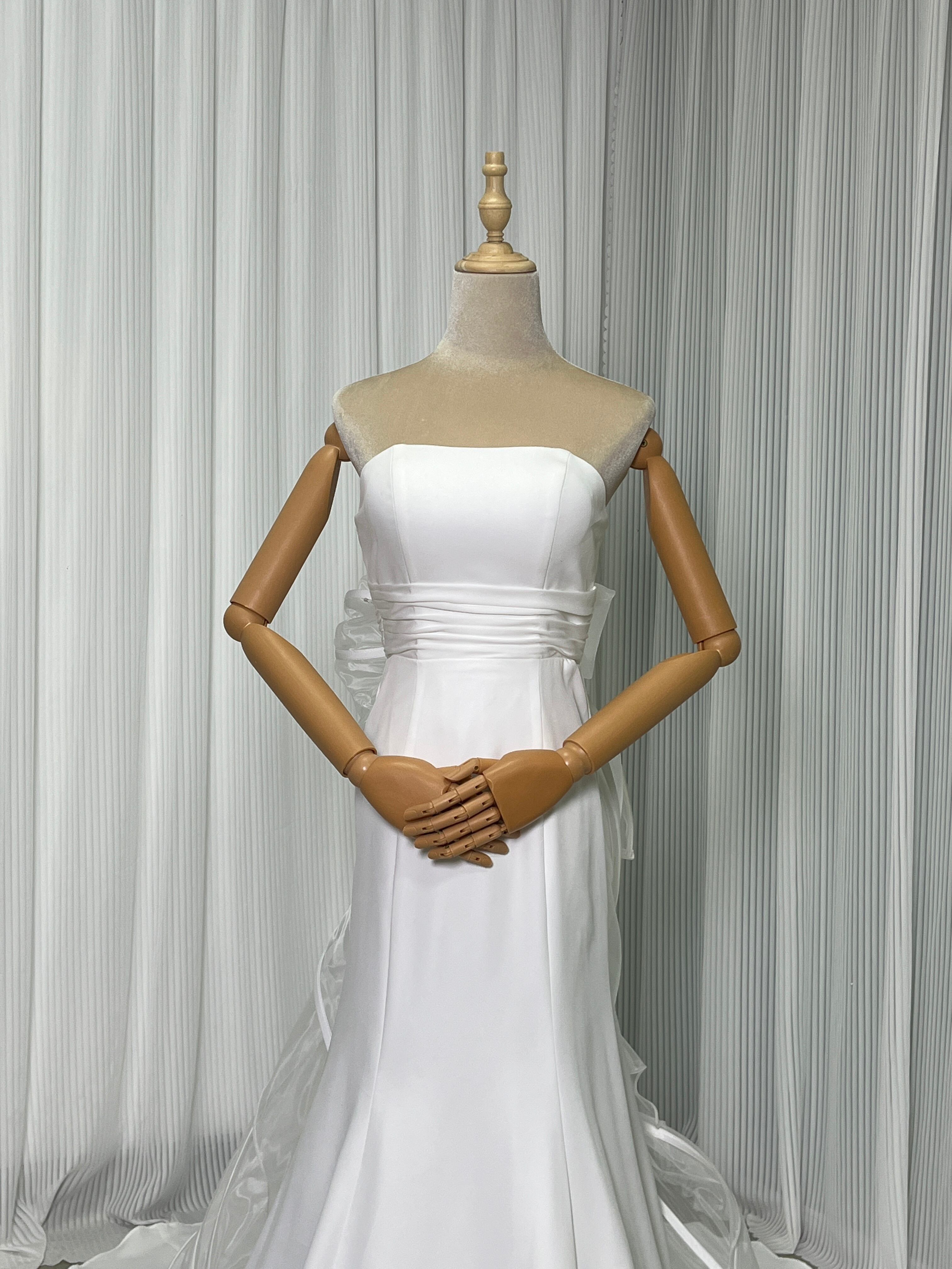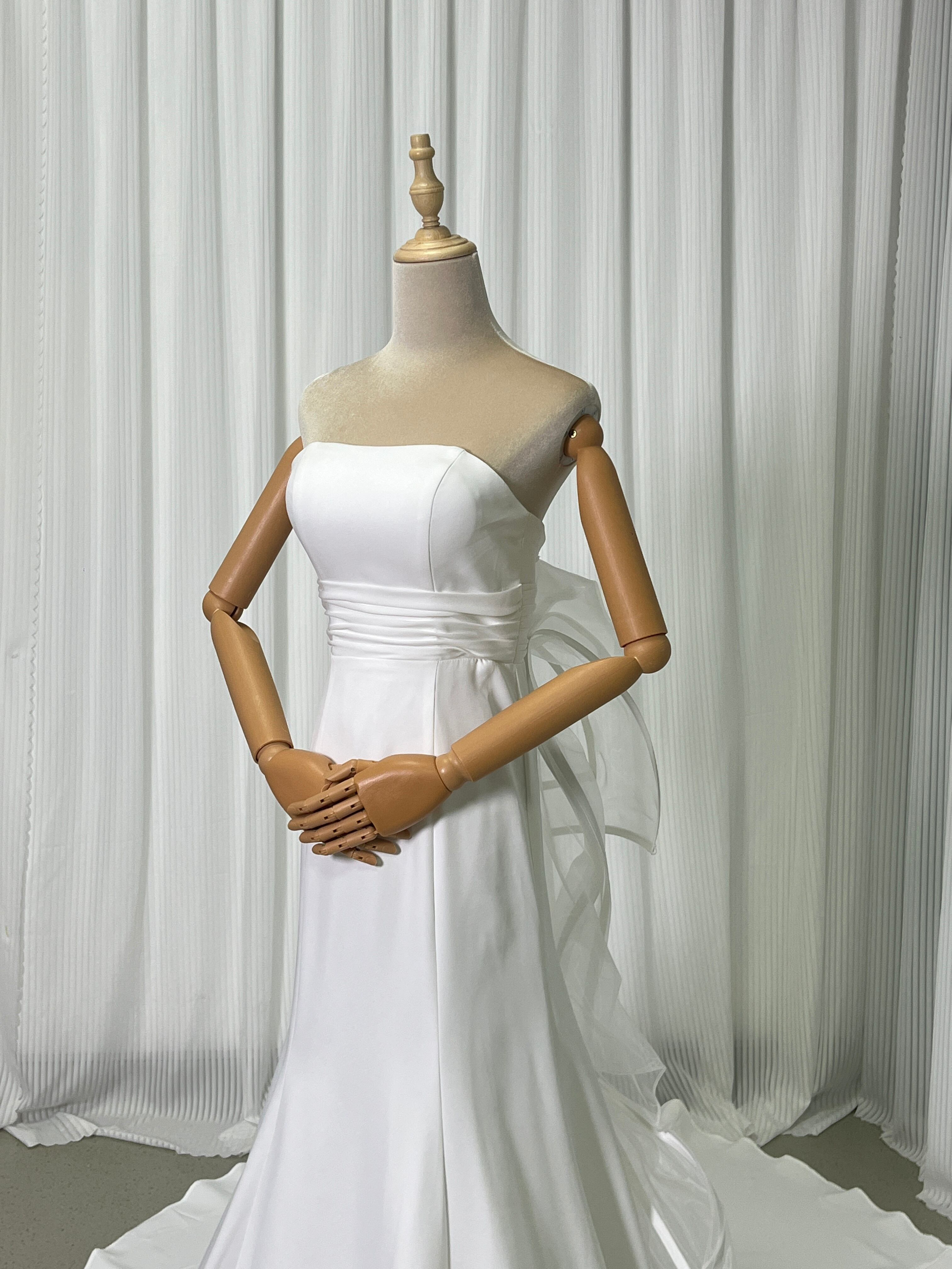 美品! ウエディングドレス クレープ生地 ロングトレーン マーメイドラインふっくら柔らかなバックリボン