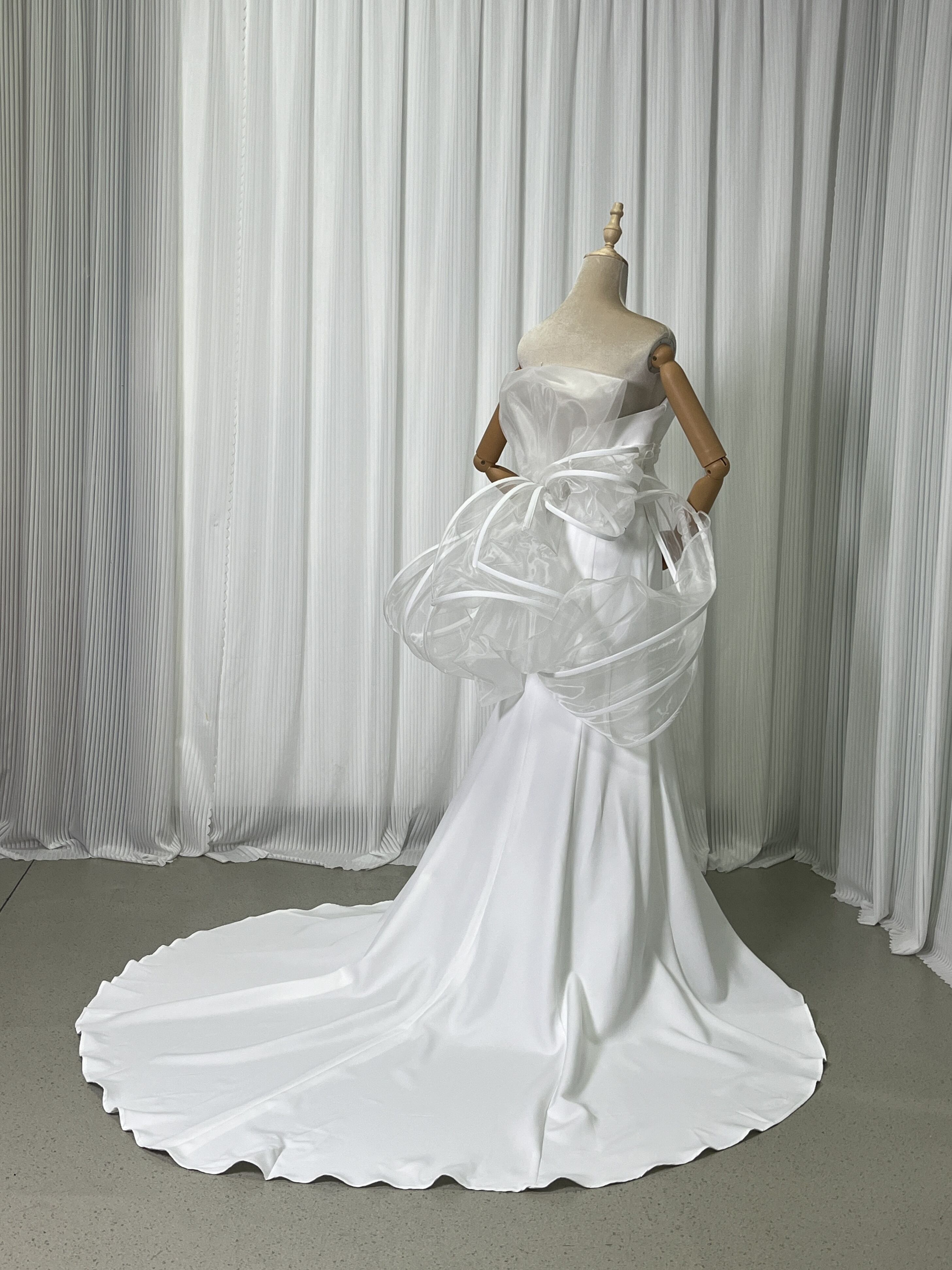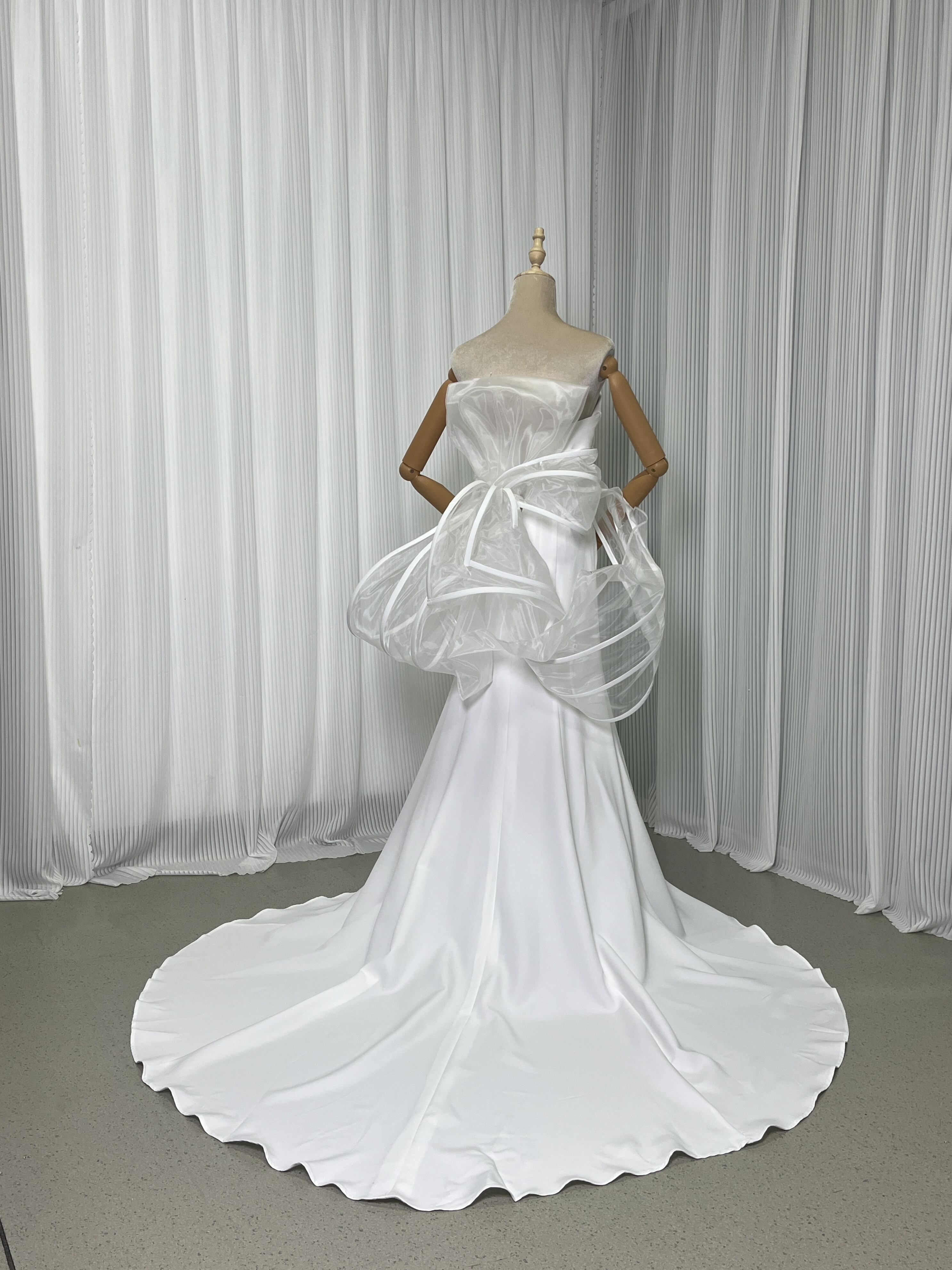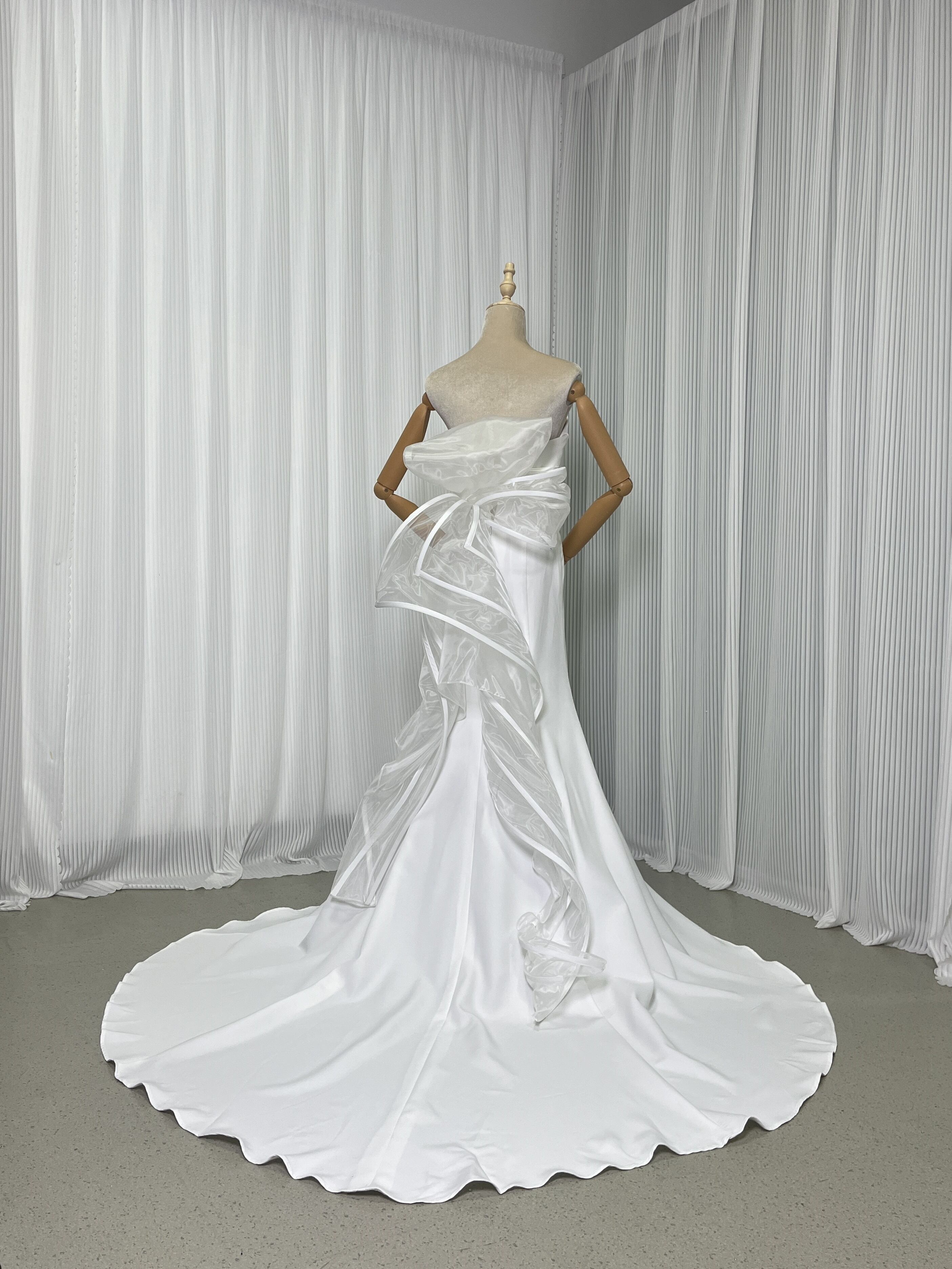 美品! ウエディングドレス クレープ生地 ロングトレーン マーメイドラインふっくら柔らかなバックリボン