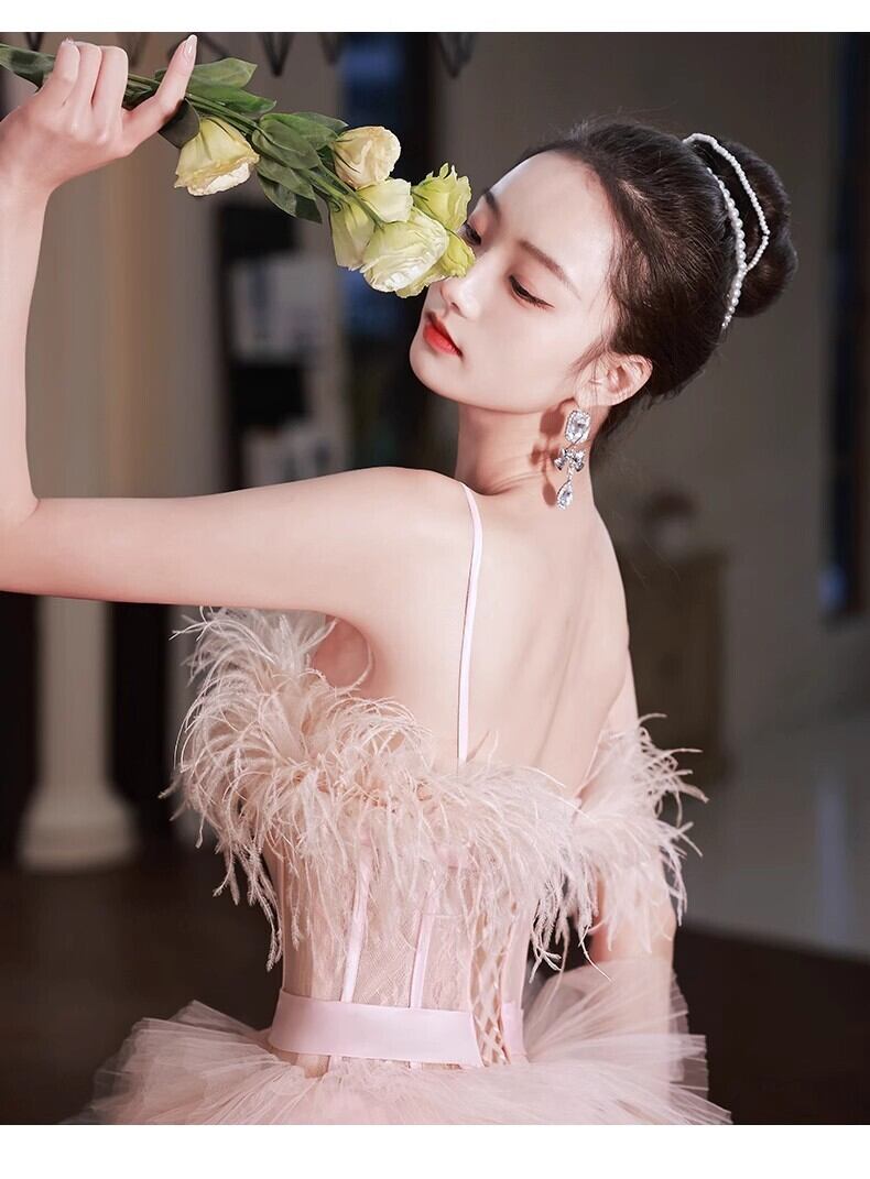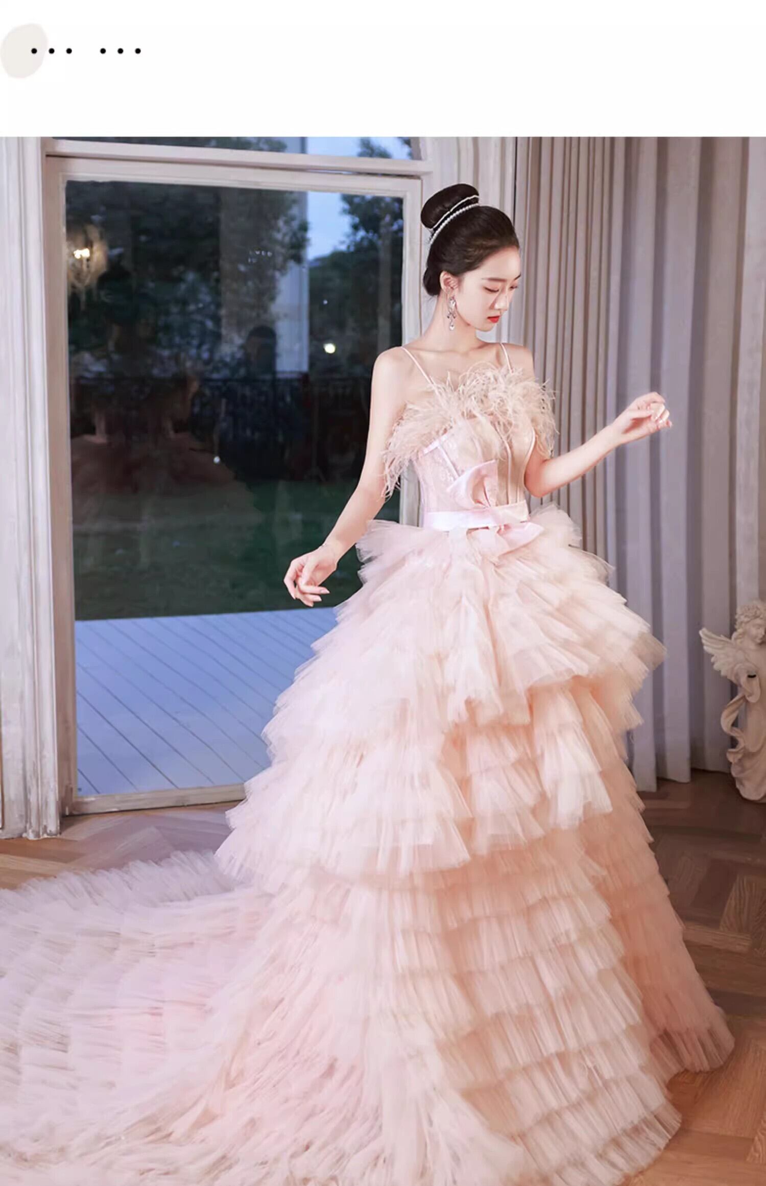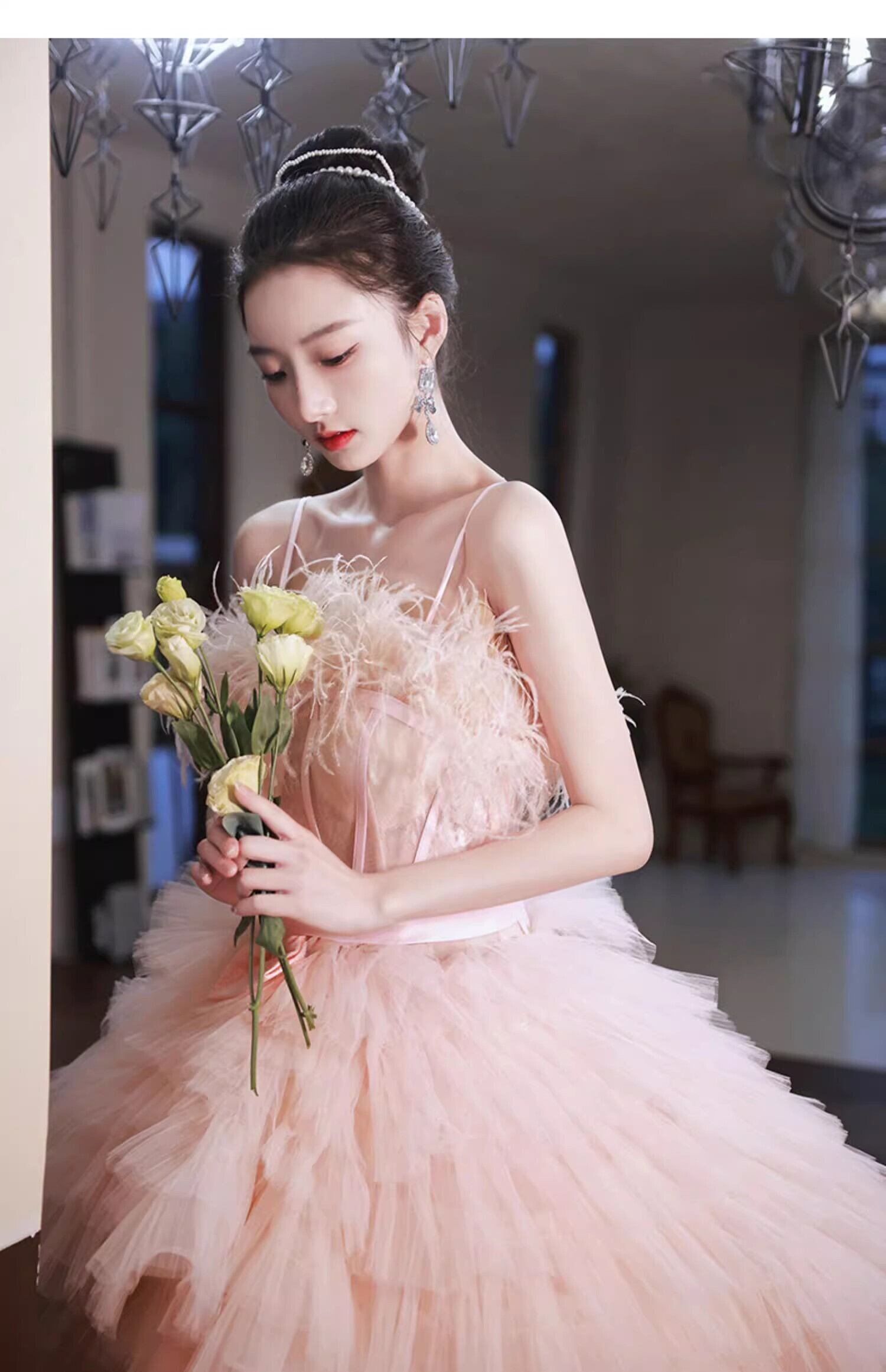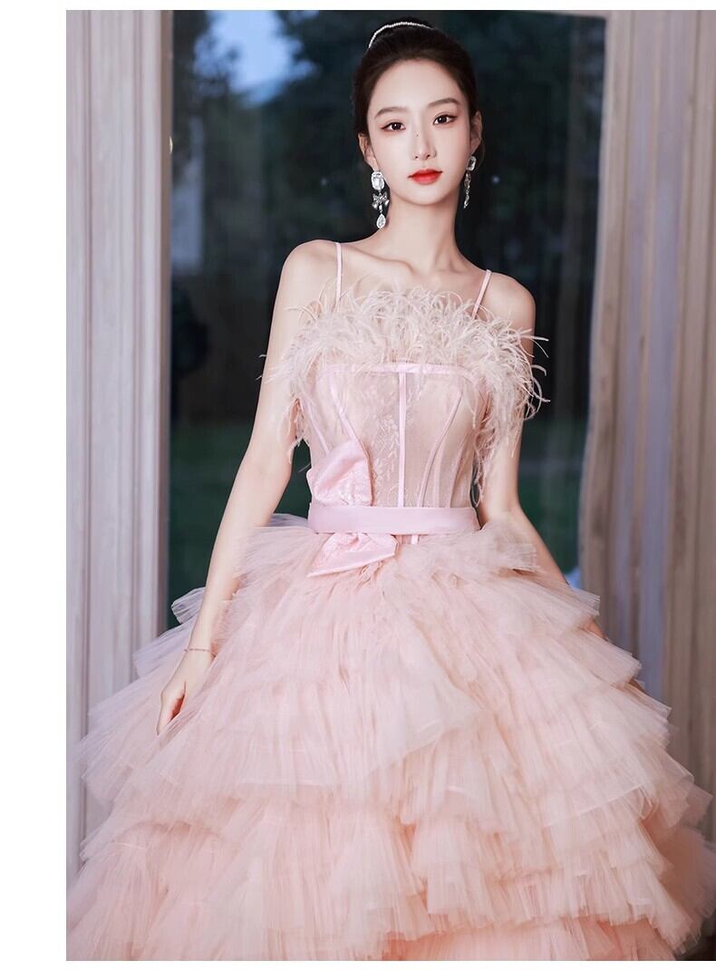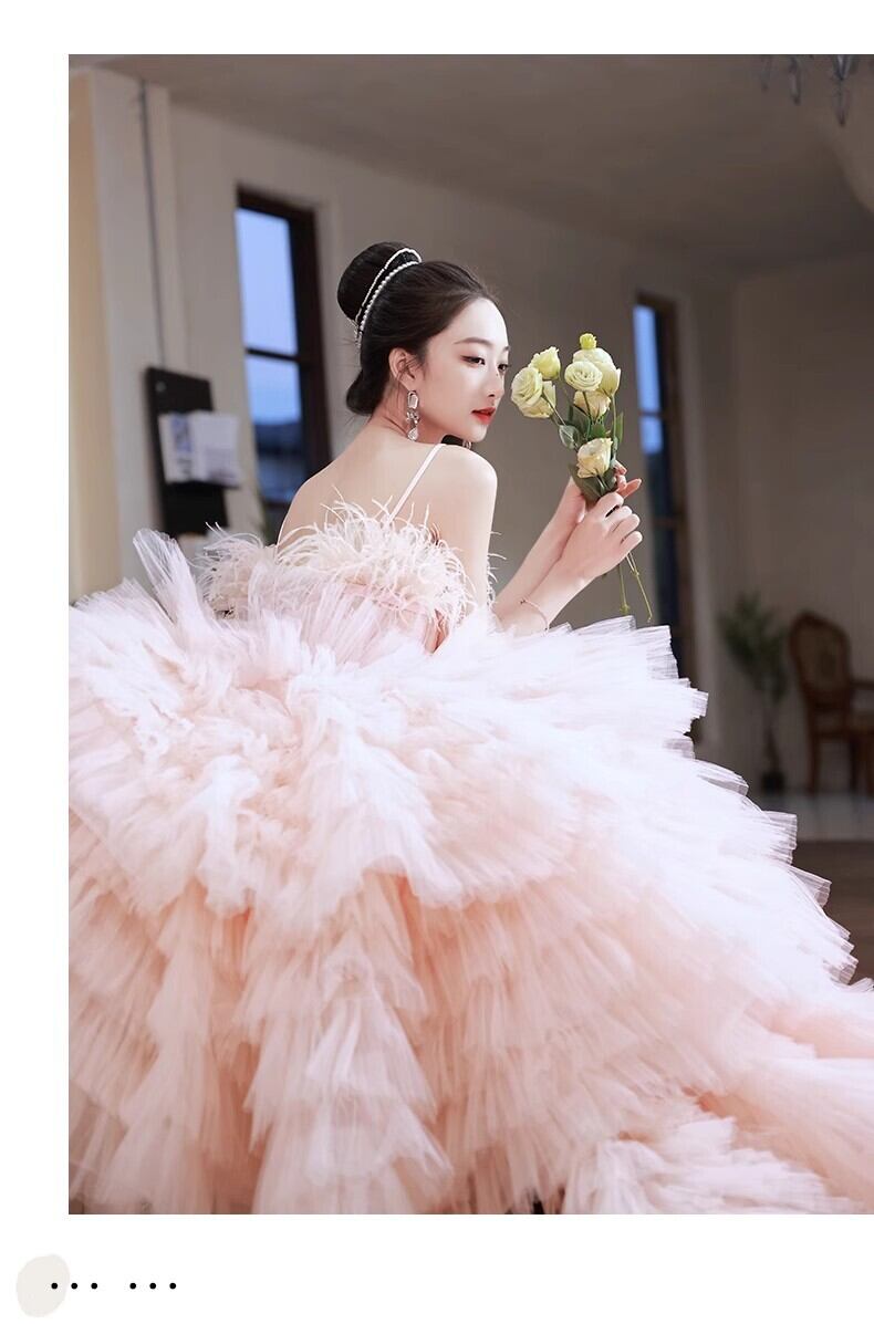ピンク カラードレス 韓国風ドレス チュールドレス もこもこフリルドレス ボリューミー 前撮り