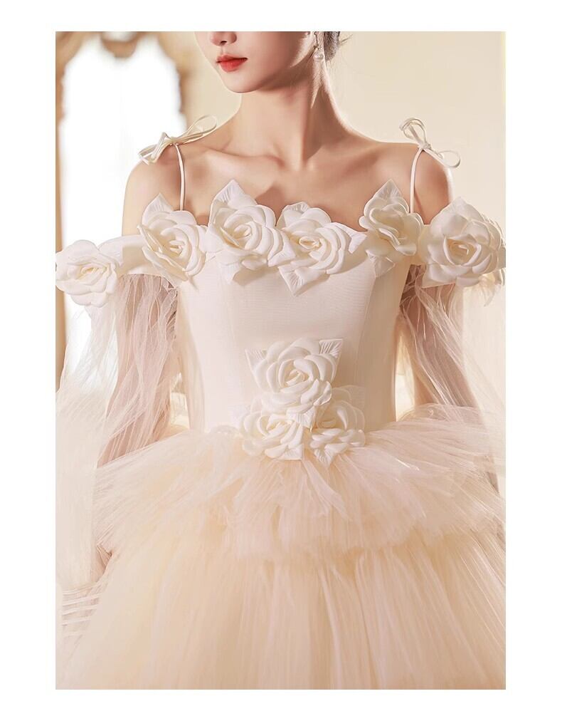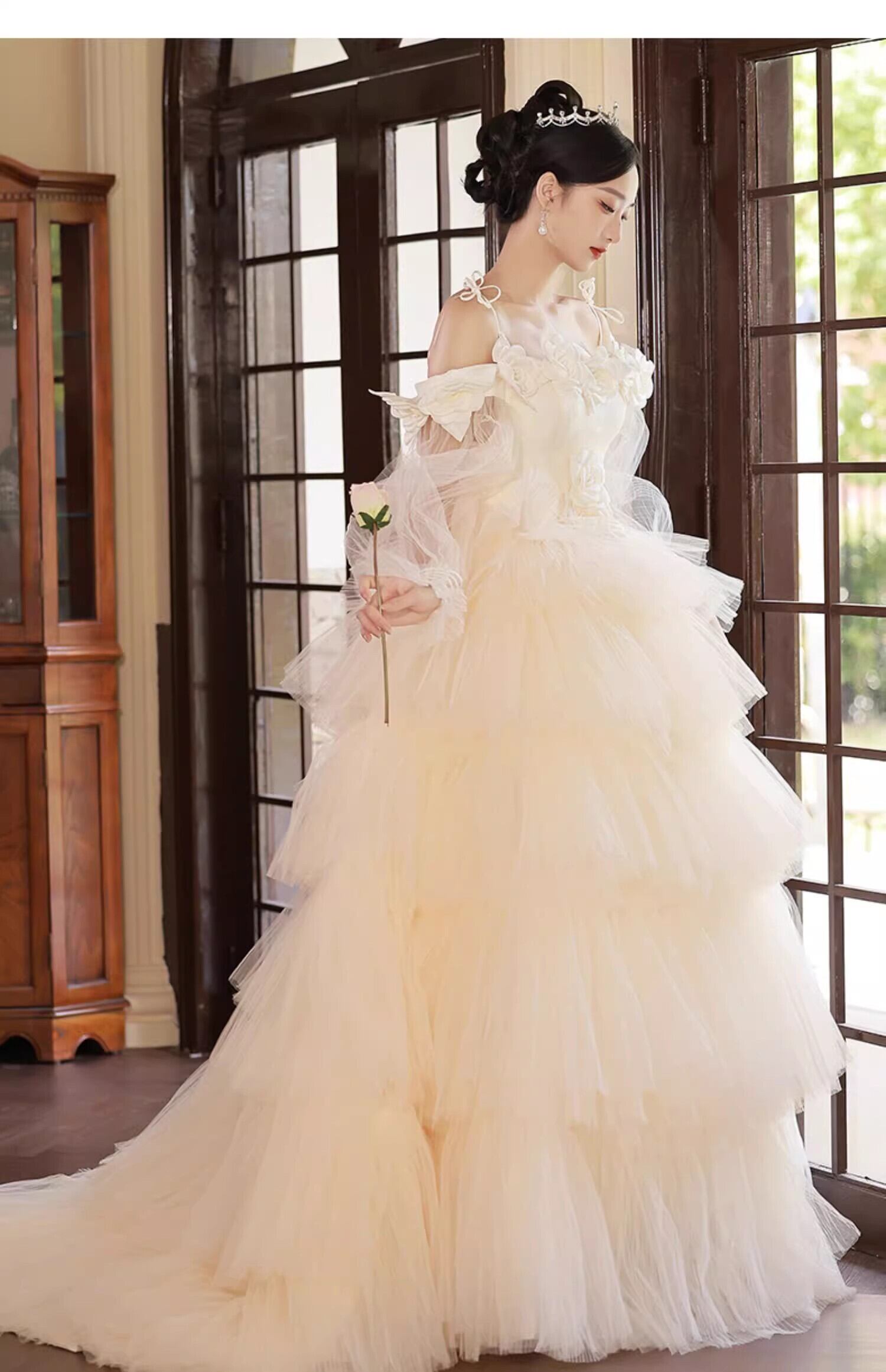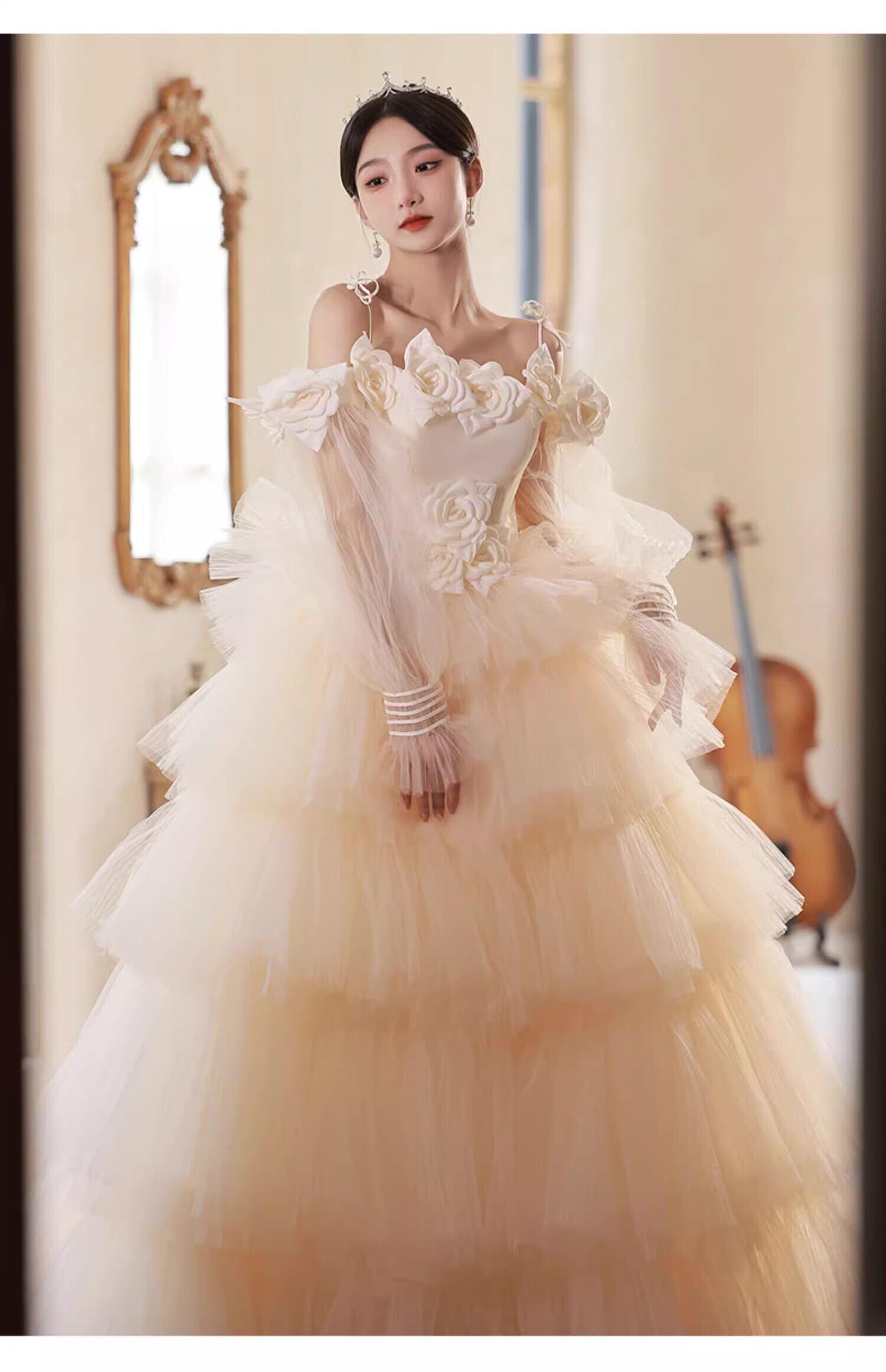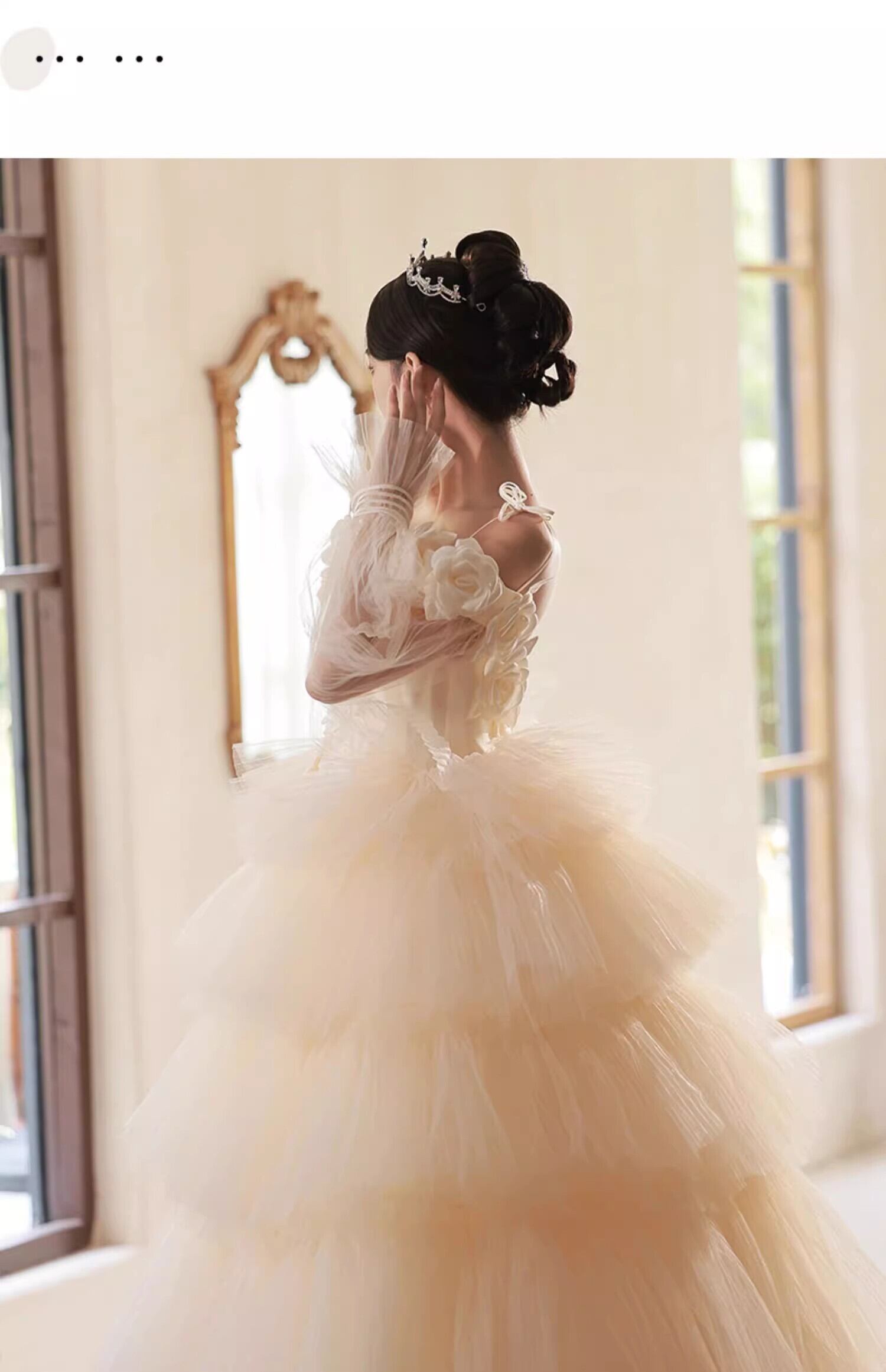 パステルイエローカラードレス 韓国風ドレス チュールドレス もこもこフリルドレス ボリューミー 前撮り