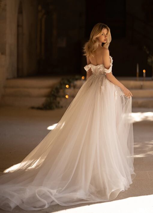 美品!Aラインドレス ウエディングドレス 3D立体レース刺繍 3Dアップリケ パーティードレス 優雅なシルエット ソフトチュール キラキラビジューレース | David1021k Dress(ダヴィドレス)