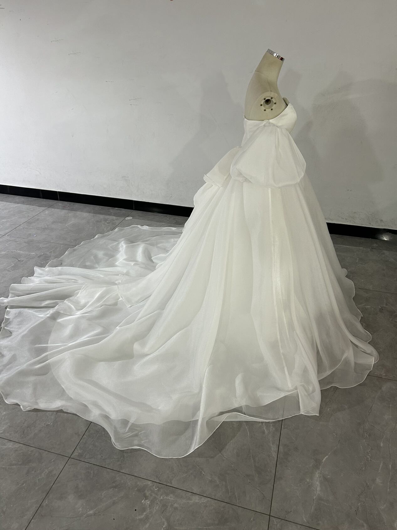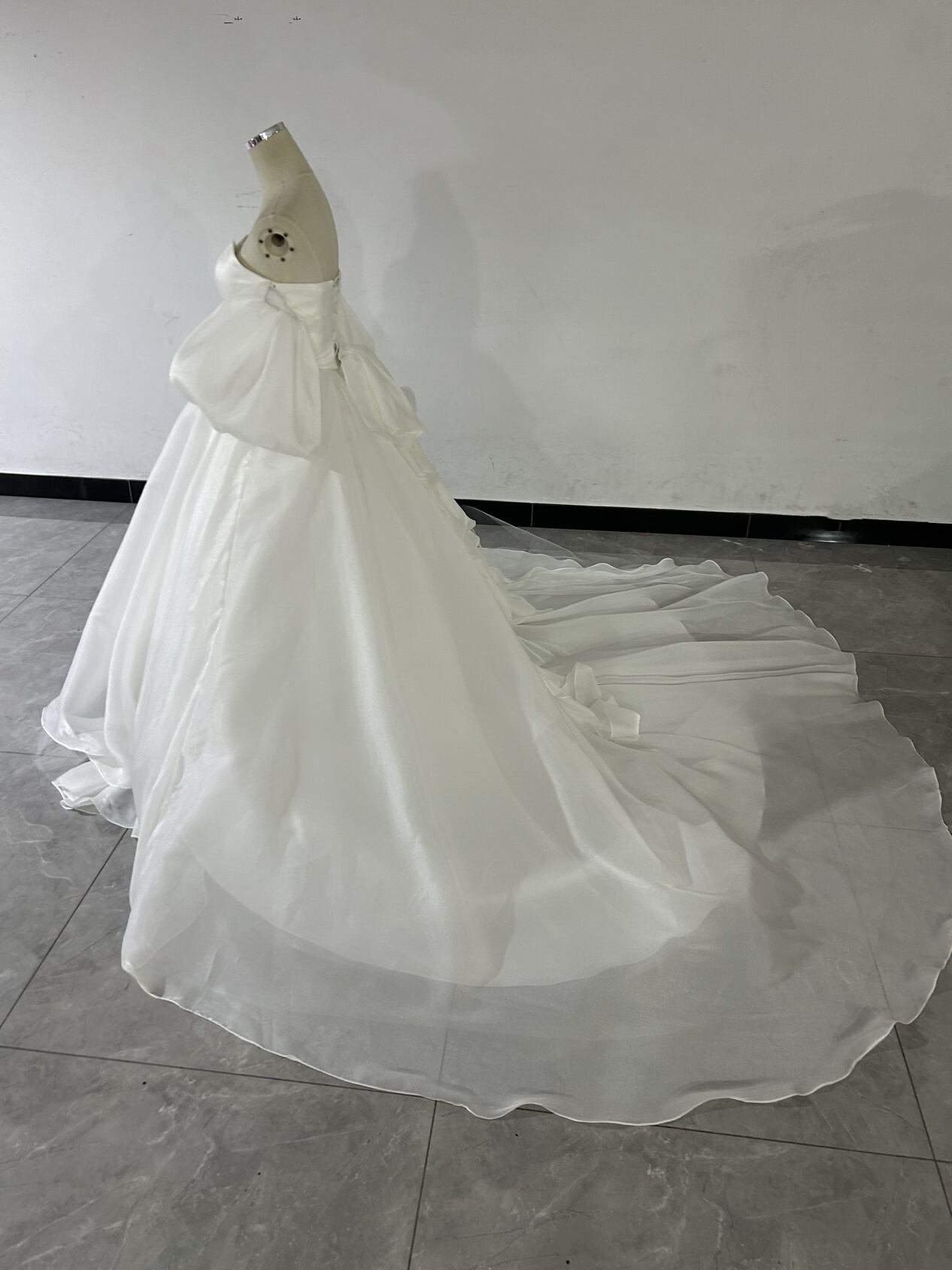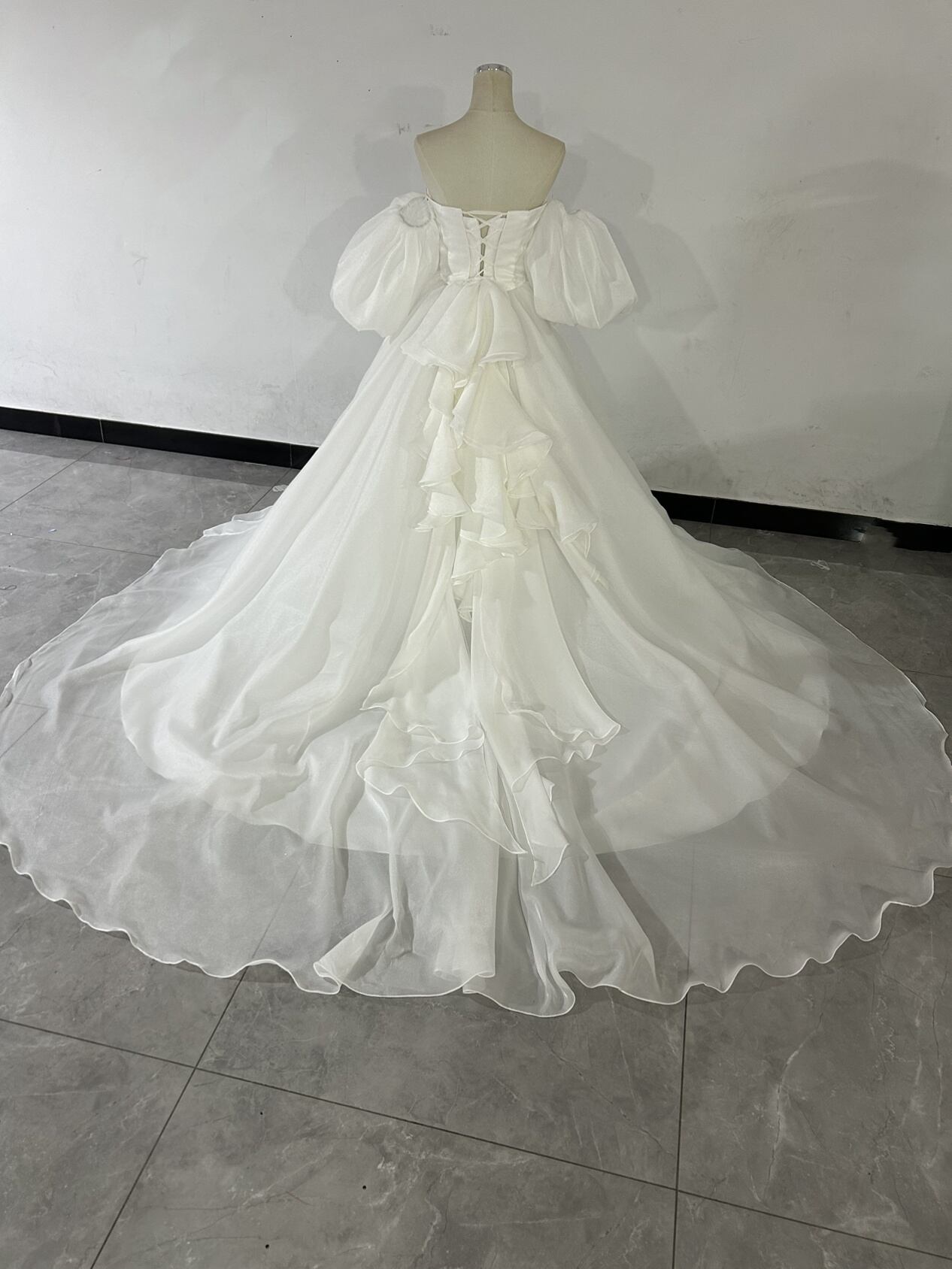 美品!上質 扬州纱 ウエディングドレス パフスリーブ ロングトレーン /挙式/前撮り/花嫁/結婚式/披露宴