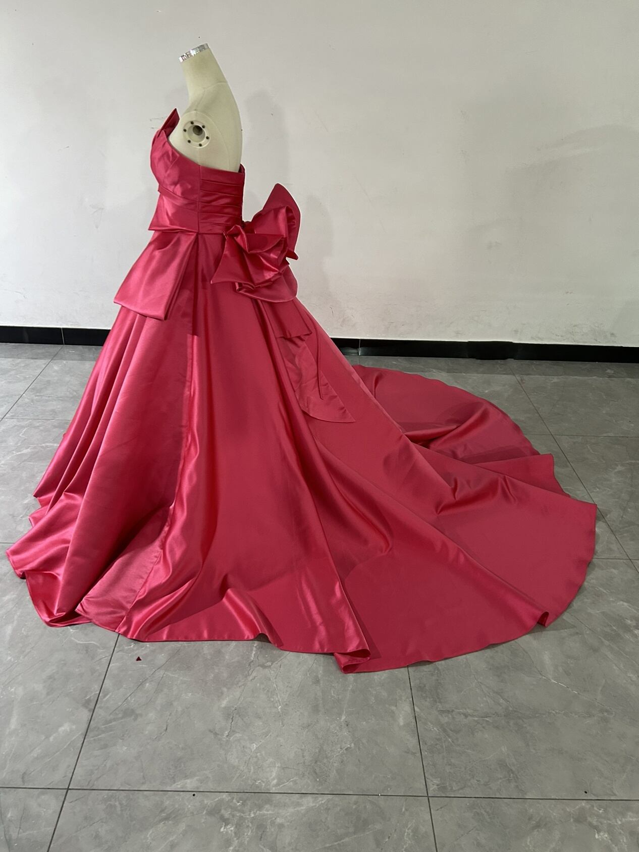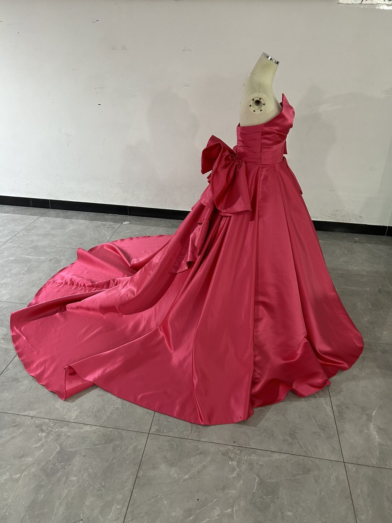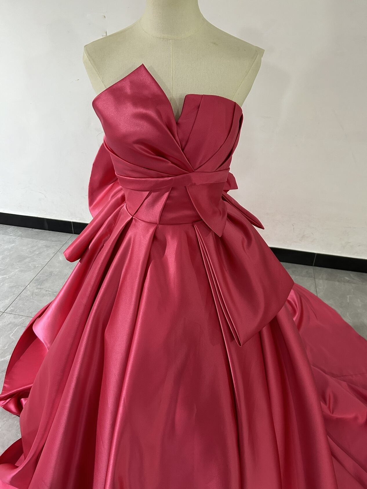人気上昇!高級 ビビッドピンクミカドサテン カラードレス ふっくら柔らかなバックリボン