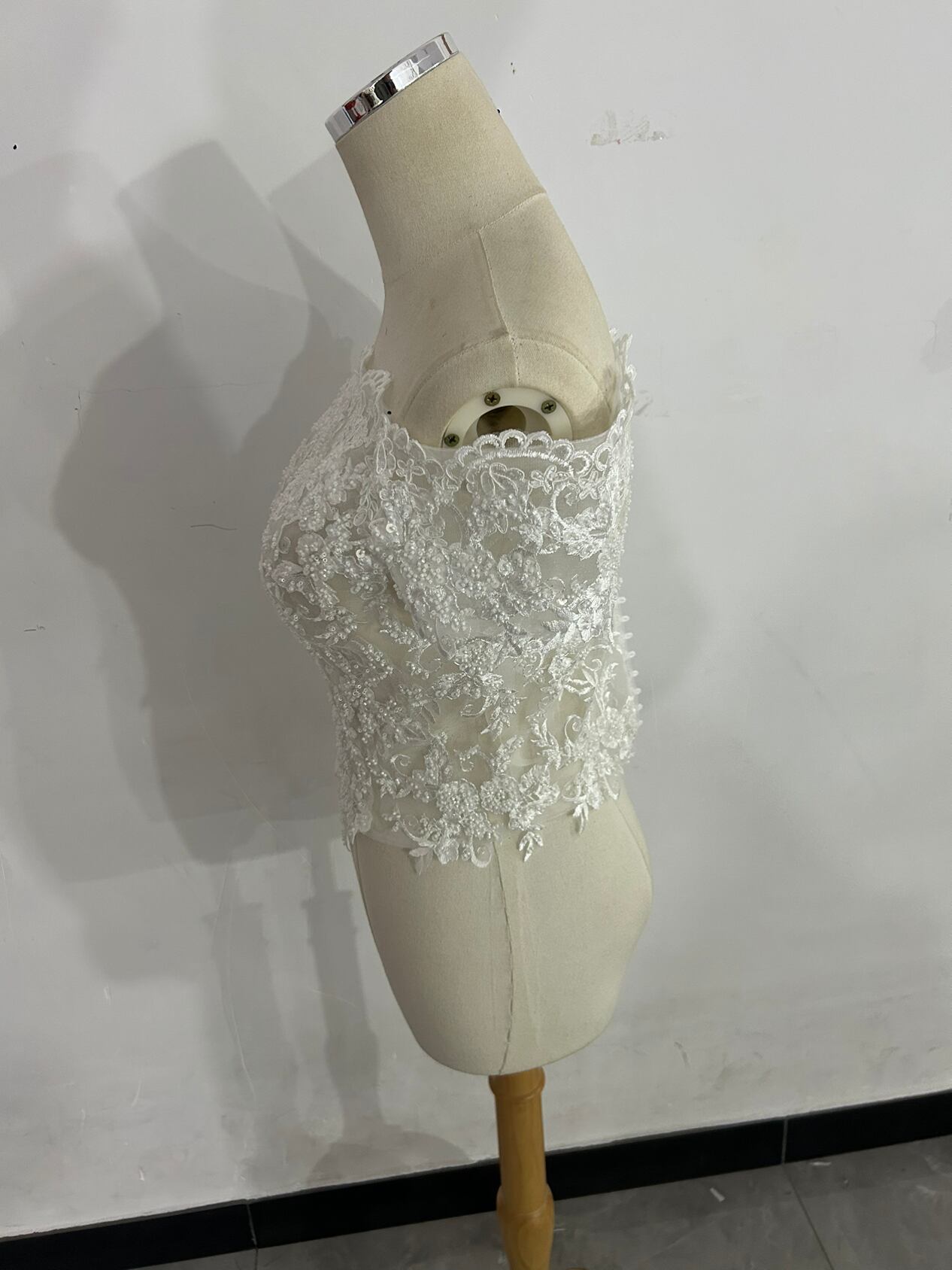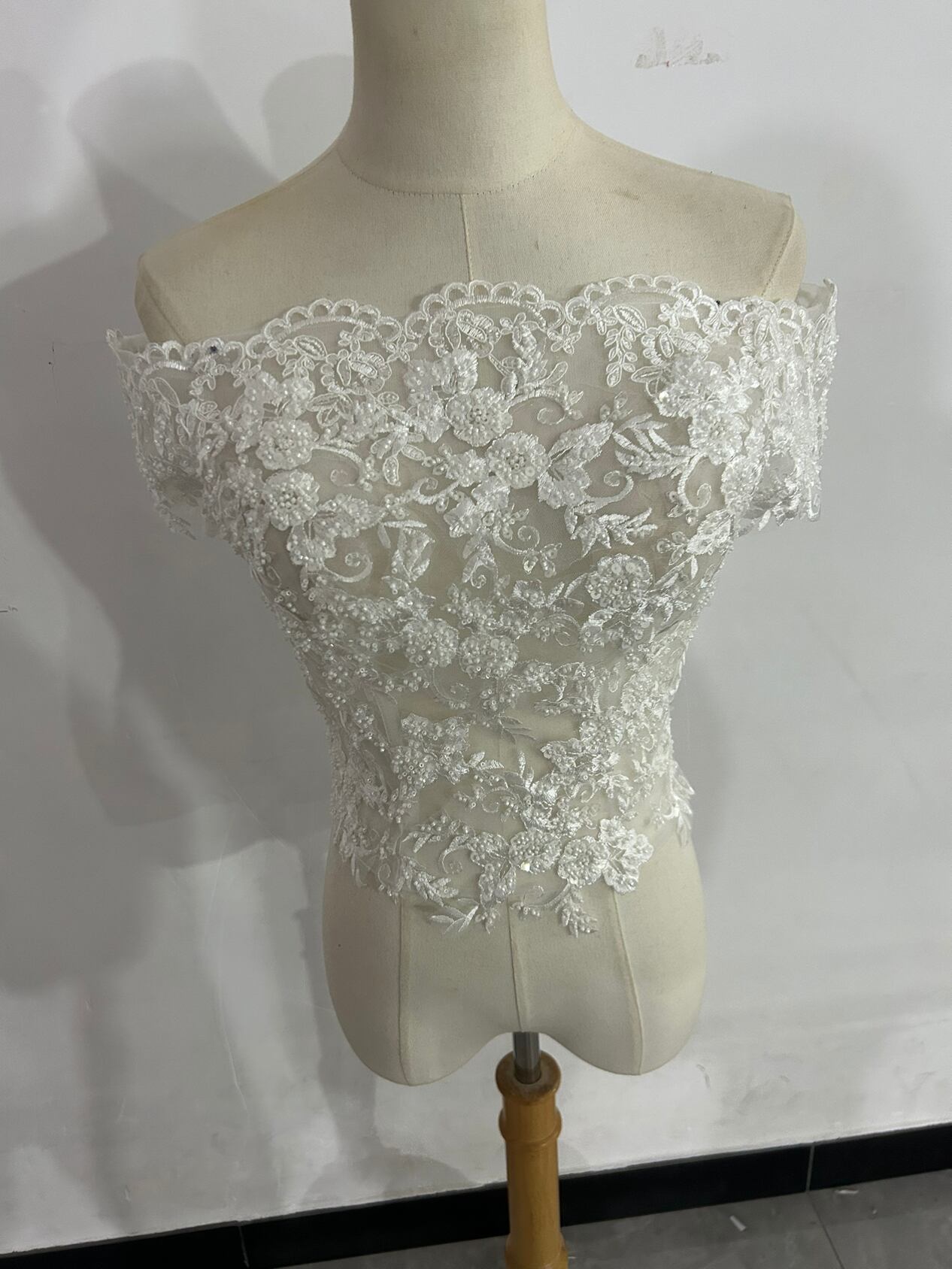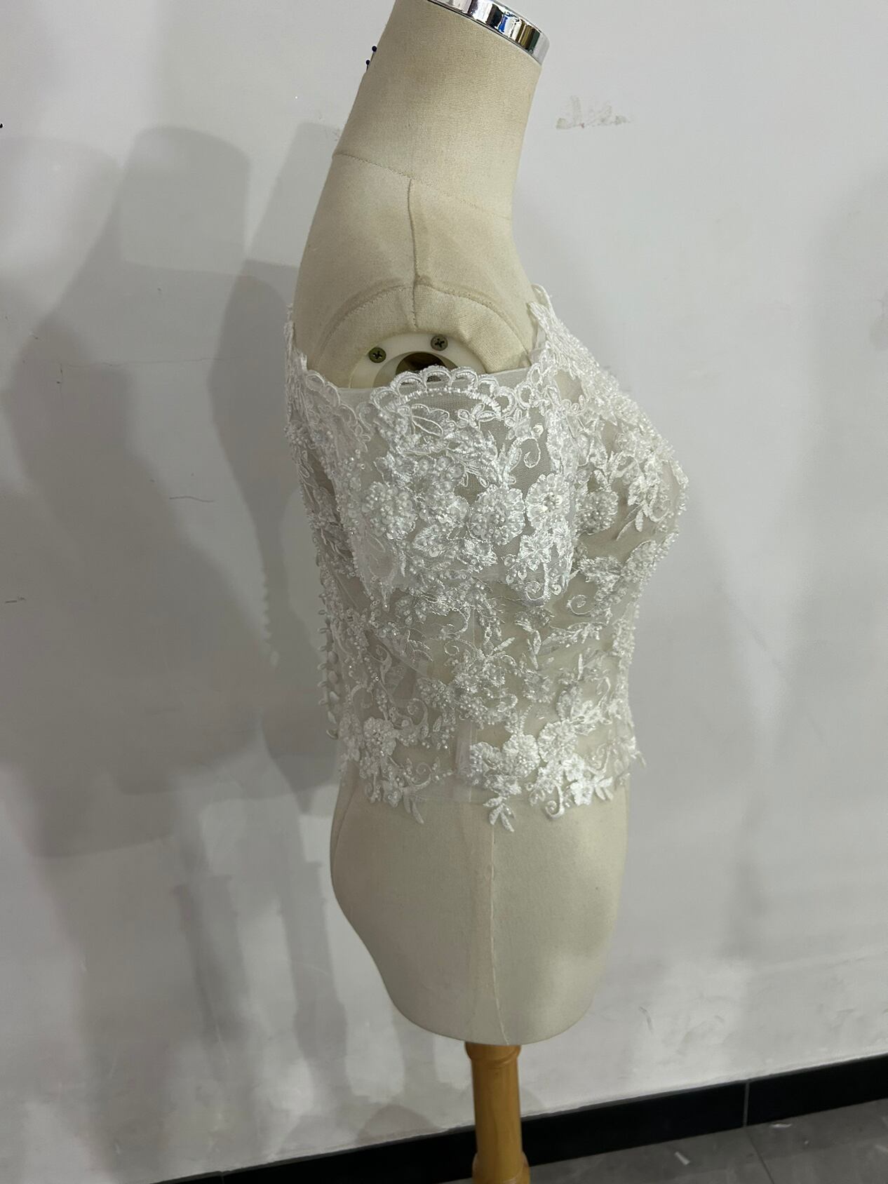 美品!ウエディングドレス ボレロ オフショル キラキラスパンコール 総レース くるみボタン ビジュートップス