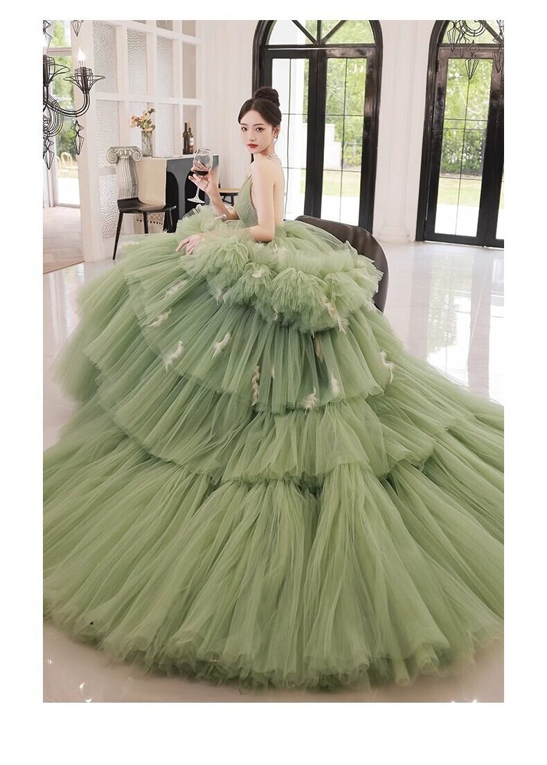 美品!グリーンパープル もこもこカラードレス ティアードドレス ナイトドレス ふわふわボリュームドレス パーティードレス プリーツドレス