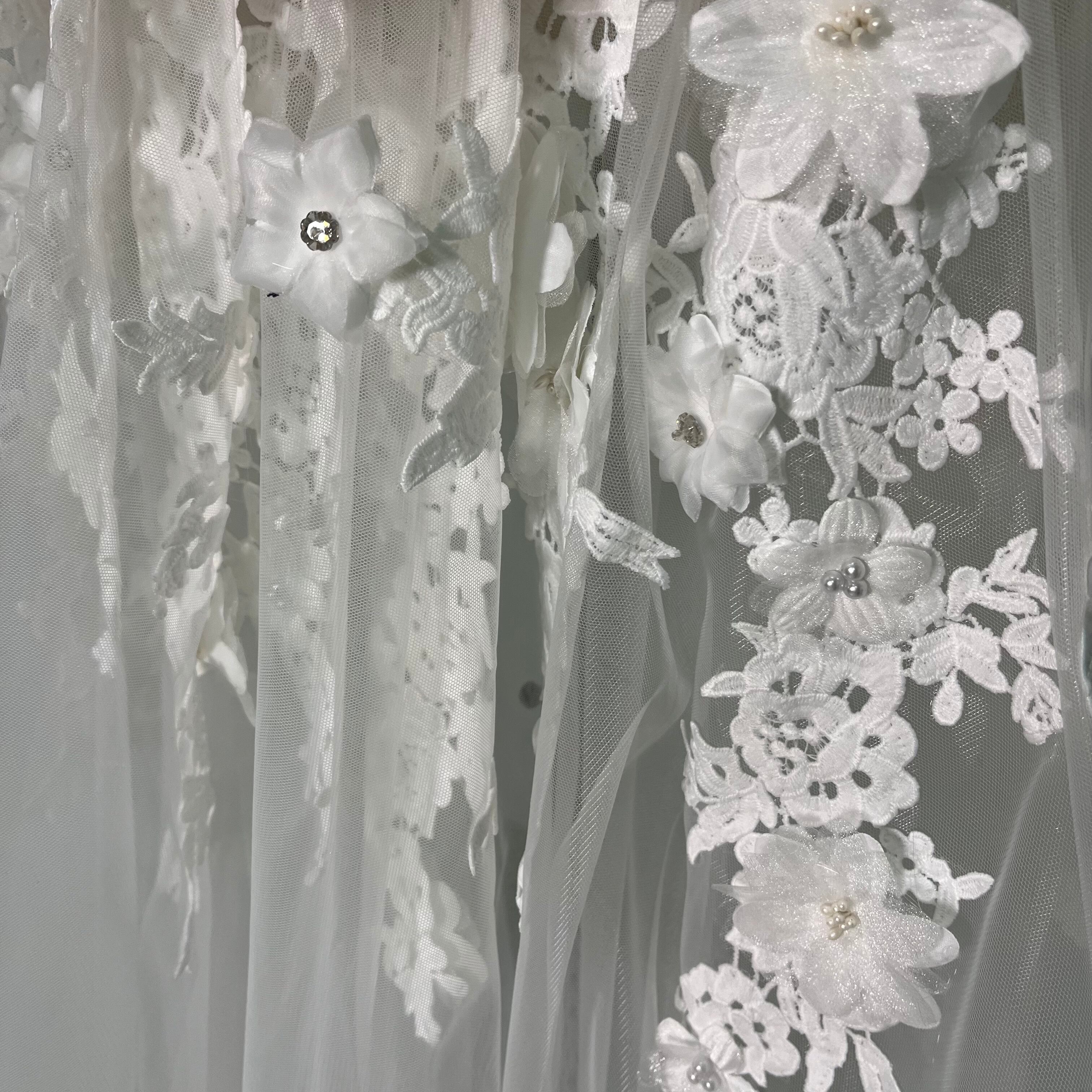 ボレロ オフショルノースリーブ 3D立体レース刺繍 くるみボタン ビジュートップス+3D立体レース刺繍 オーバースカート