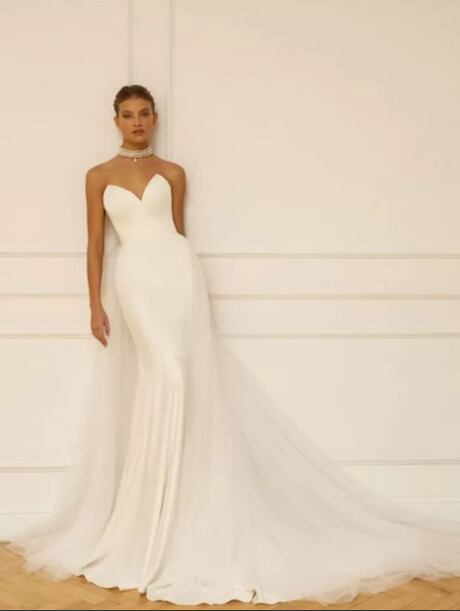 美品!女性らしいフランス風ウエディングドレス ビスチェスタイル ロングトレーン 取り外しトレーン マーメードスタイル 美しいボディライン パーティードレス | David1021k Dress(ダヴィドレス)