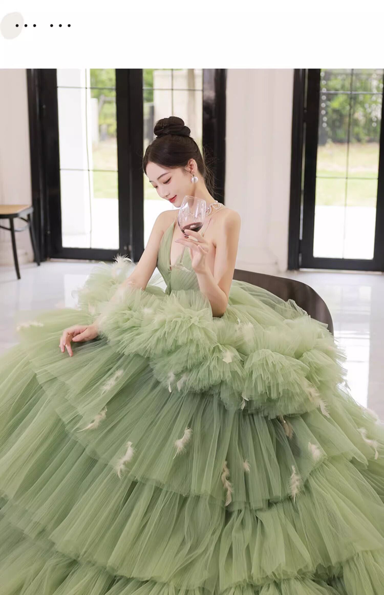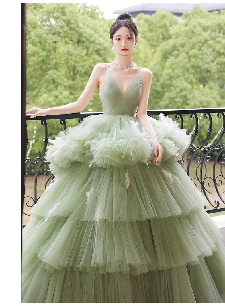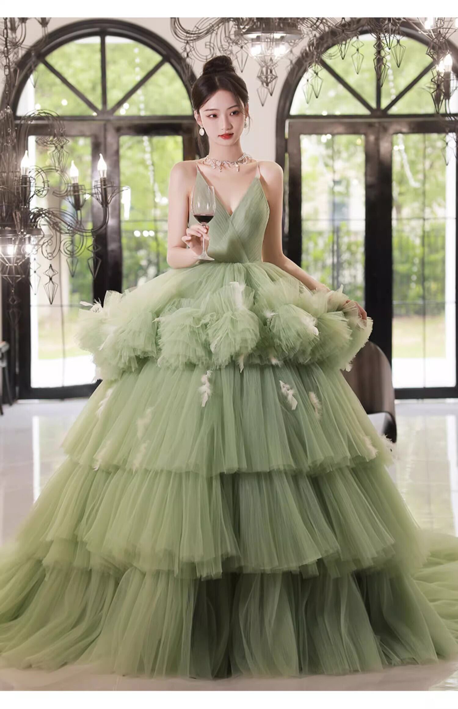キャミソール グリーン カラードレス 韓国風ドレス チュールドレス もこもこフリルドレス ボリューミー 前撮り