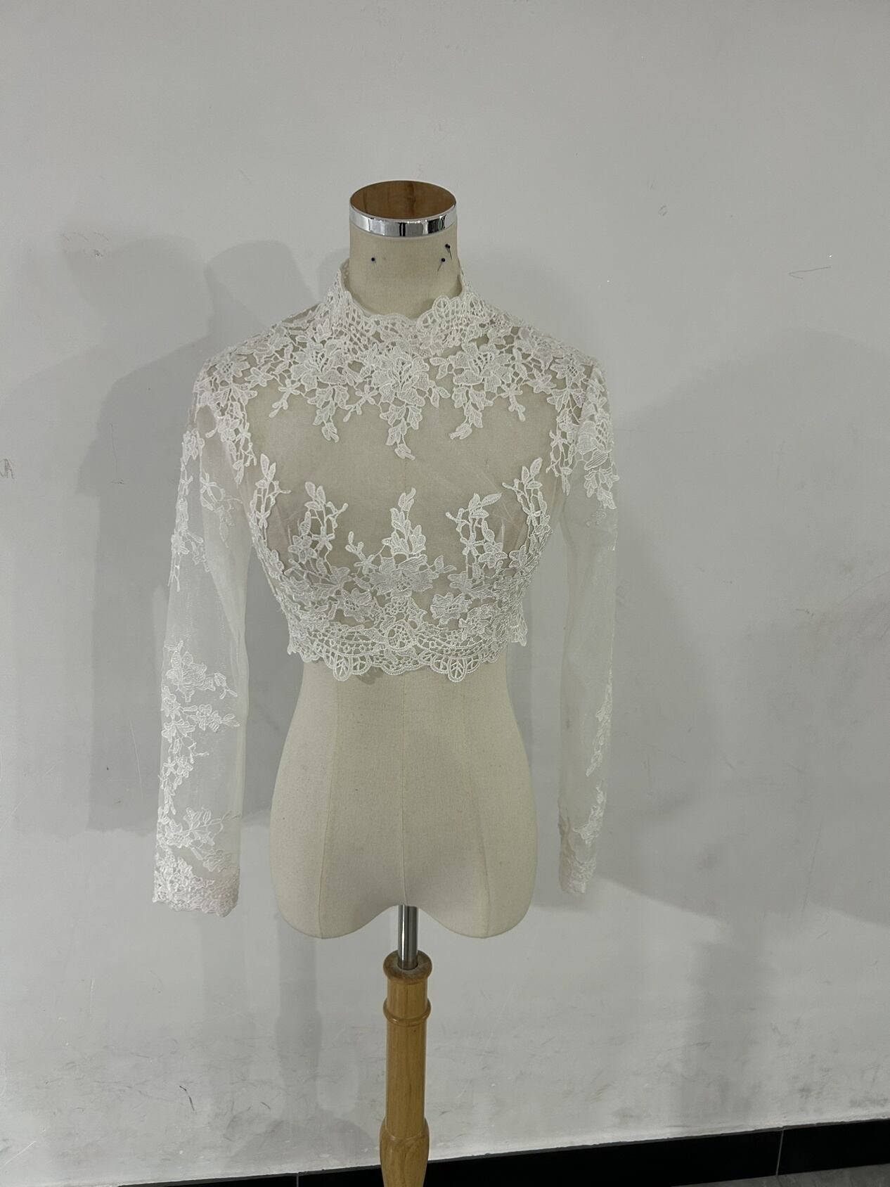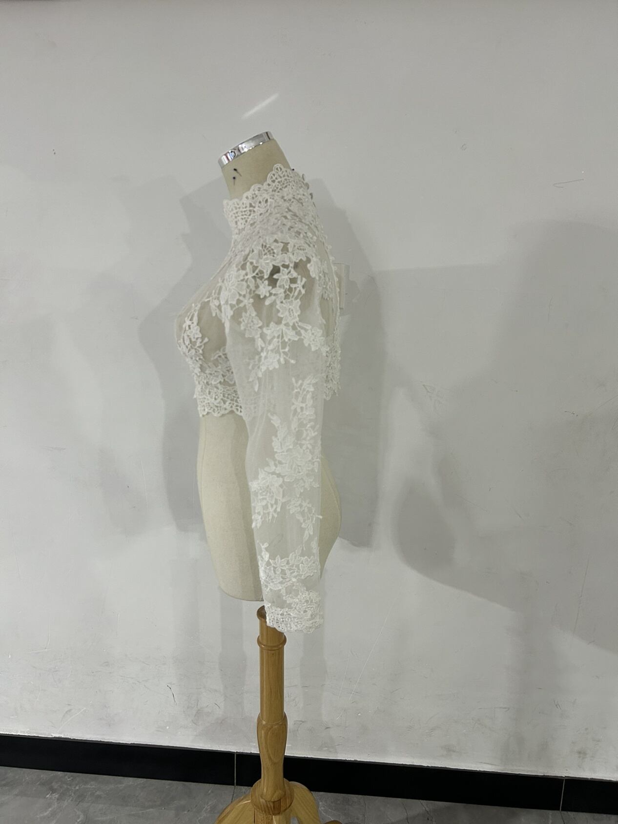 大人気上昇ウエディングドレス 可憐な花刺繍のトップス ボレロ ハイネック 長袖 ブラウス