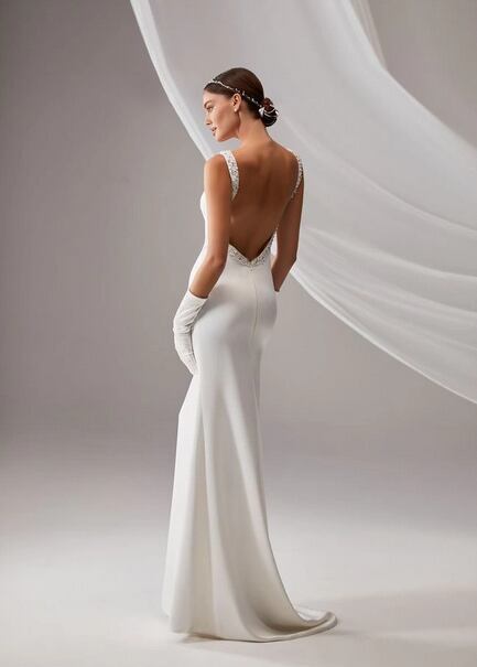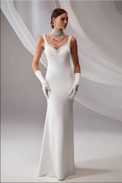 美品!キャミソール ディープVネック ウエディングドレス ロンググローブ マーメイドスタイル ラグジュアリーフェミニン マット生地 女性らしいパーティードレス | David1021k Dress(ダヴィドレス)