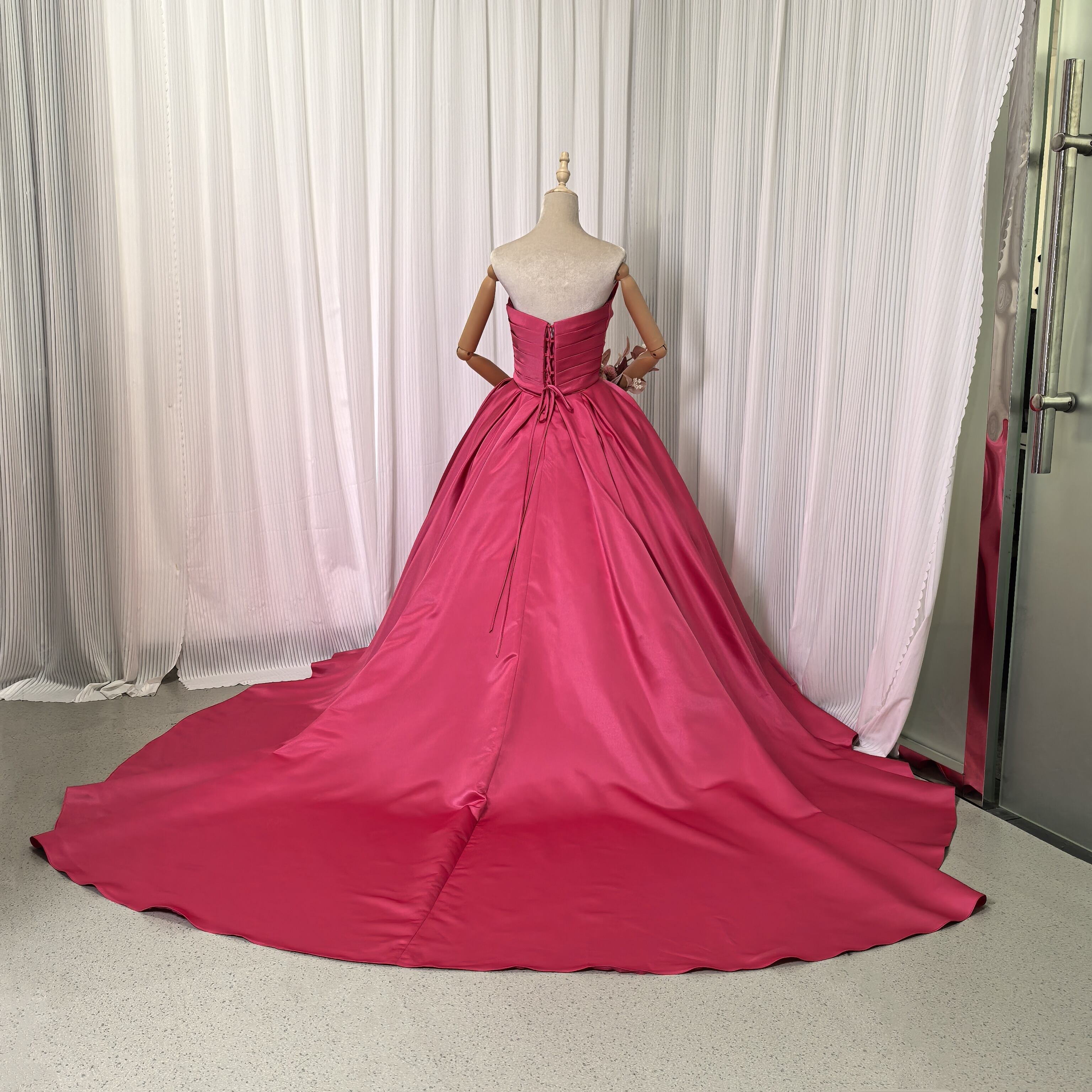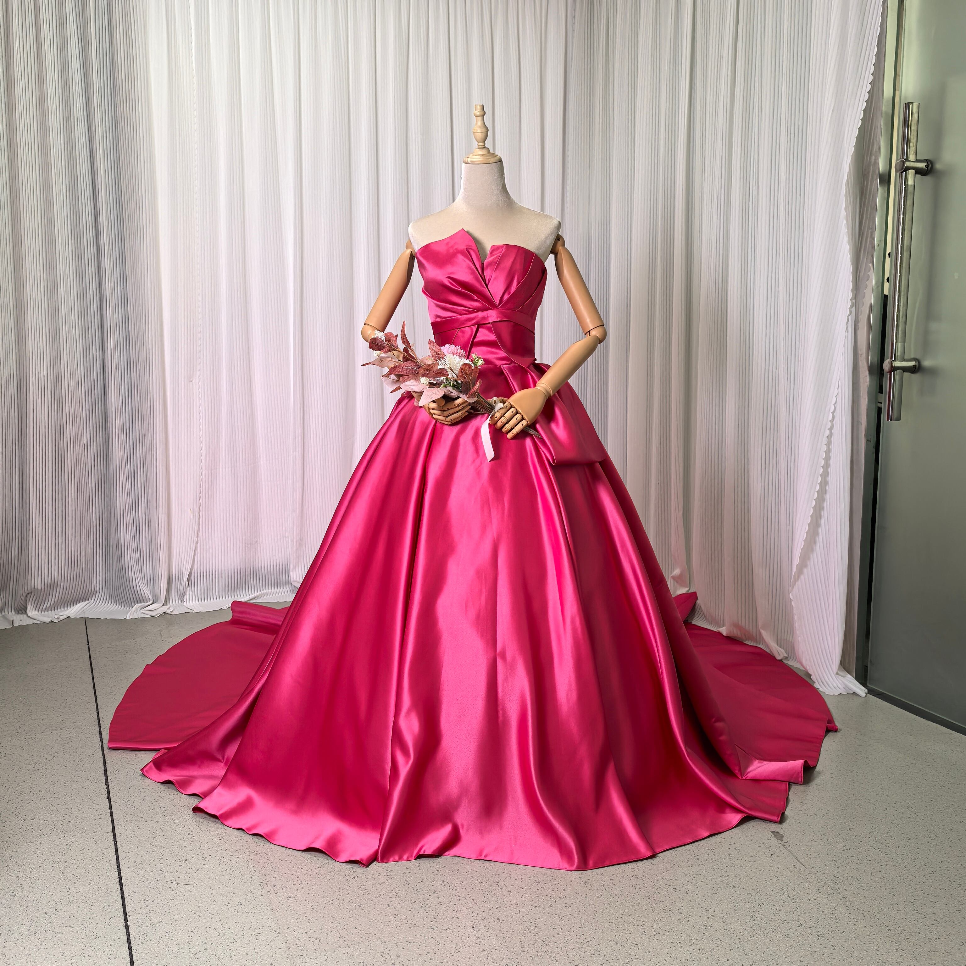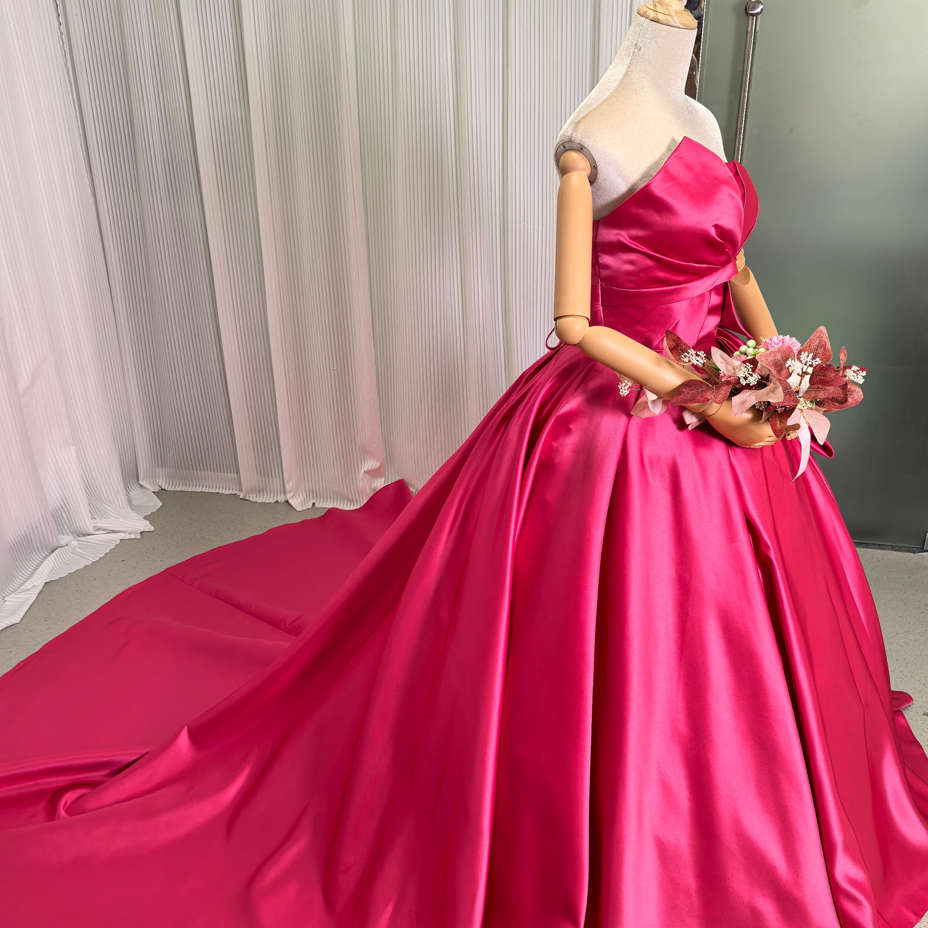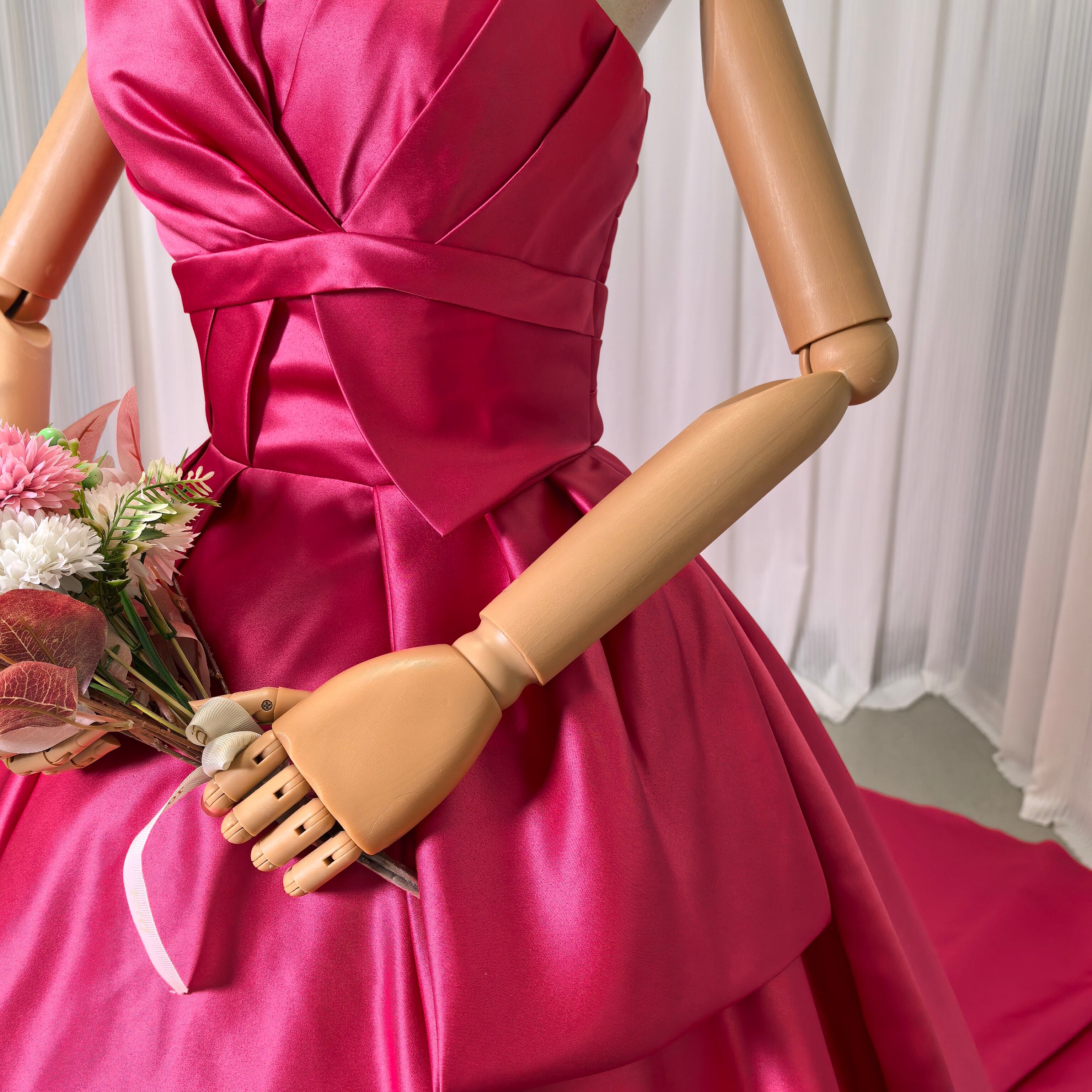 人気上昇!高級 ビビッドピンクミカドサテン カラードレス 前撮り/花嫁/結婚式/