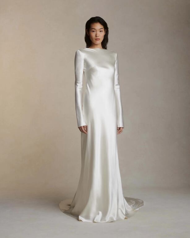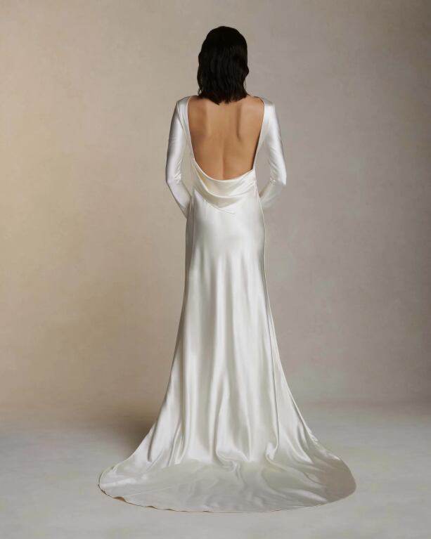 美品!イブニングドレス ロングスリーブ ウエディングドレス 背中見せ/バックレス パーティードレス マーメードスタイル ミディアムドレス