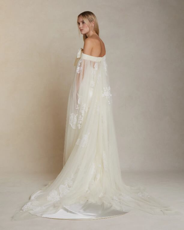美品!イブニングドレス 繊細レース マントトレーン ウエディングドレス 優雅なシルエット 美しいボディライン パーティードレス マーメードスタイル ミディアムドレス | David1021k Dress(ダヴィドレス)