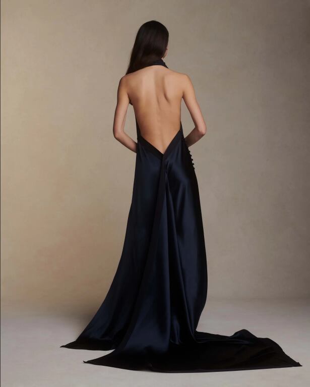 美品!ブラックカラードレス ホルターネック イブニングドレス セクシー 背中見せ/バックレス パーティードレス ミディアムドレス