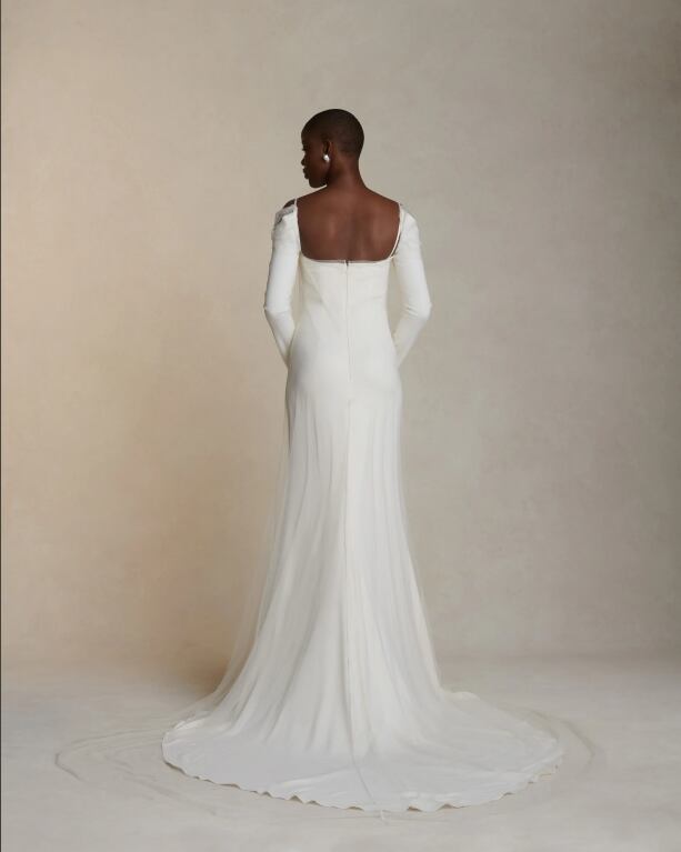 美品!キャミソール オフショルダー ロングスリーブ イブニングドレス ソフトチュール ウエディングドレス ミディアムドレス パーティードレス