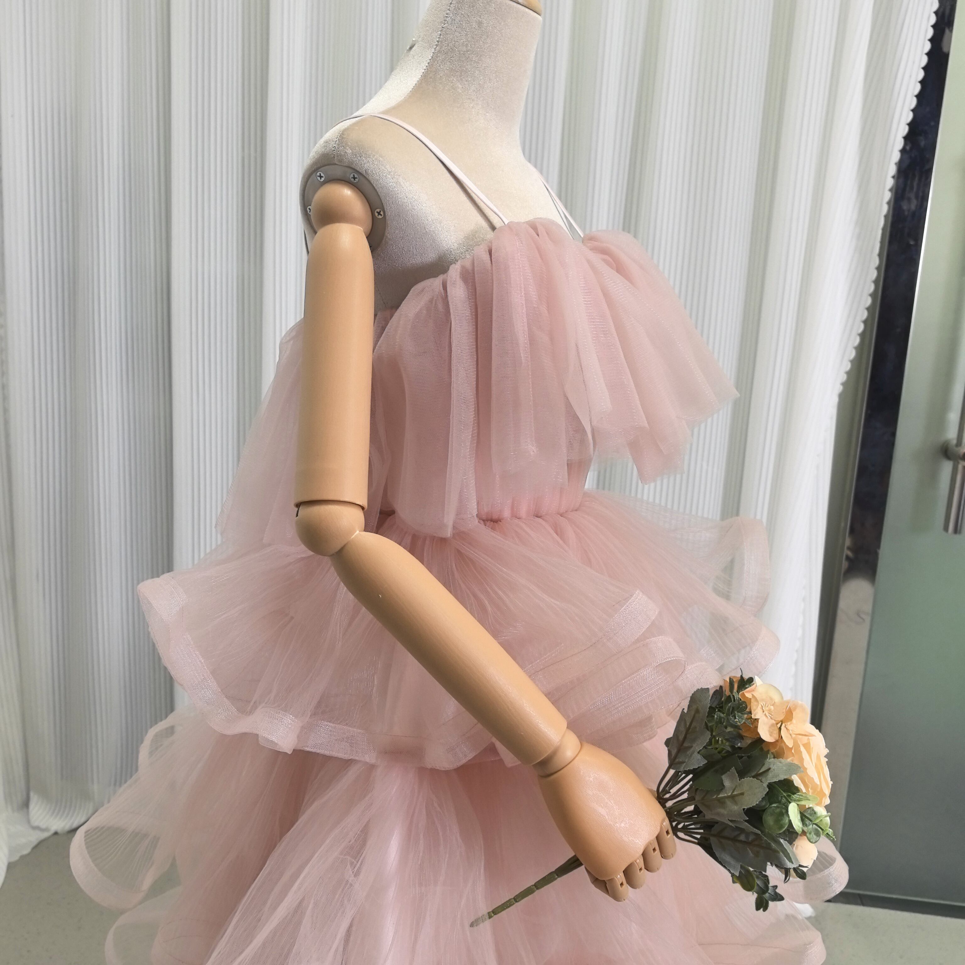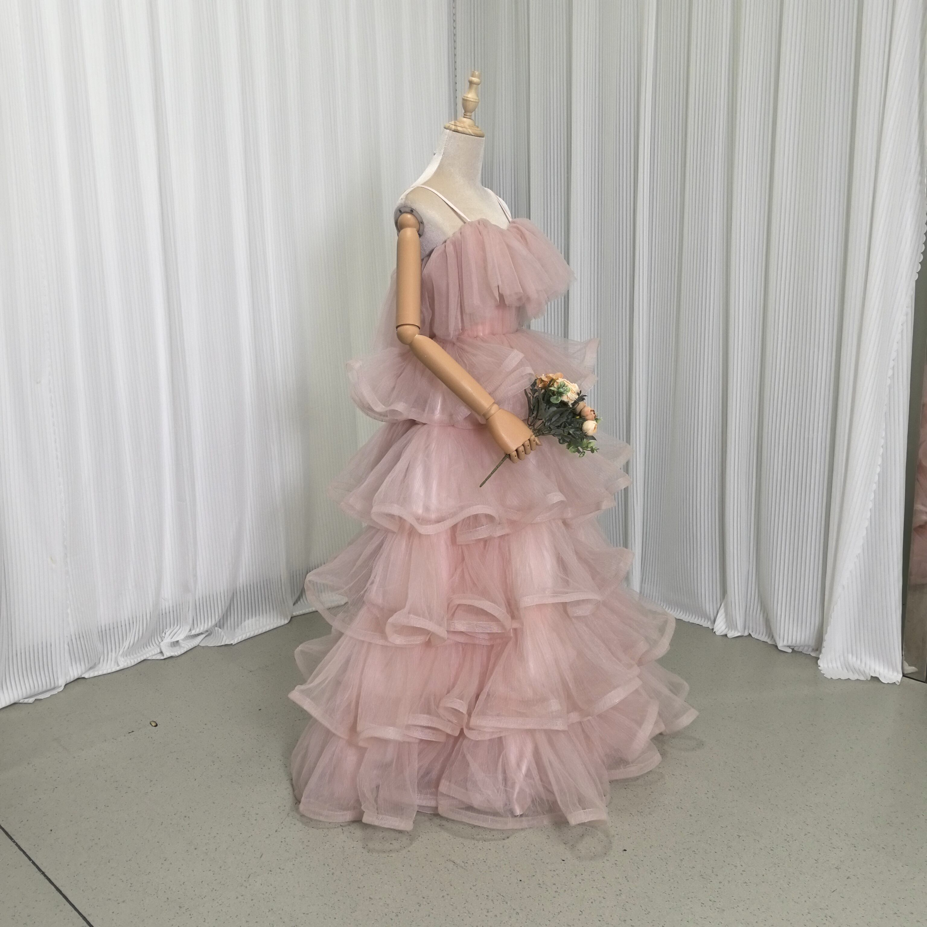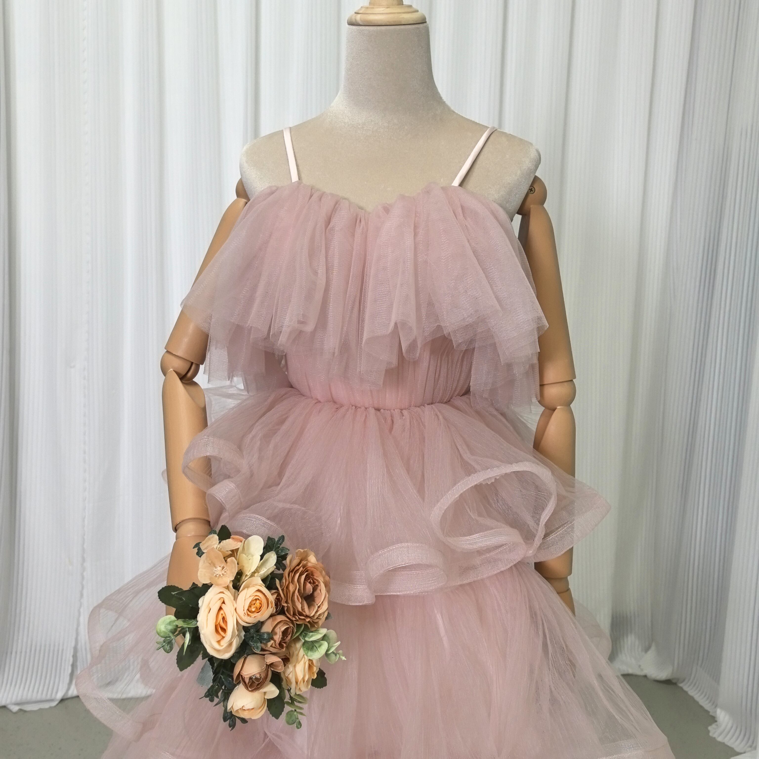 憧れのドレス ピンク キャミソール ロングドレス パーティードレス 編み上げ柔らかく重ねたチュールスカ