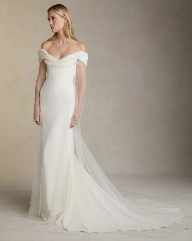 美品!オフショルダー ソフトチュール ソフトマーメイドドレス シースルーロングスリーブ ラグジュアリーフェミニン ウエディングドレス パーティードレス