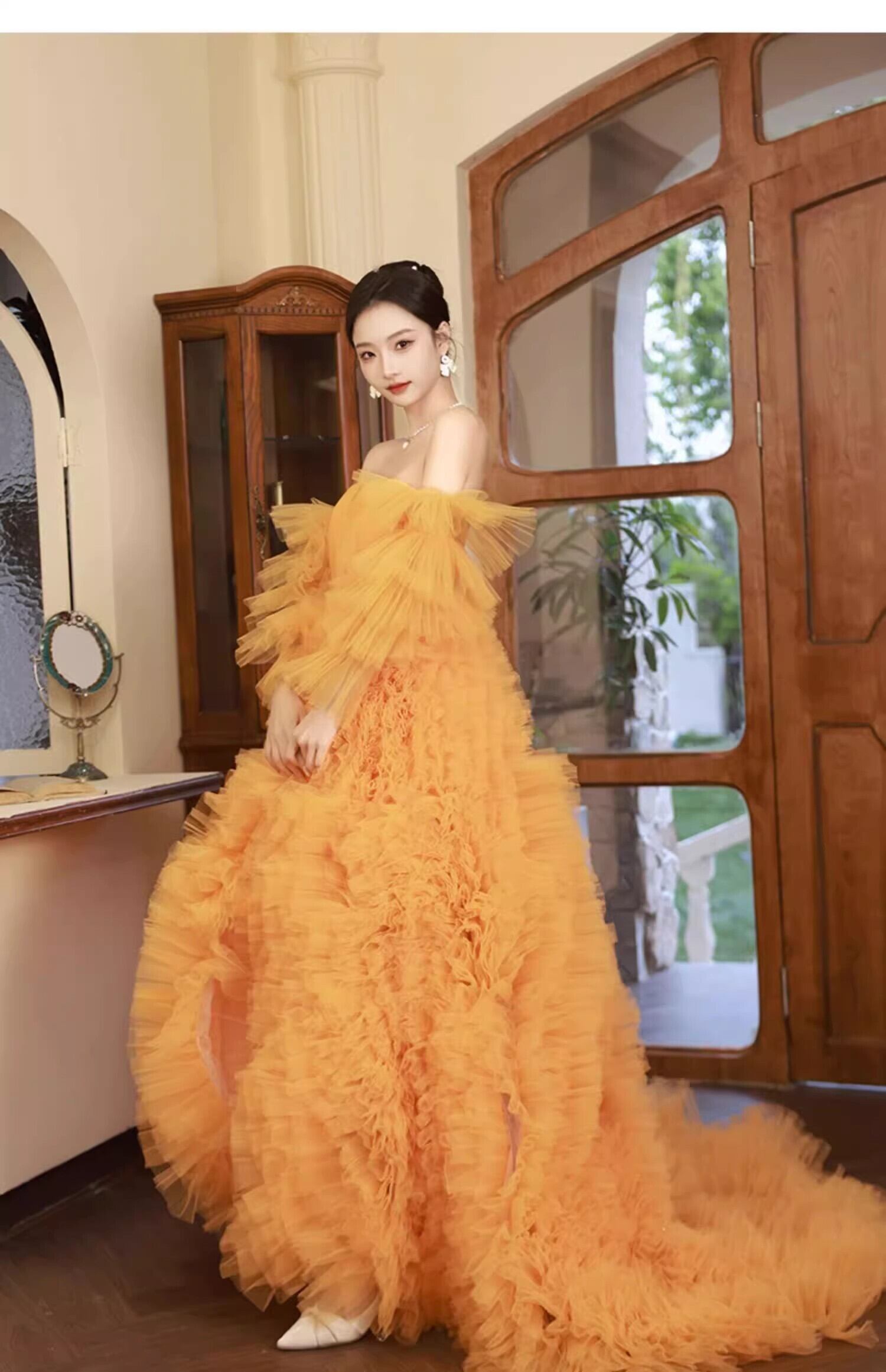 イエロー ベアトップ カラードレス チュールドレス もこもこフリルドレス ボリューミー 前撮り