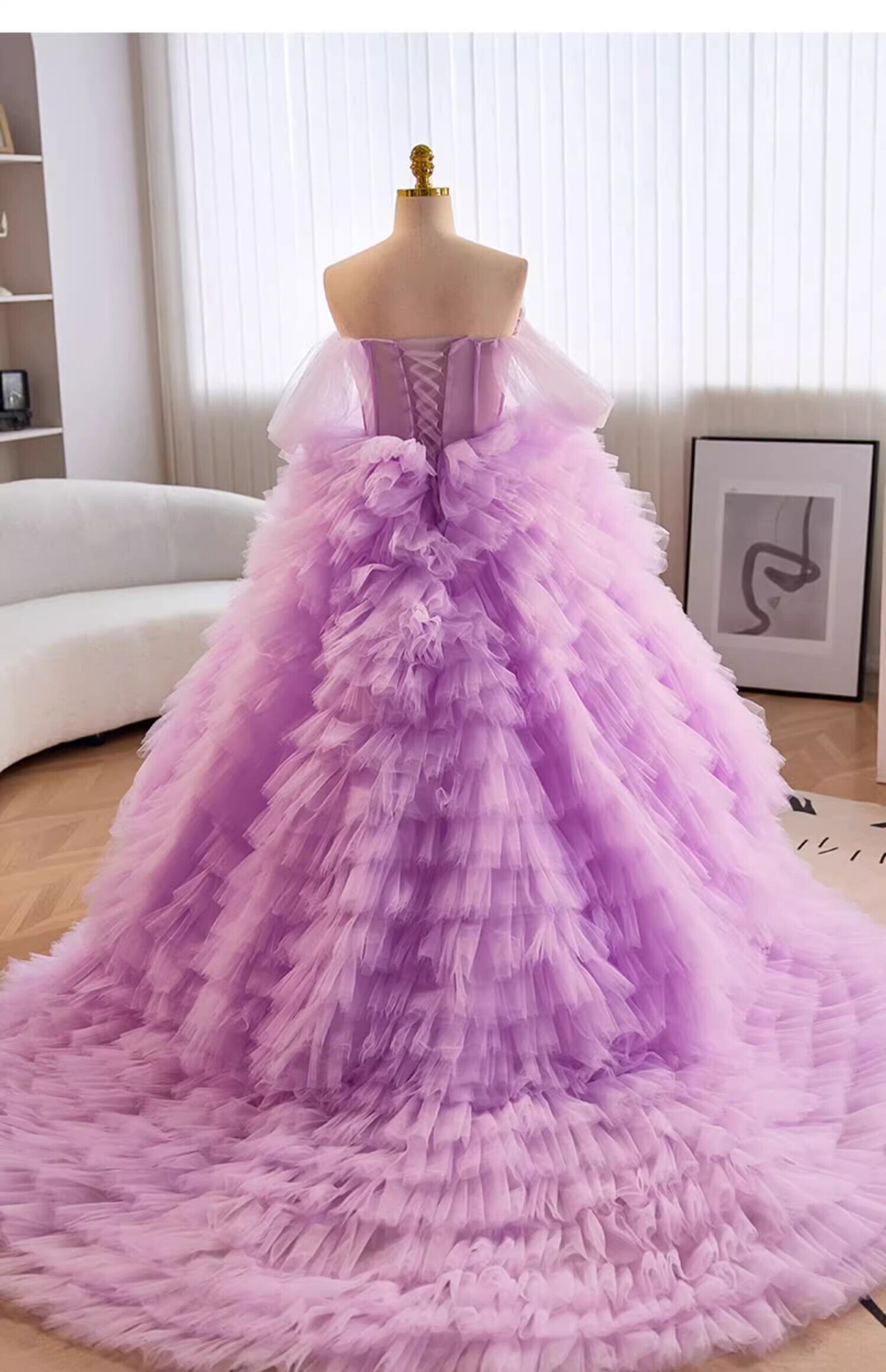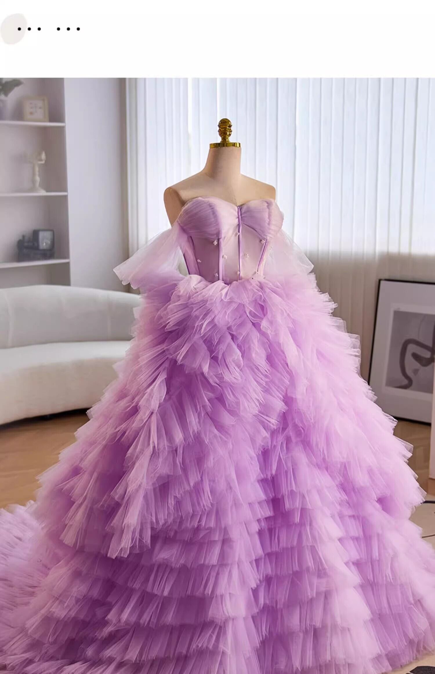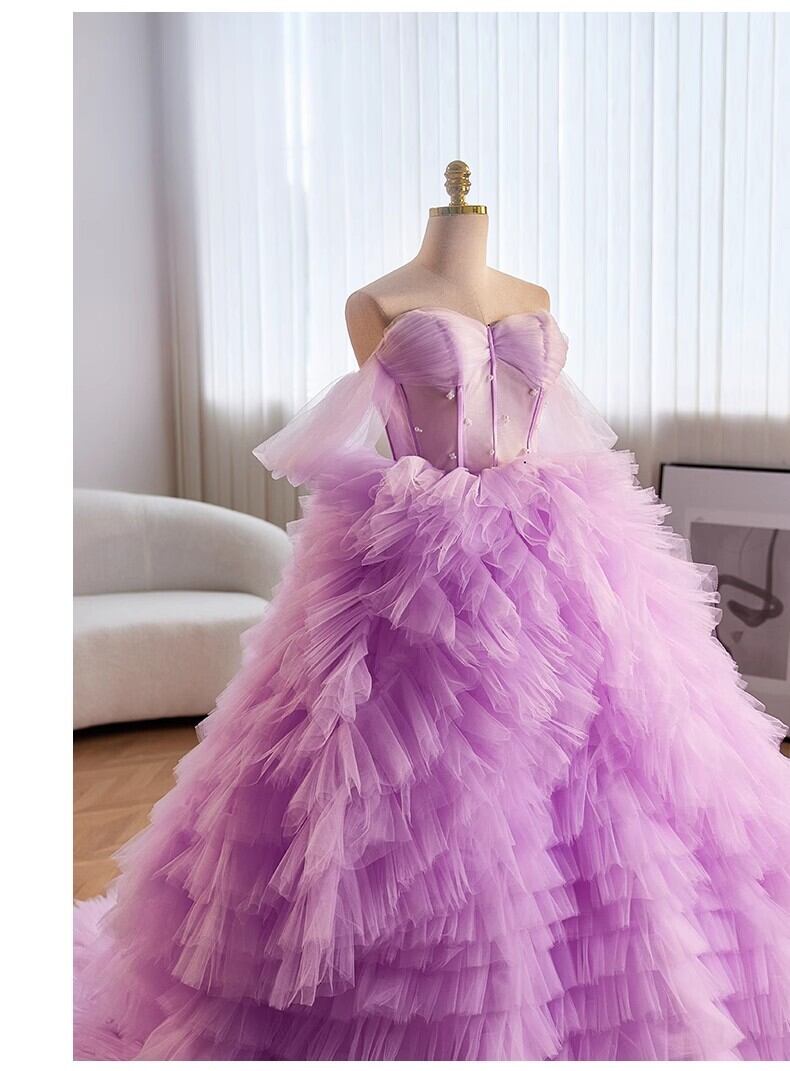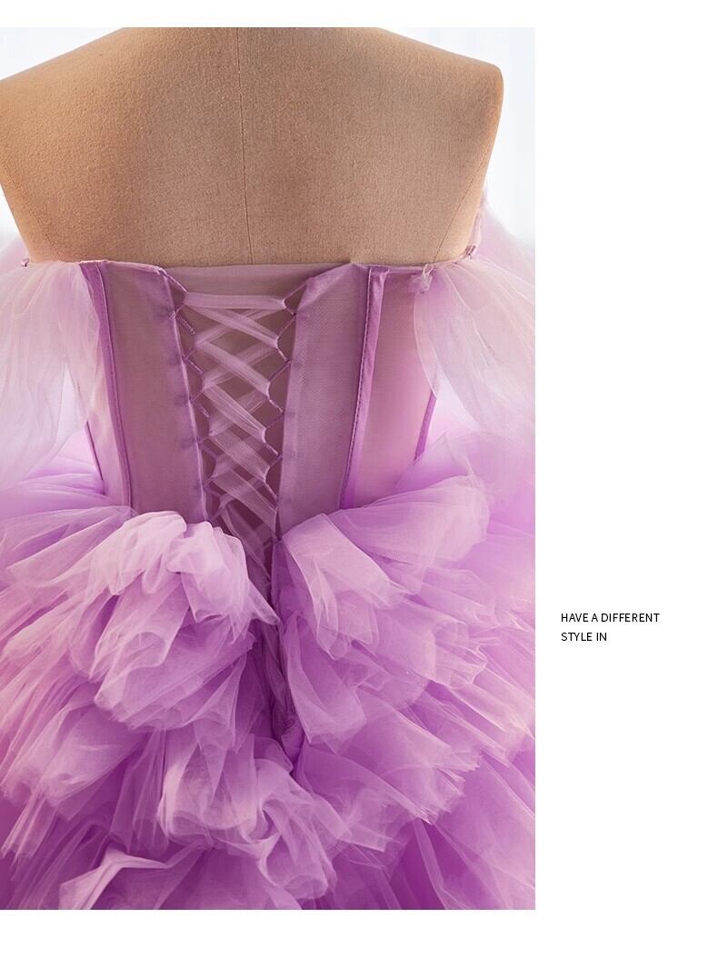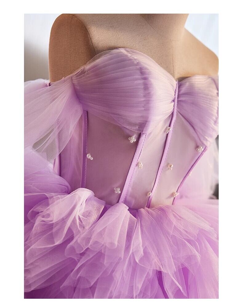 紫 ベアトップ パフスリーブ カラードレス チュールドレス もこもこフリルドレス ボリューミー 前撮り