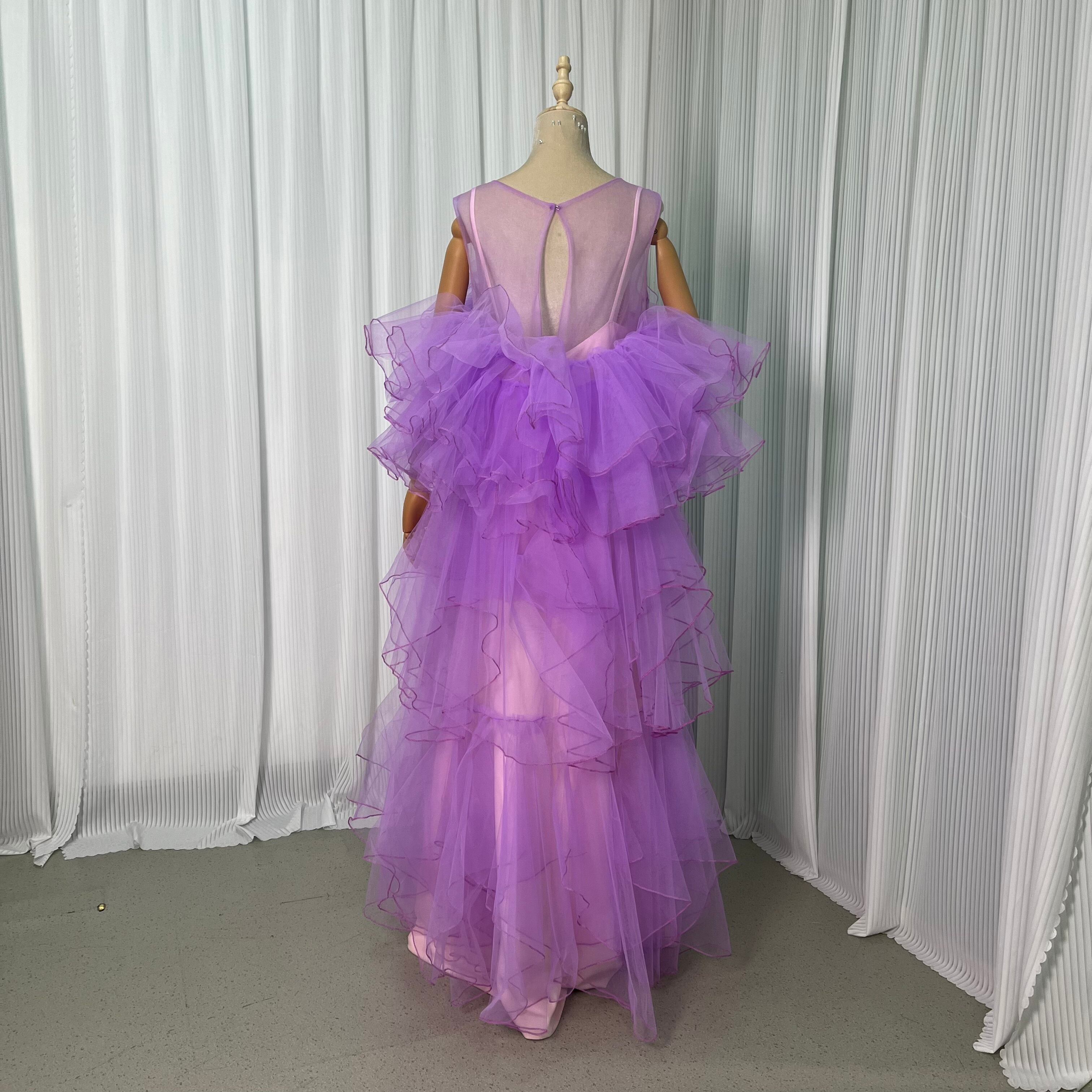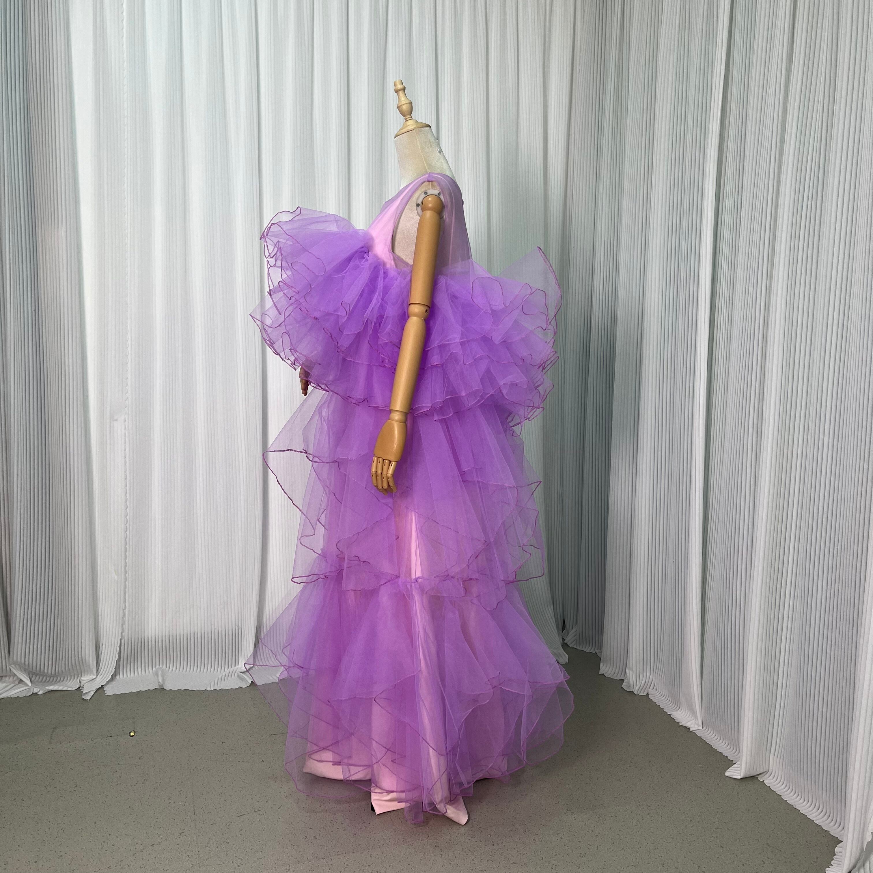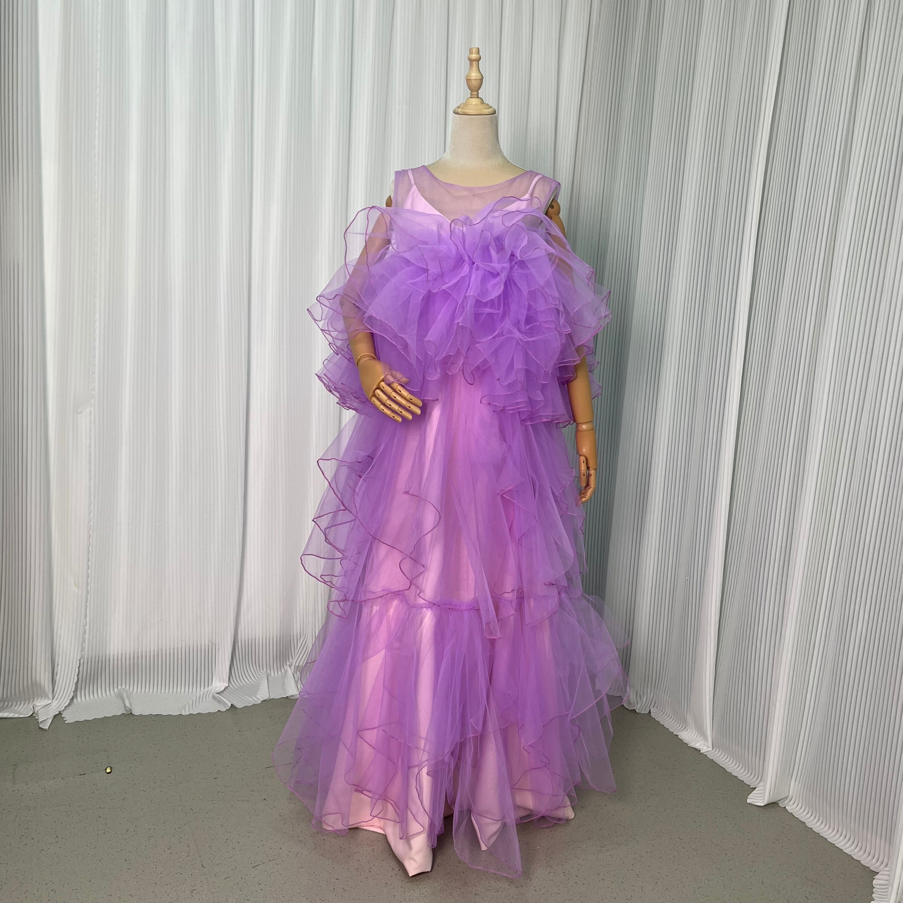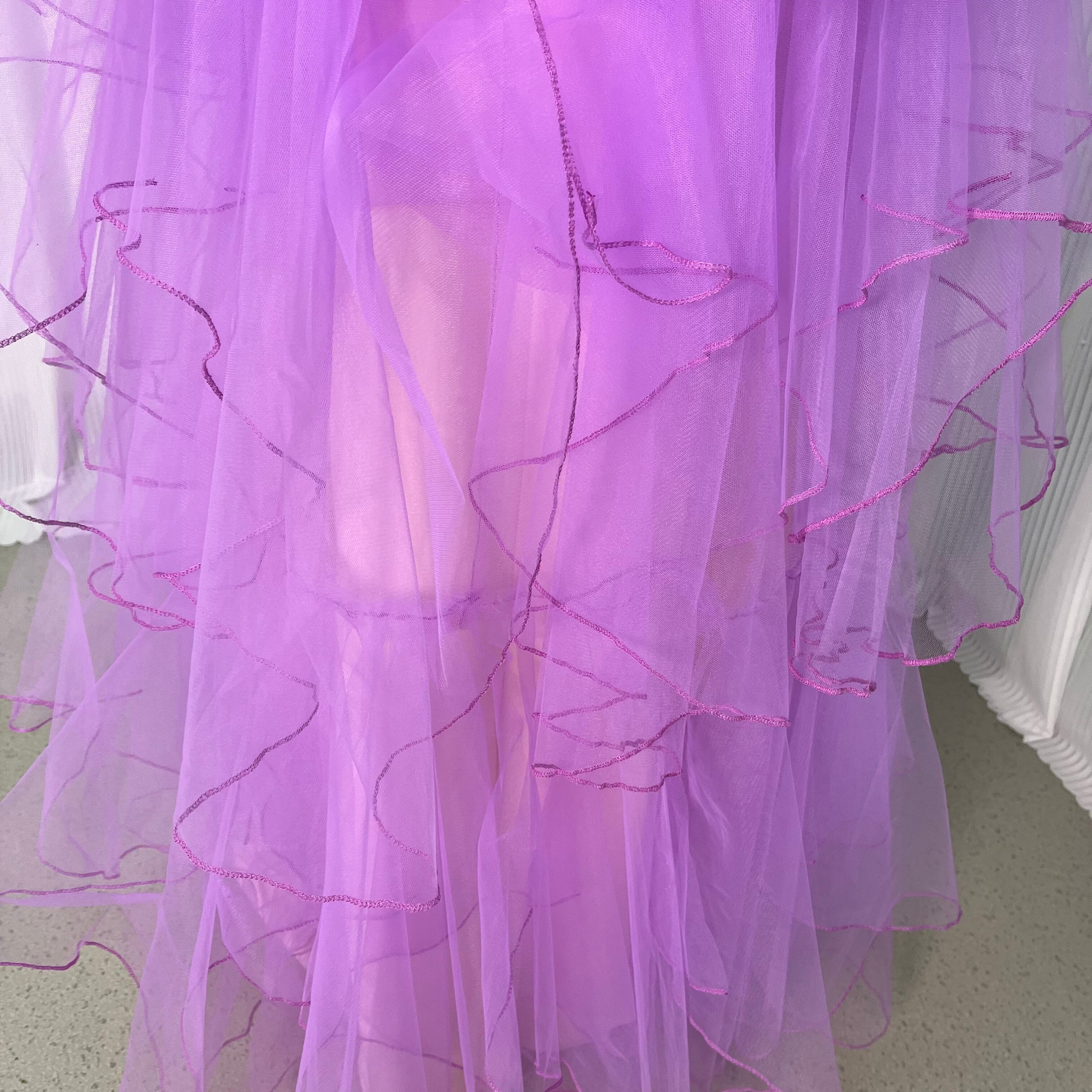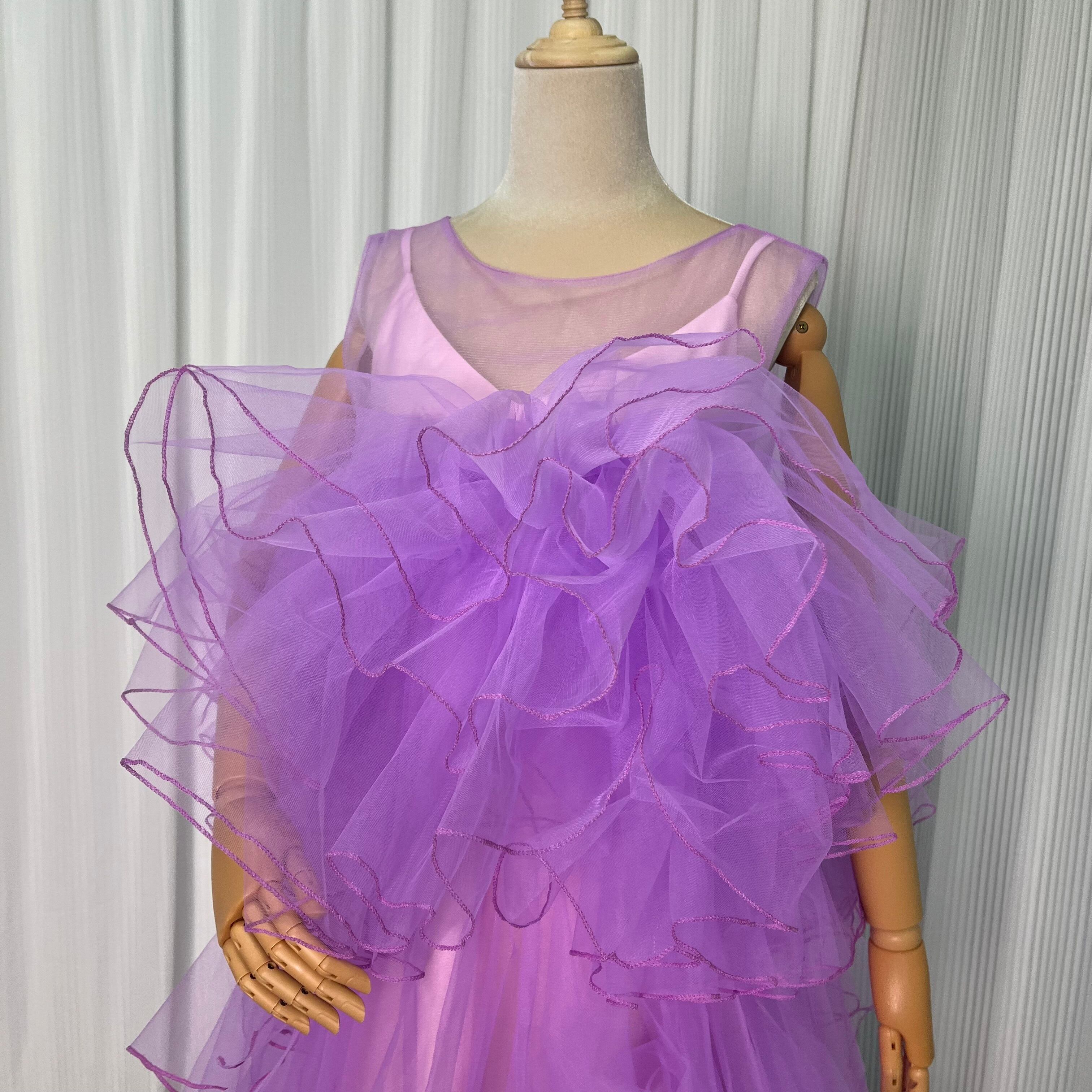 美品! 紫 カラードレス パーティードレス 色変更可能 ソフトチュール フェミニンなフレームレースの袖トップス