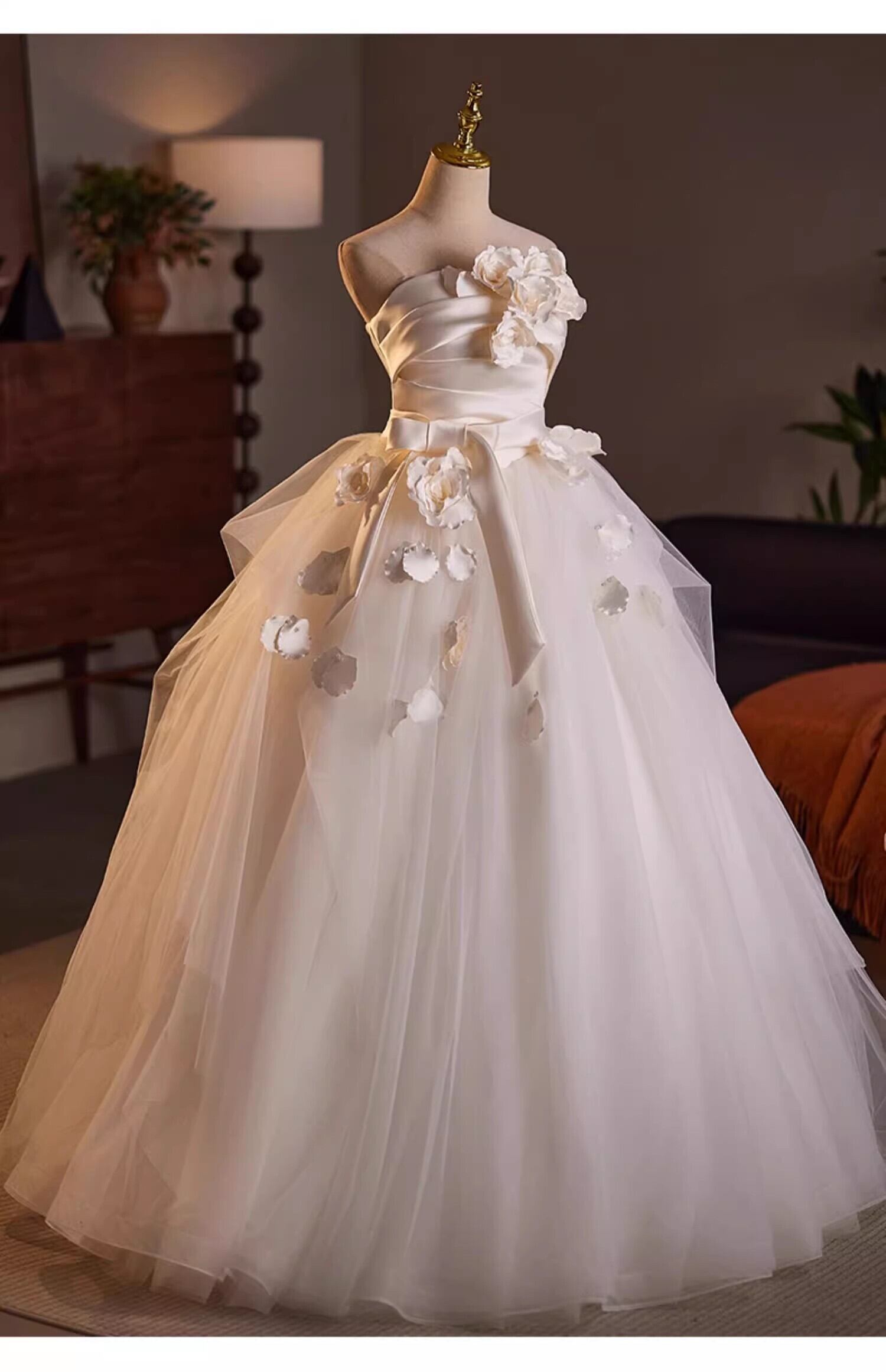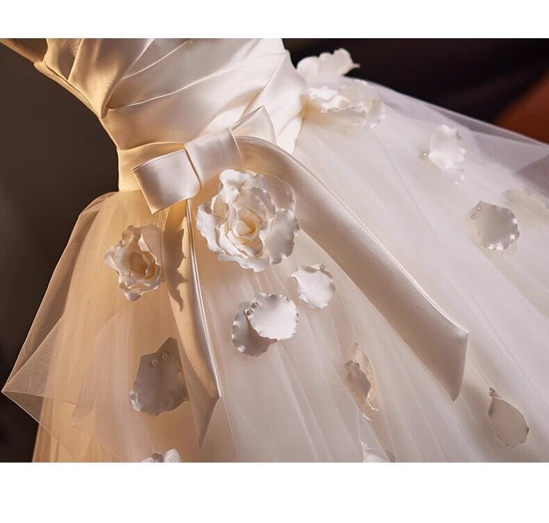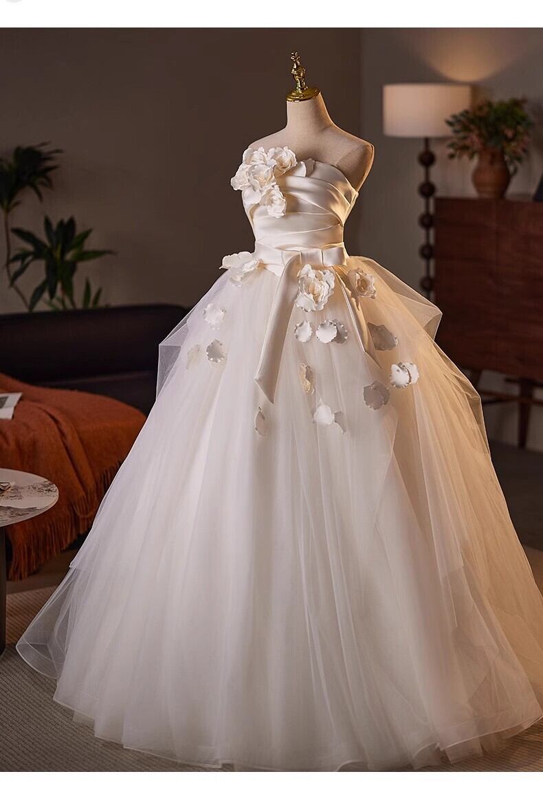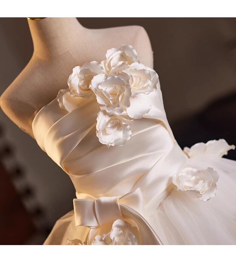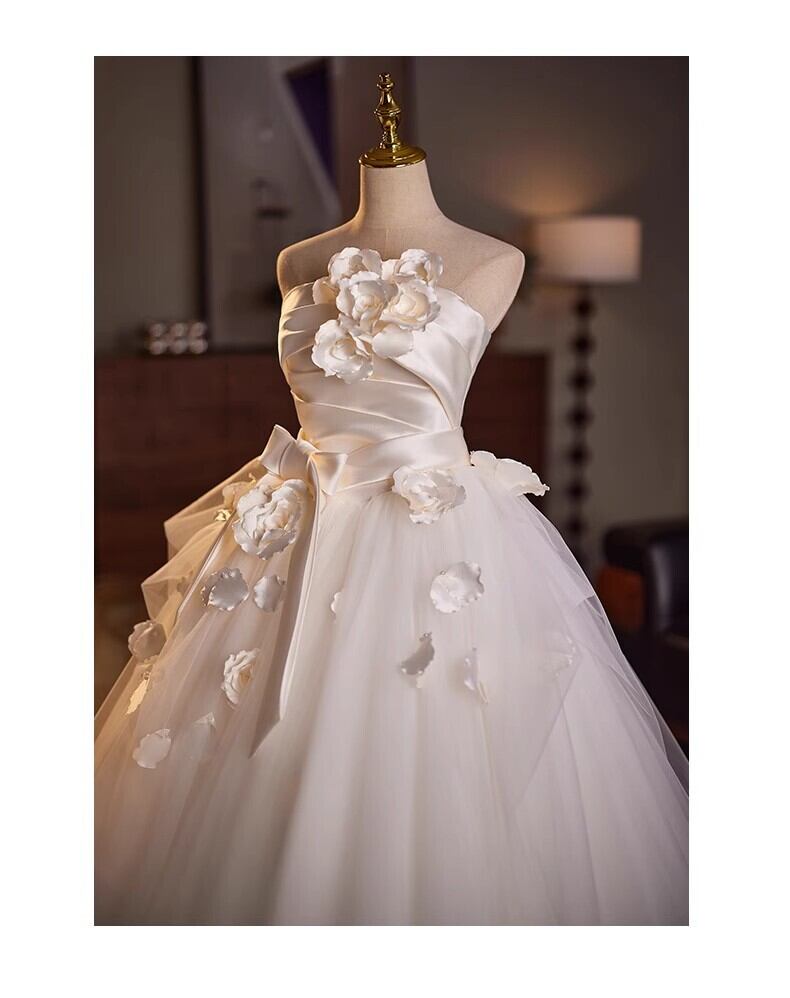 オフホワイト ベアトップ カラードレス チュールドレス プリンセスライン ボリューミー 前撮り
