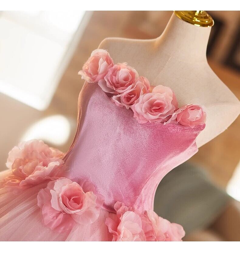 豪華!ピンク ベアトップ カラードレス チュールドレス プリンセスライン ボリューミー 前撮り
