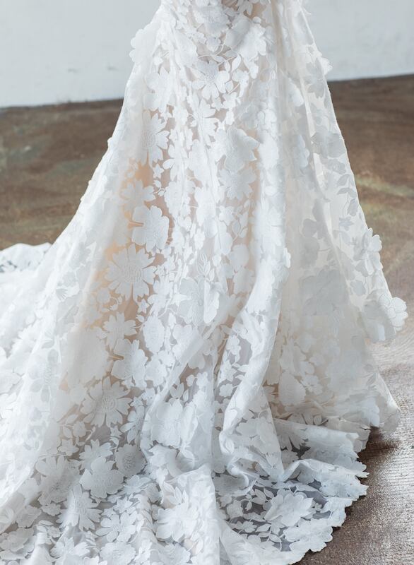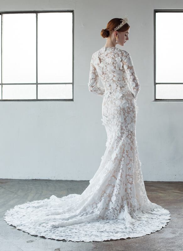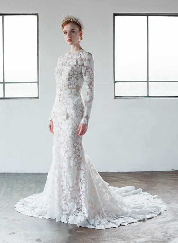 美品!総レースドレス ロングスリーブ スレンダーライン ウエディングドレス 高みせ 細見えシルエット マーメイドドレス パーティードレス フラワーモチーフ