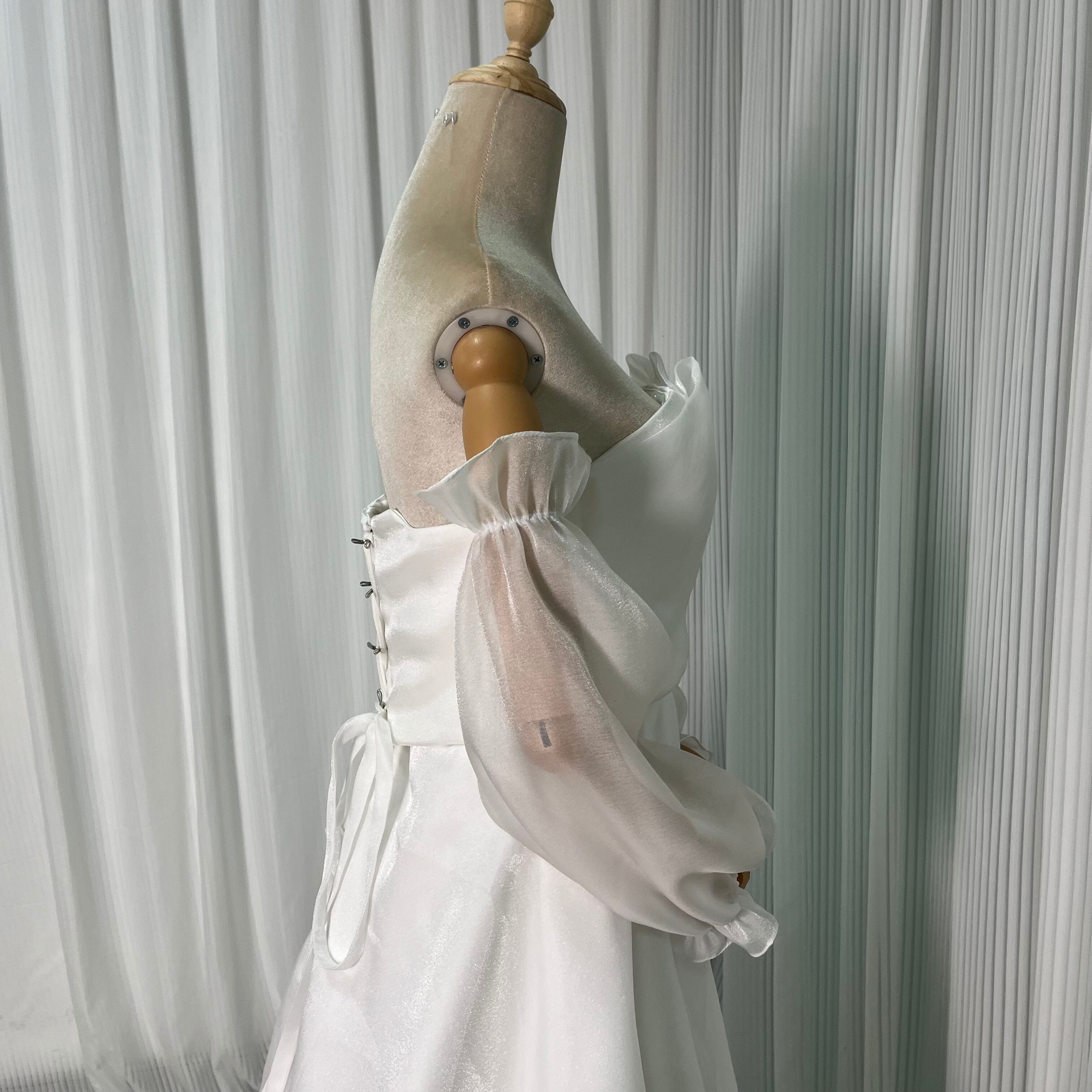 美品! ベアトップ ウエディングドレス 取り外しオフショルダー パーティードレス 花嫁/結婚式/披露宴/
