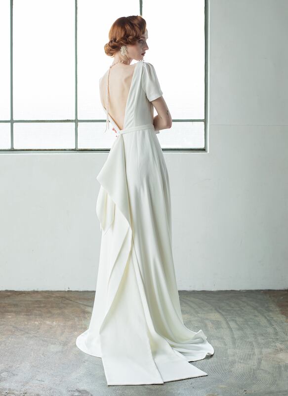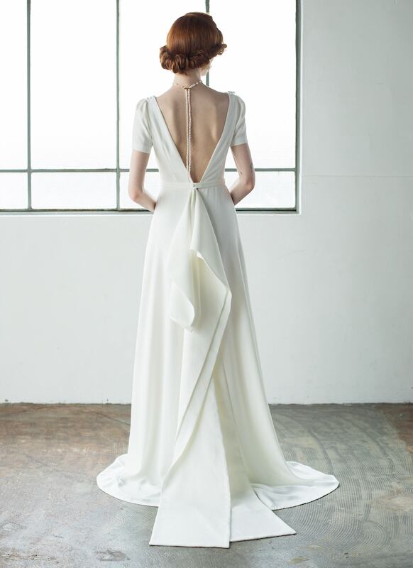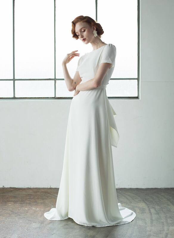 美品!バックスタイルのリボン パーティードレス 程よいパフスリーブ 動きやすいドレス ウエディングドレス ガーデンウェディング 2次会