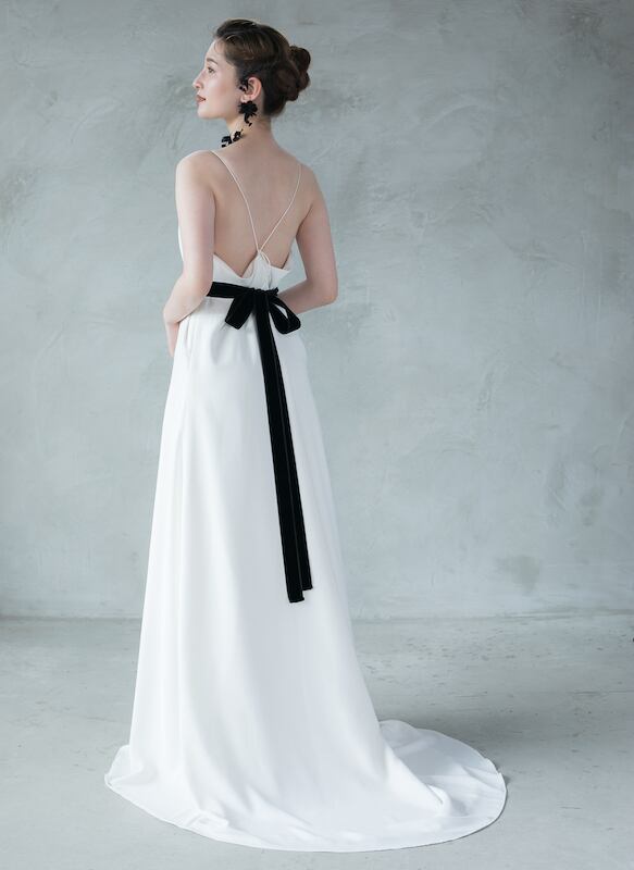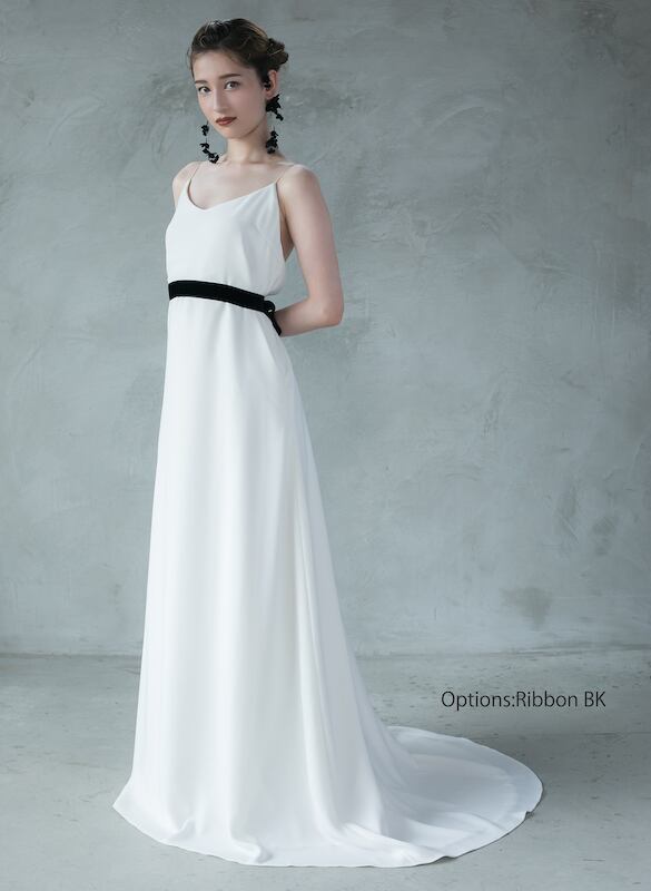 上品!ウエストリボン シンプルなキャミソールドレス パーティードレス 動きやすいドレス ウエディングドレス 妊婦ドレス ブラックカラードレス 色変更可能 | David1021k Dress(ダヴィドレス)