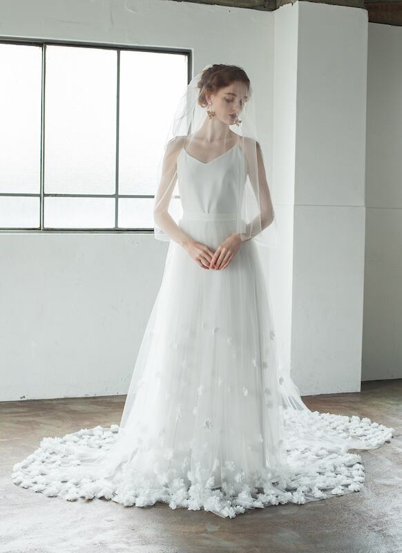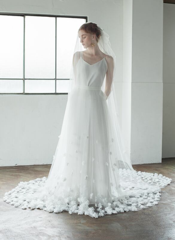 美品!ウエディングベール 3Dアップリケ コーム付き ウエディングドレス ドレスアレンジ フェイスアップベール/フぇイスダウン ソフトチュール 花嫁/結婚式 | David1021k Dress(ダヴィドレス)